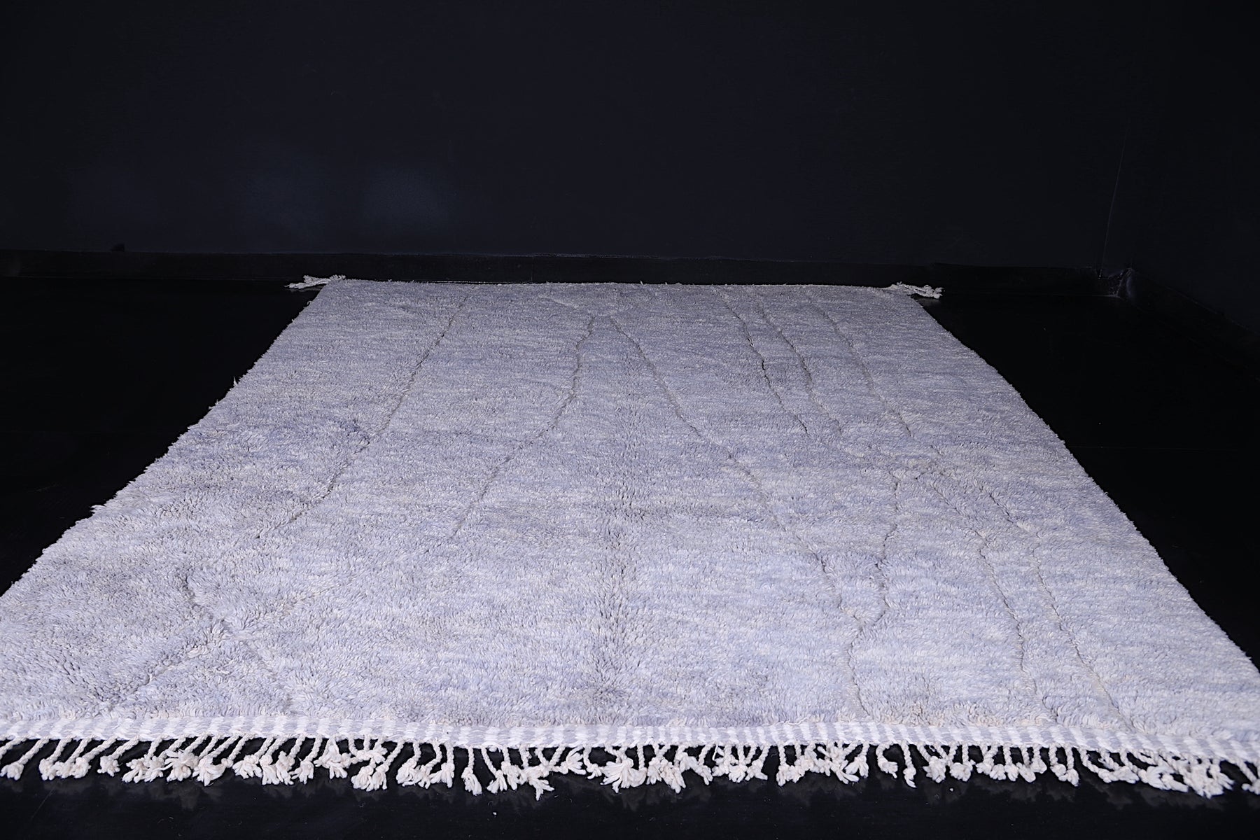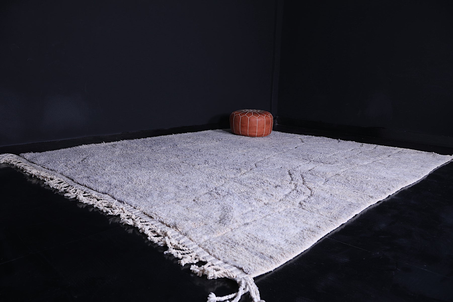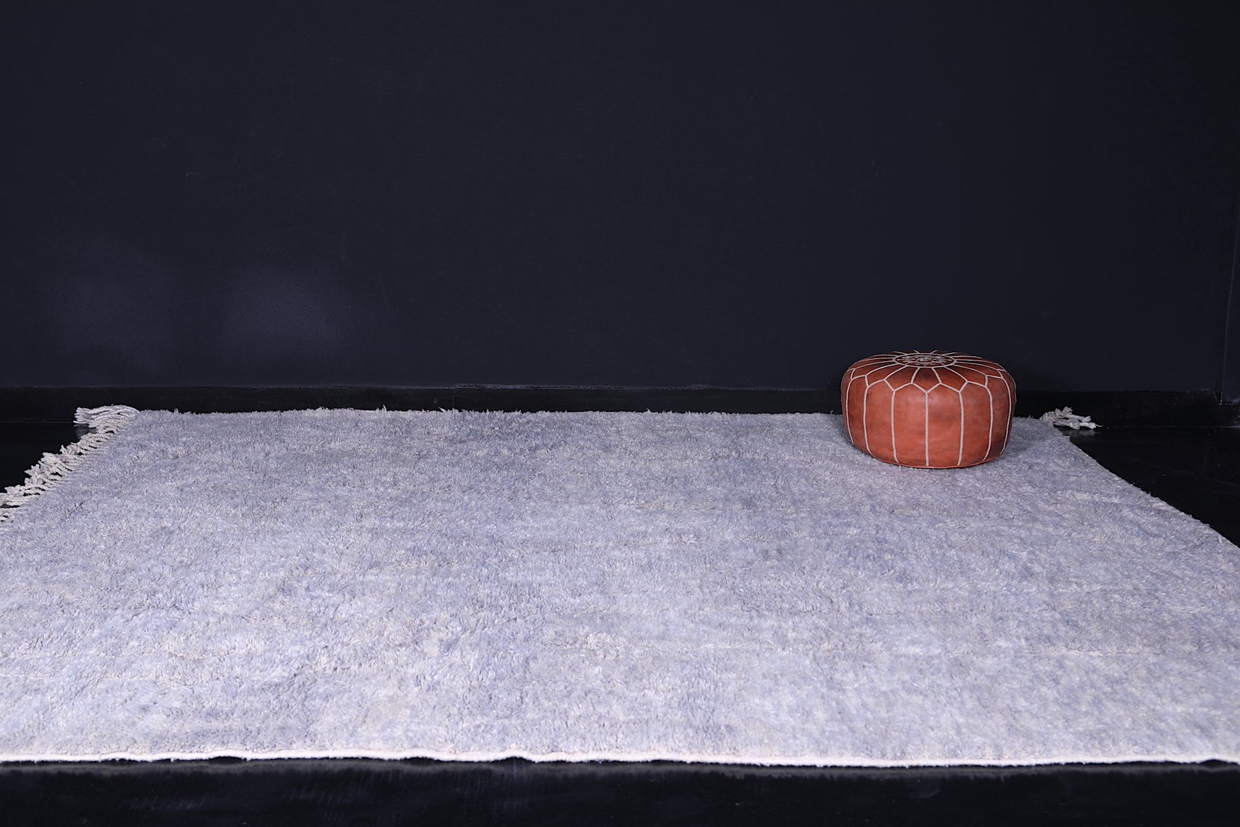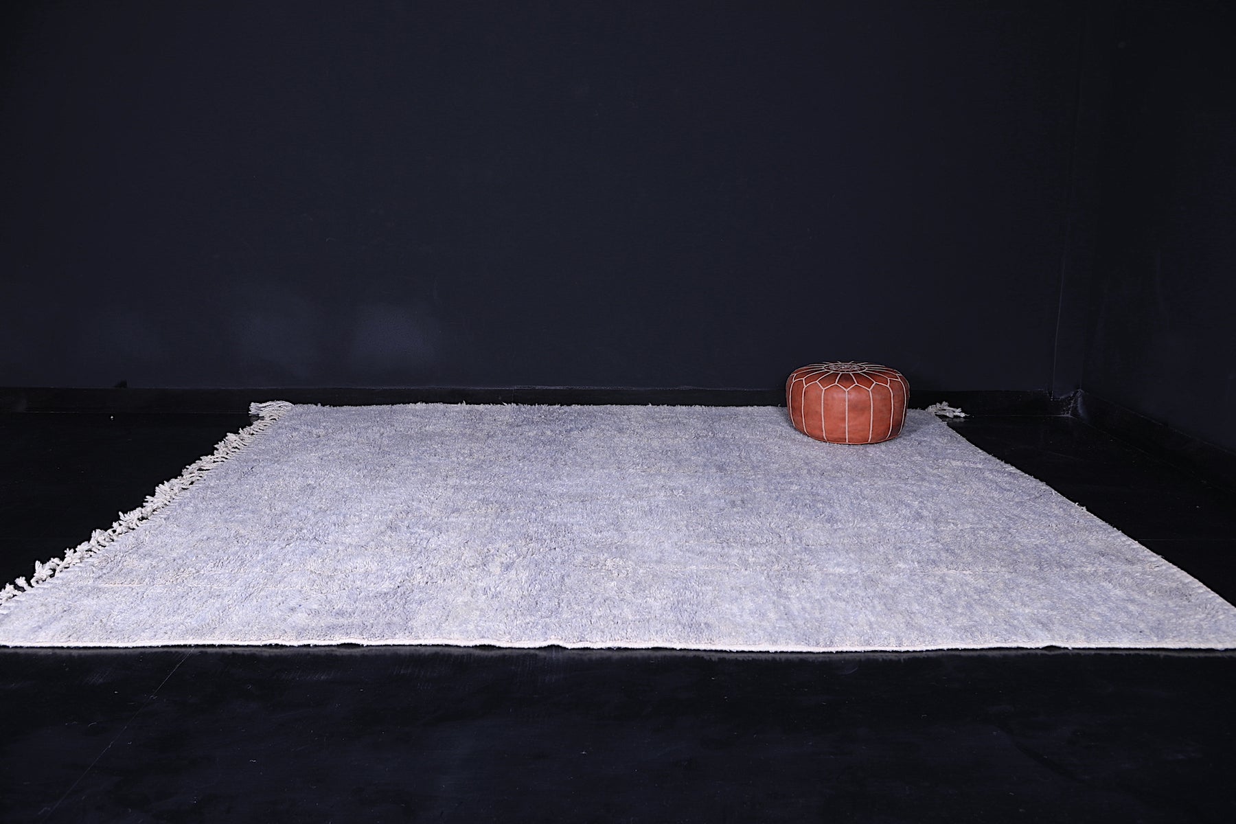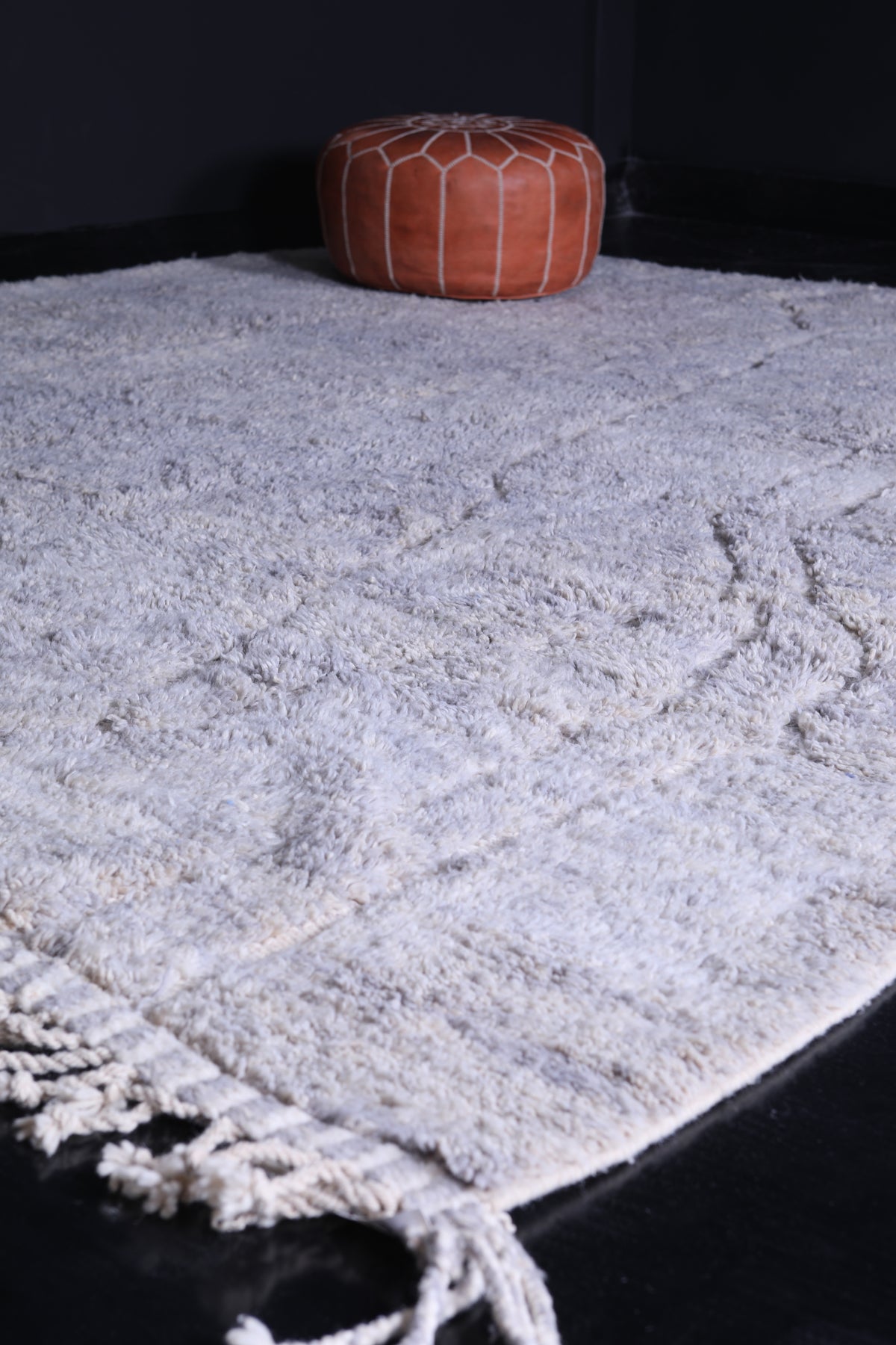 Crafted from premium, locally sourced wool, the rug offers a soft feel underfoot while ensuring lasting durability. Its calming gray hue adds a sophisticated touch to living rooms, bedrooms, or workspaces, making it ideal for creating a serene atmosphere with a hint of traditional Moroccan charm.