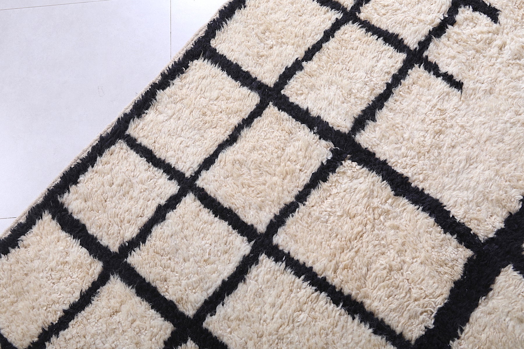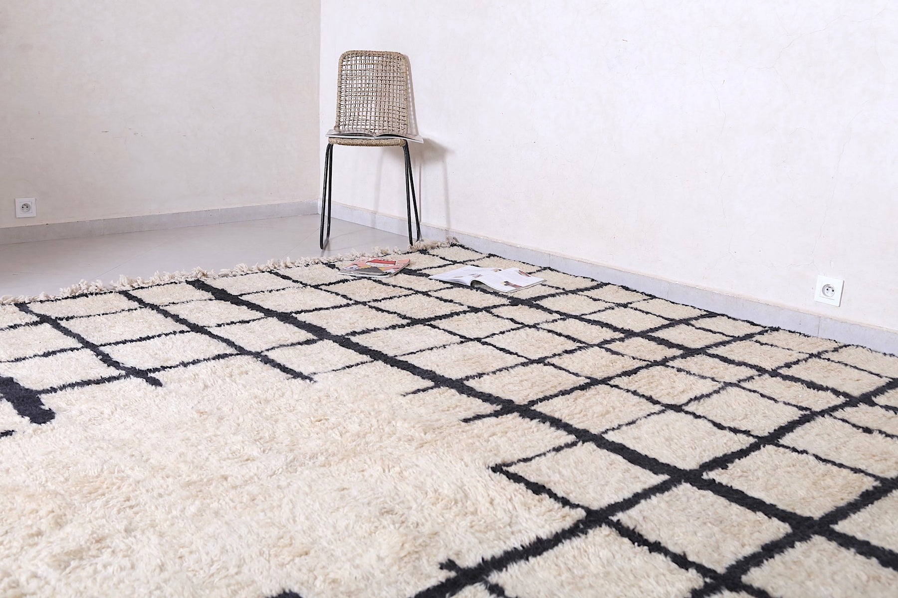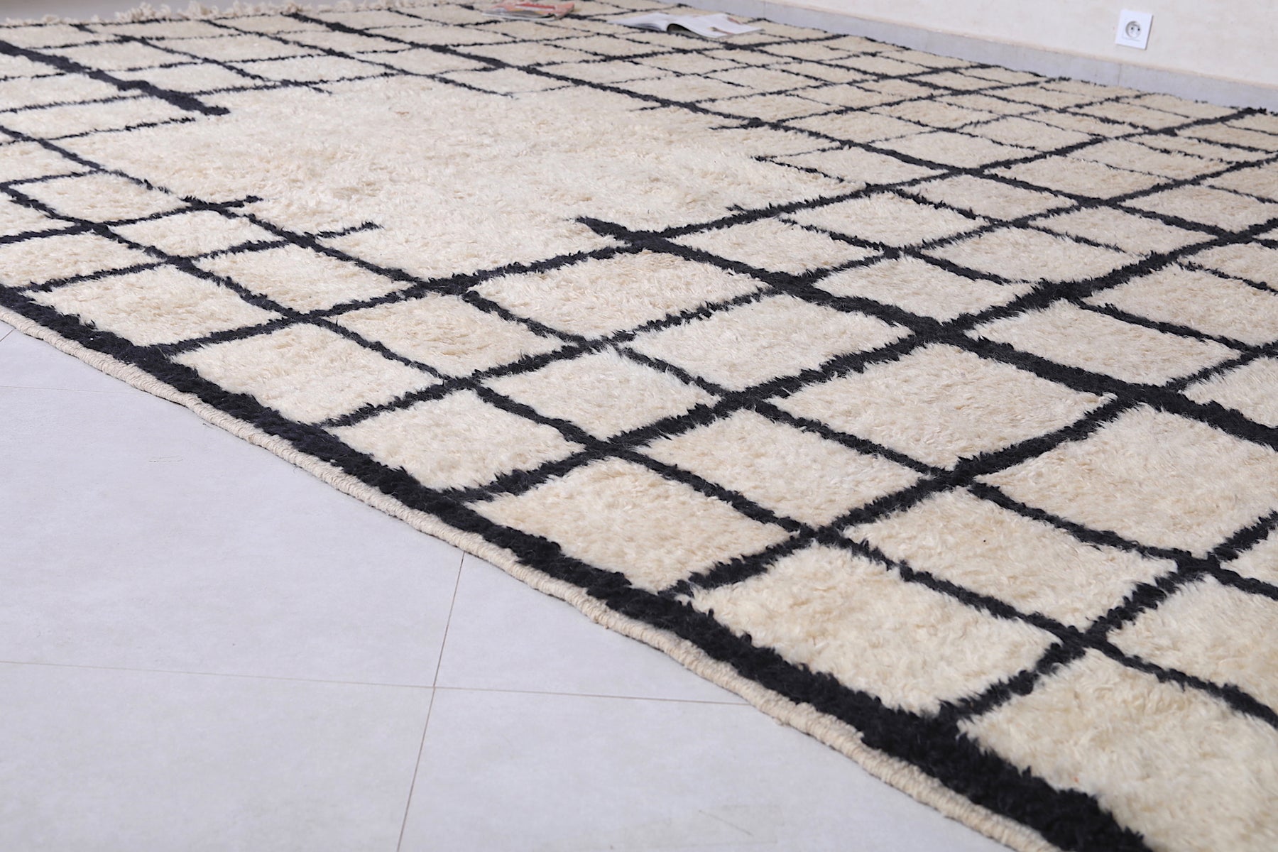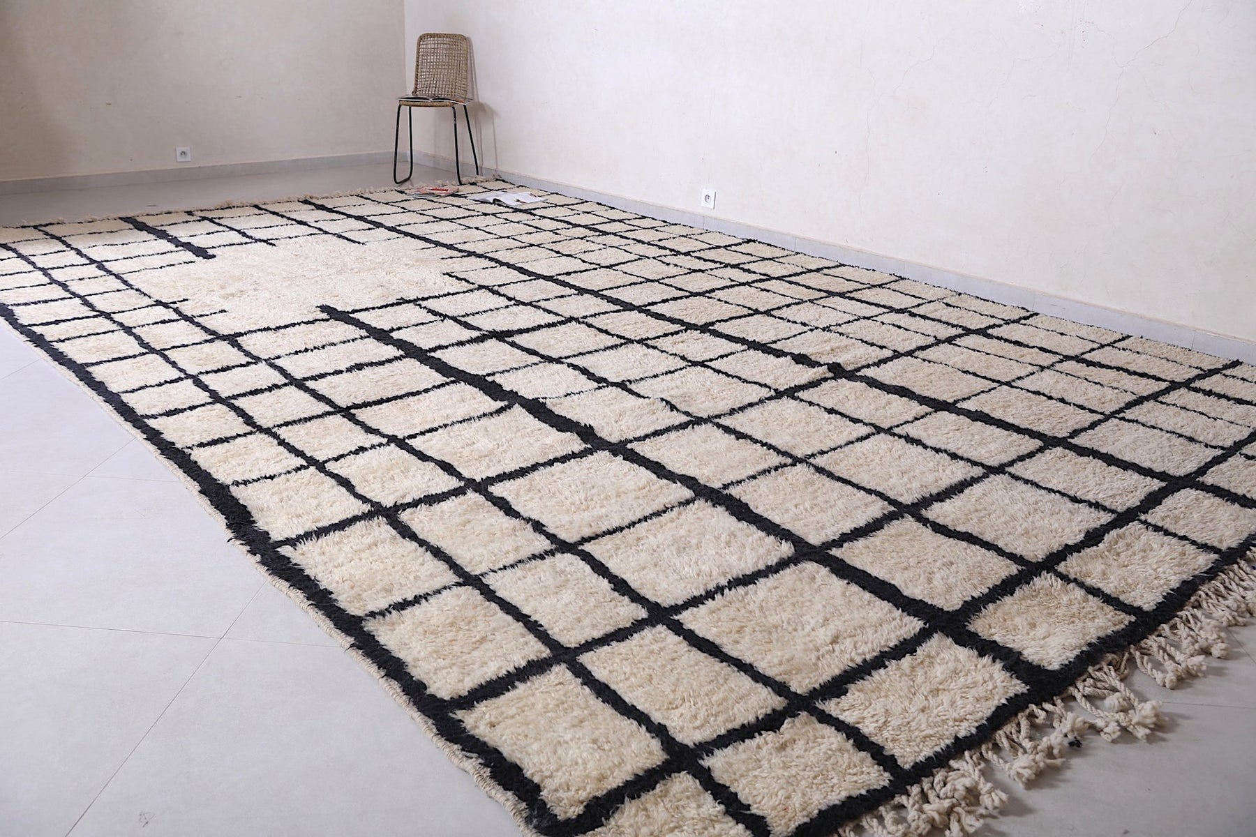 Bring structure, contrast, and Moroccan soul to your home with this handcrafted grid rug that makes a stylish statement.