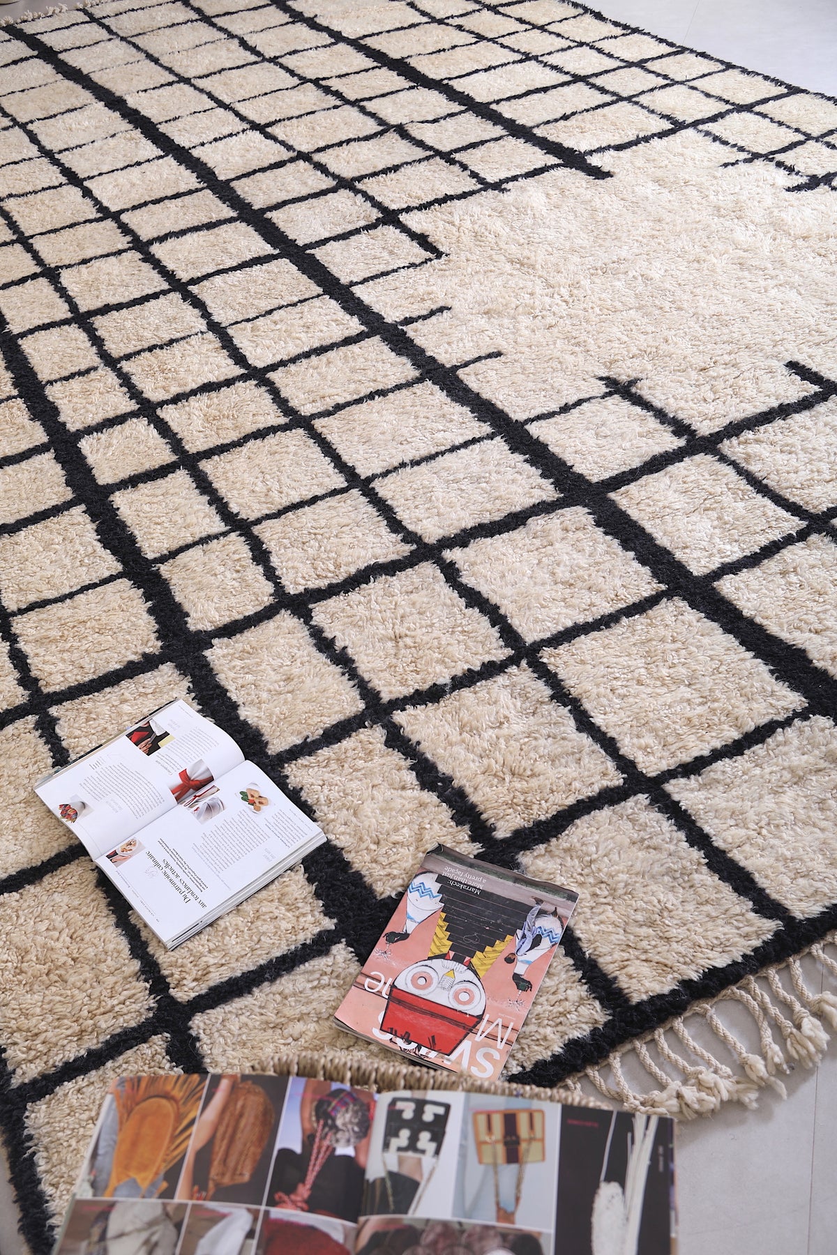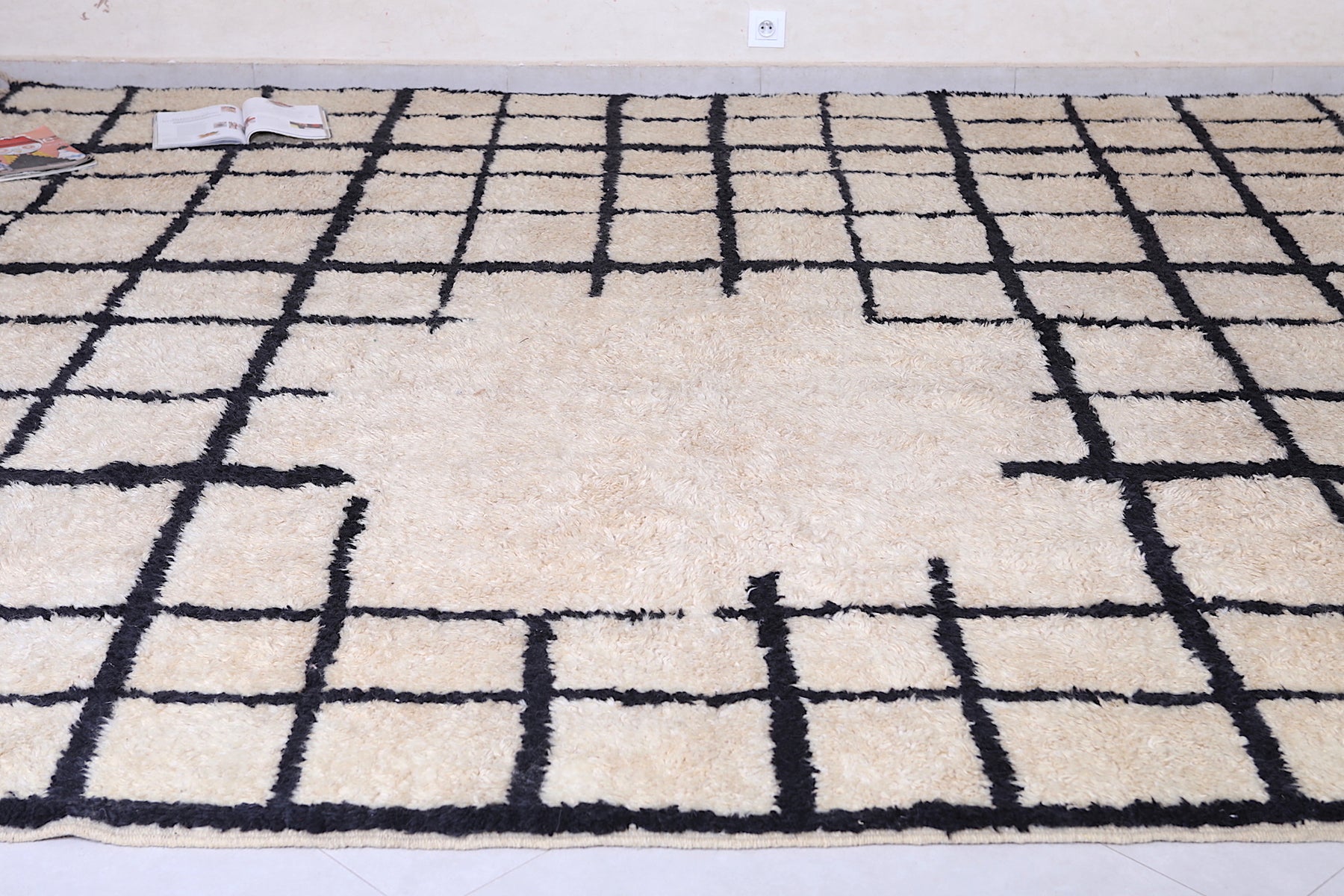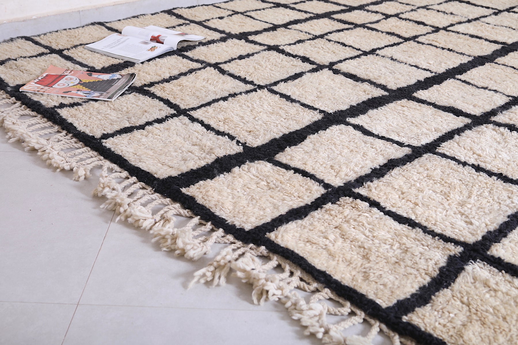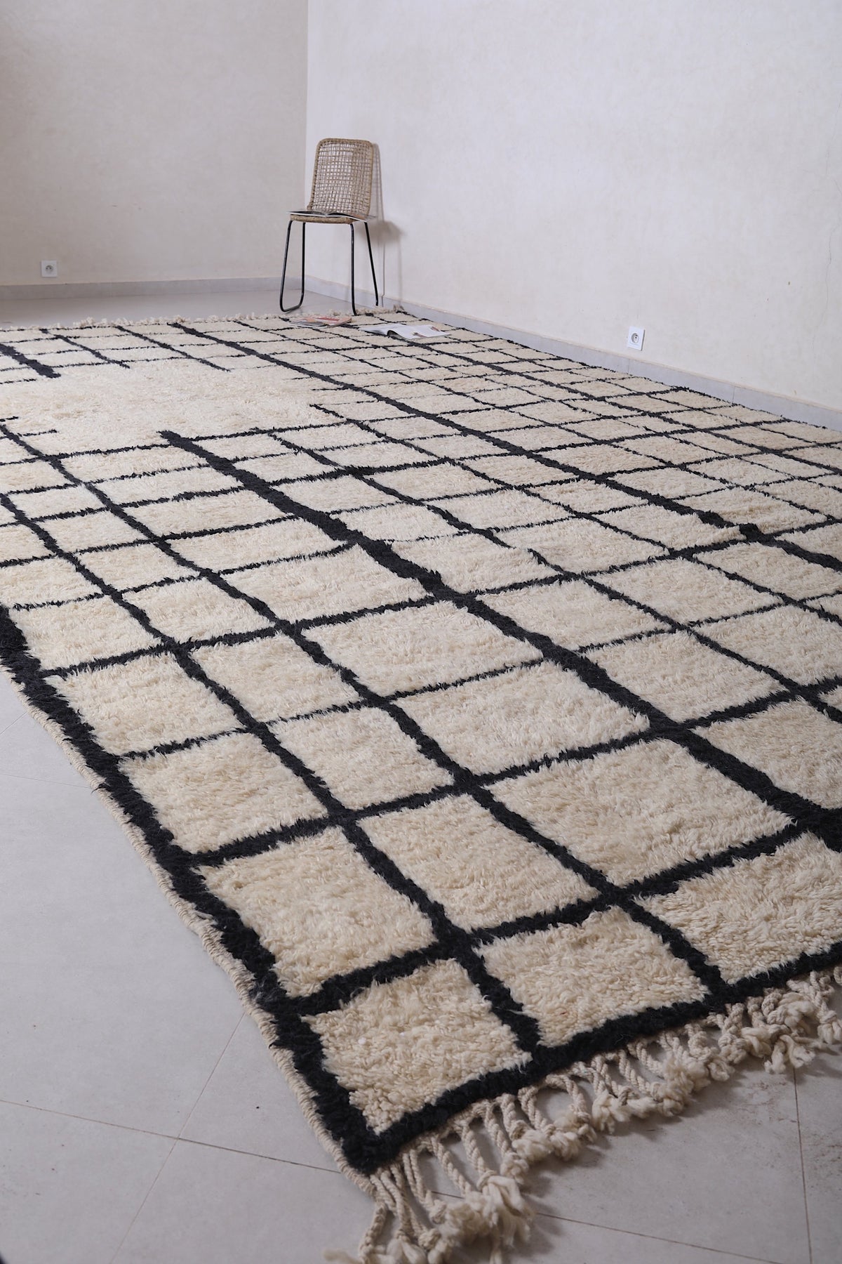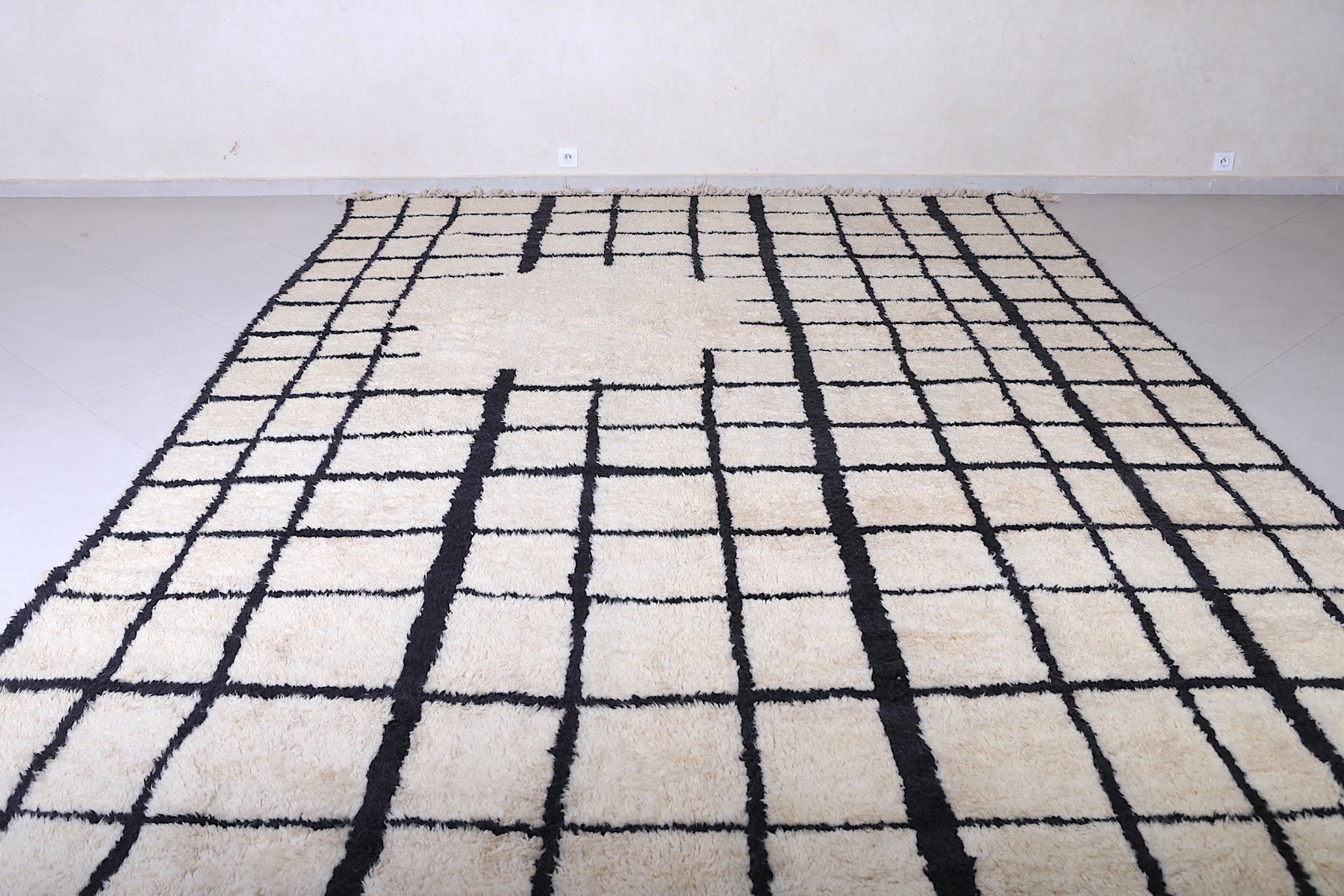 Bring structure, contrast, and Moroccan soul to your home with this handcrafted grid rug that makes a stylish statement.