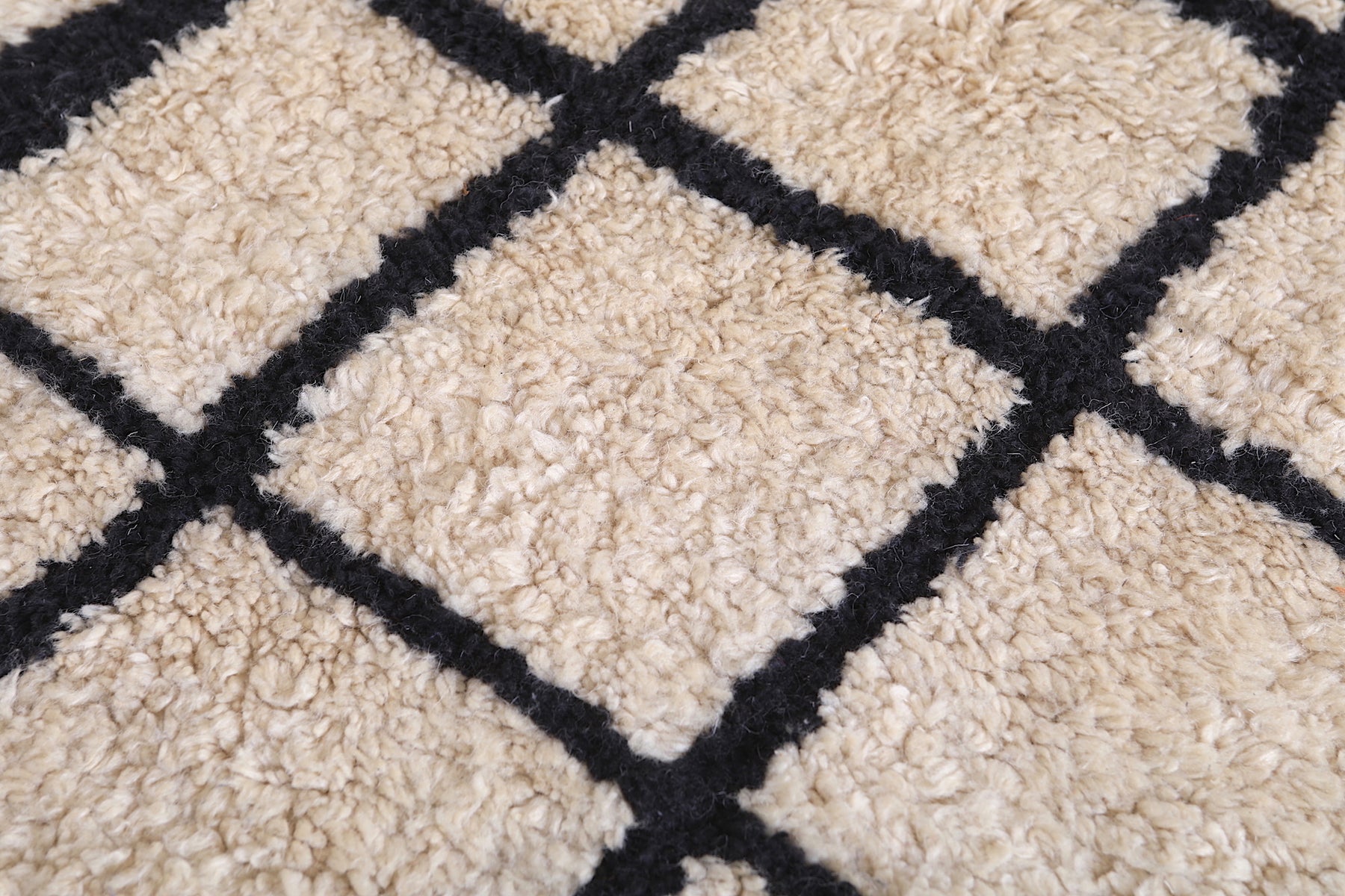 Carefully woven by Moroccan artisans using premium natural wool, it offers a plush, cozy texture while maintaining exceptional durability. The grid layout brings structure and sophistication to any interior—perfect for Scandinavian, minimalist, or urban-modern spaces.