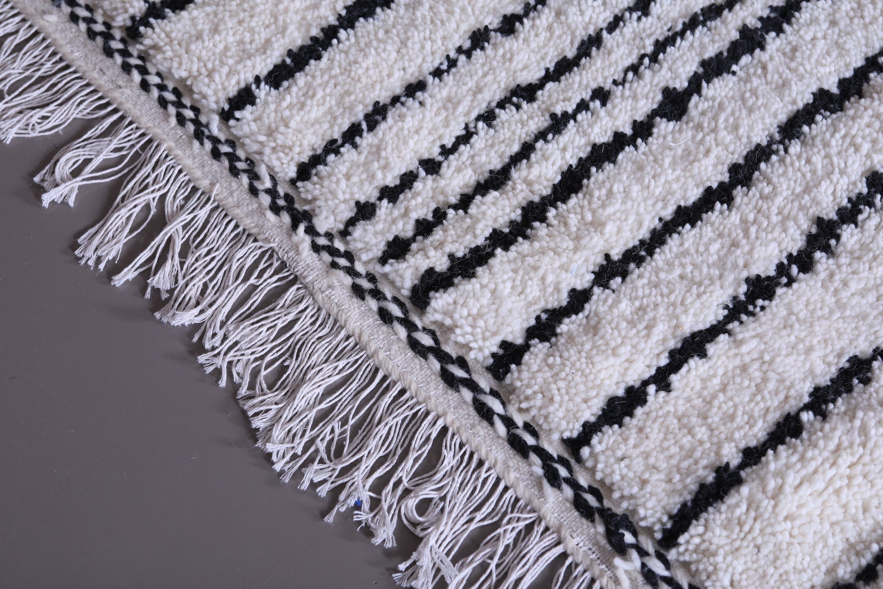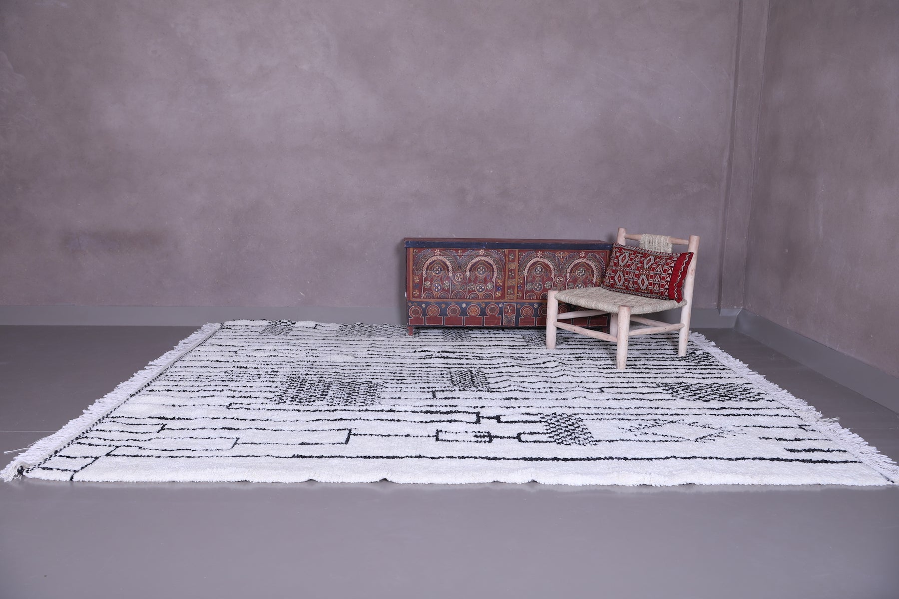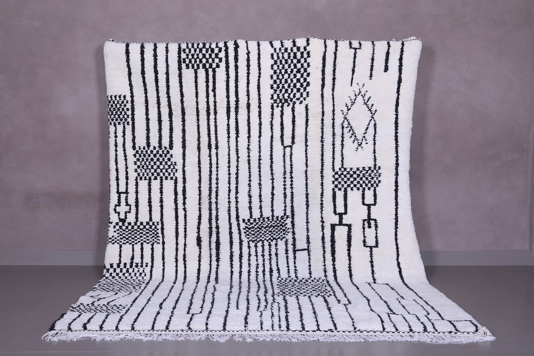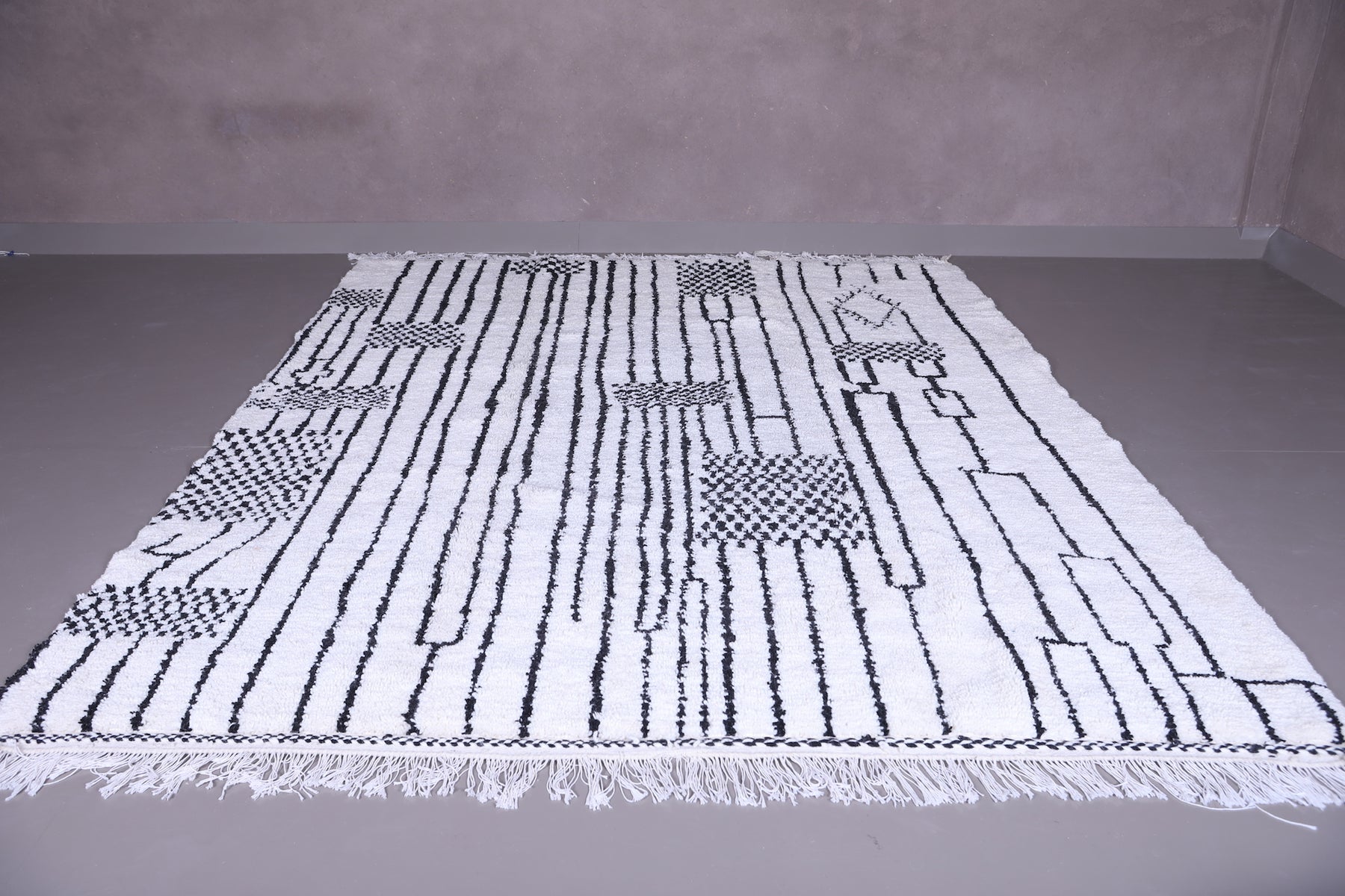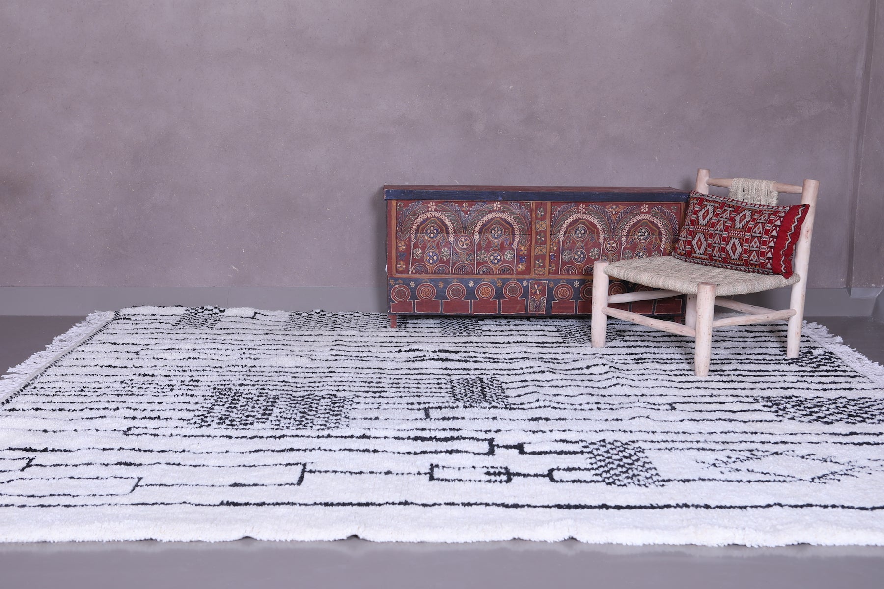 Add modern Moroccan elegance to your home with this striking White and Black Azilal Rug. Handwoven by Berber artisans in the Atlas Mountains, this rug features a clean white wool base adorned with abstract black linework and geometric motifs, creating a visually captivating, one-of-a-kind piece.