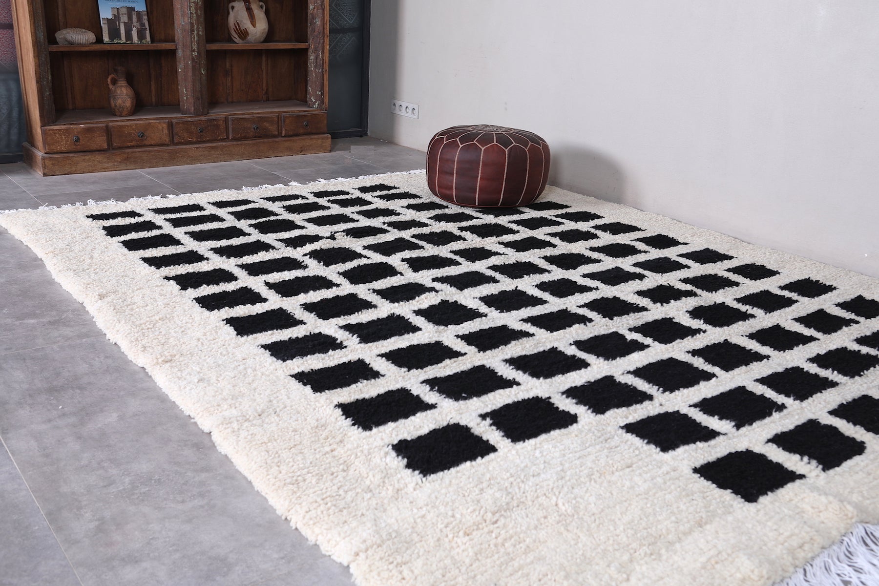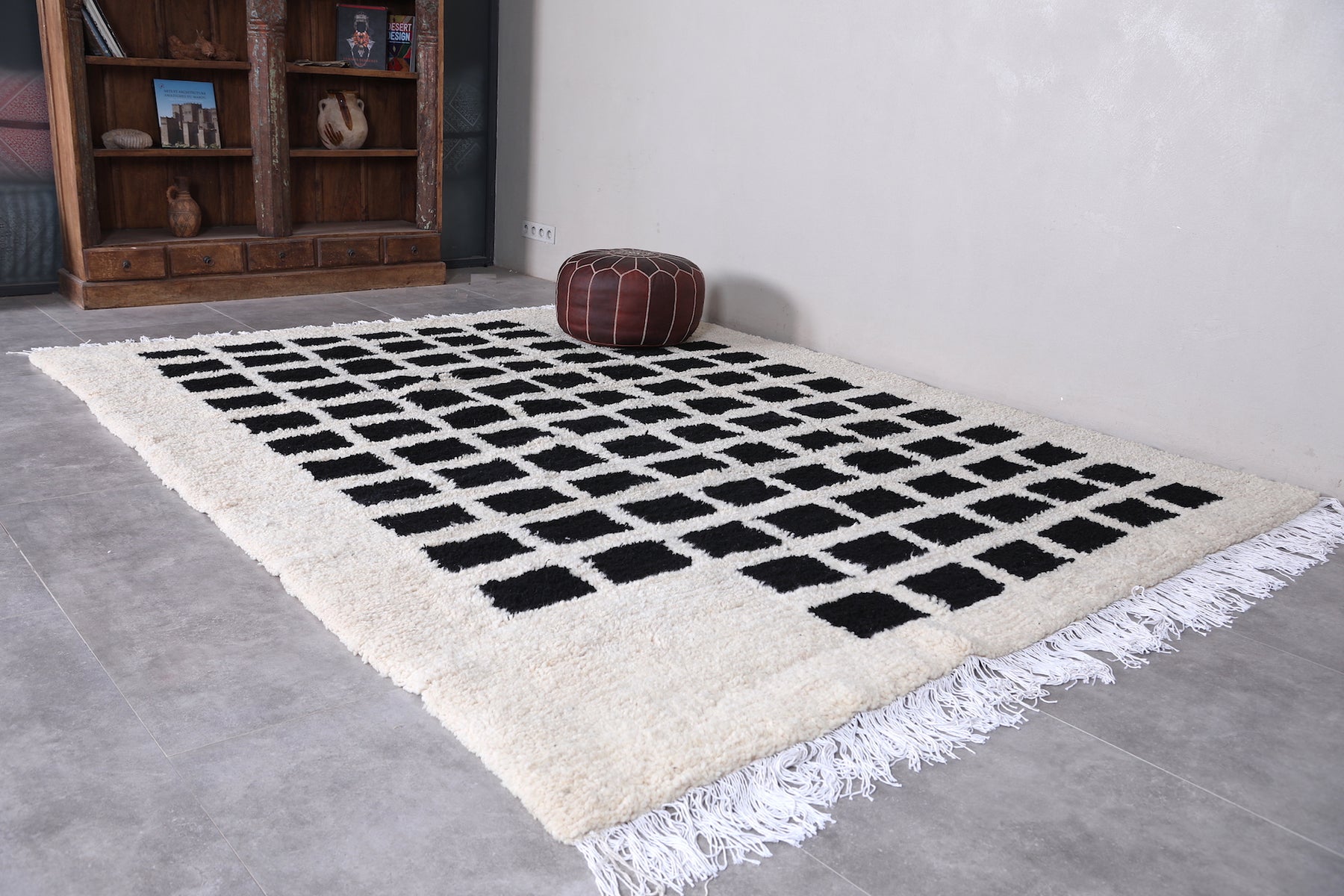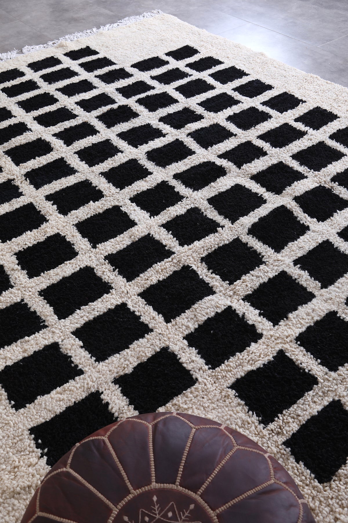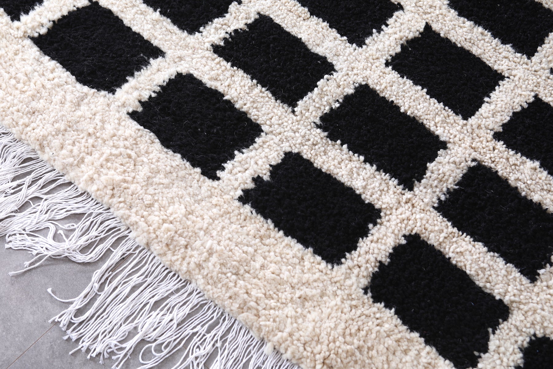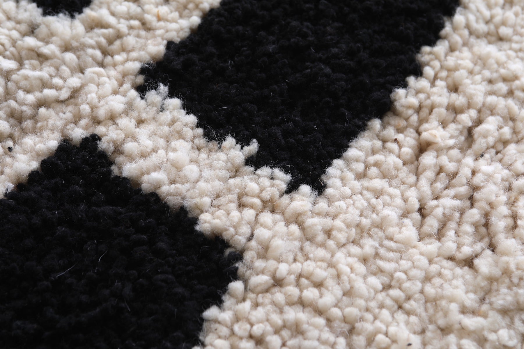 Bring modern contrast and cultural depth to your space with this Black and Beige Berber Rug – Custom Area Wool Rug. A perfect blend of bold design and Moroccan craftsmanship.