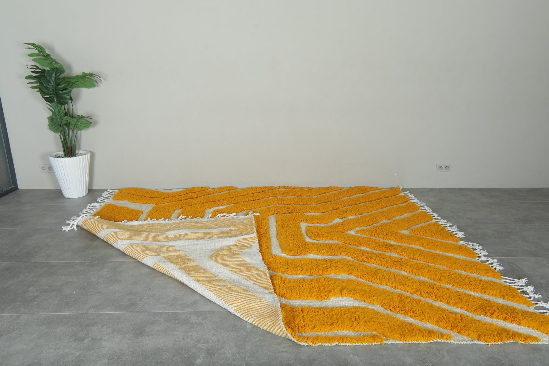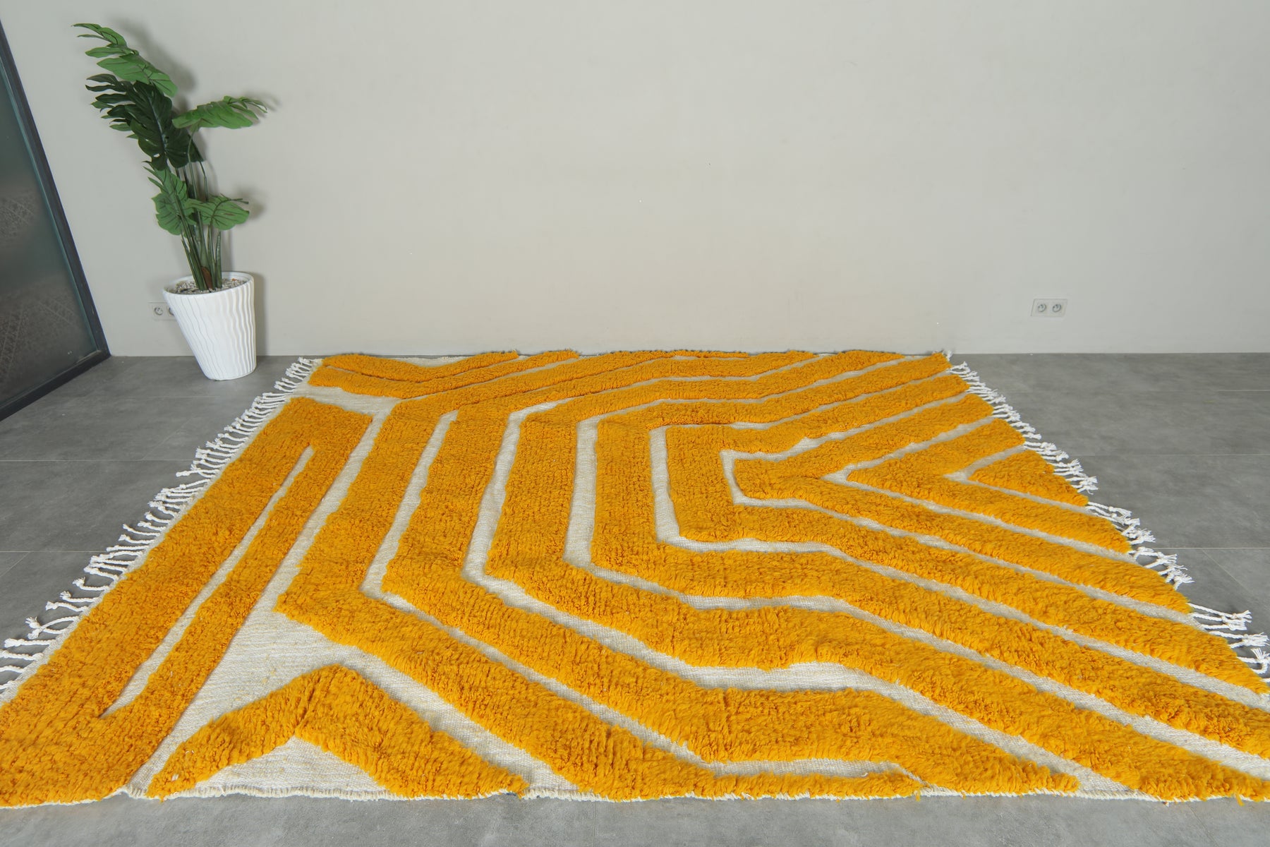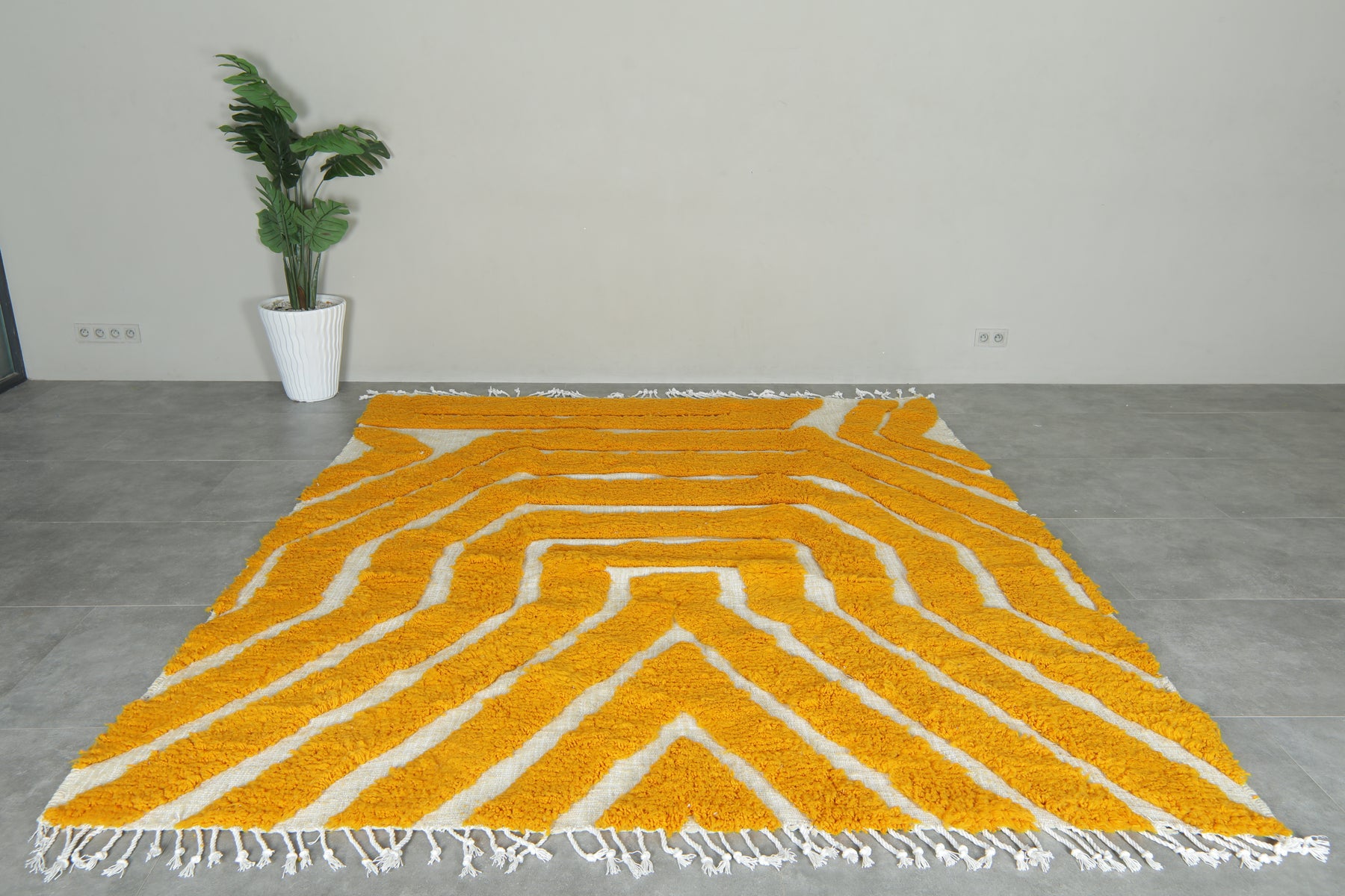 Bold yellow & white geometric Moroccan rug - Custom size