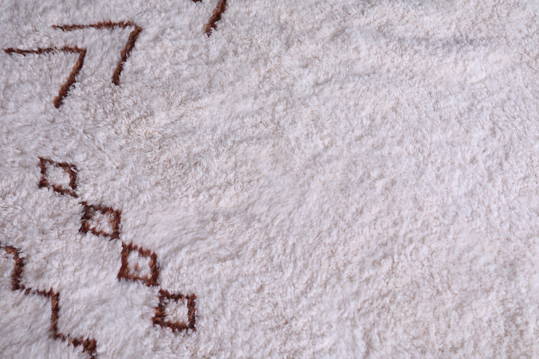 Infuse your home with elegance and cultural richness using this Contemporary Moroccan Wool Rug. Handcrafted by skilled artisans in Morocco, this wool rug is a statement of both tradition and modern design. Its clean, minimalist background is contrasted with striking tribal-inspired motifs, carefully woven to reflect centuries of Moroccan heritage.