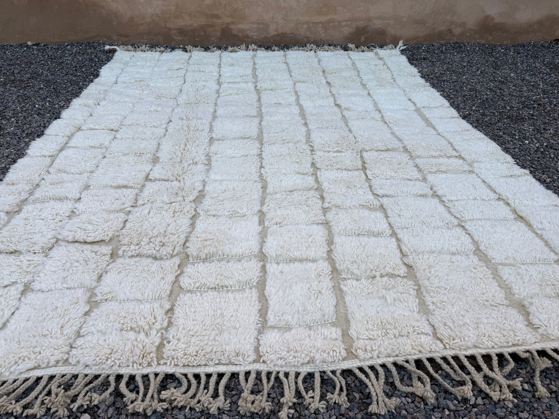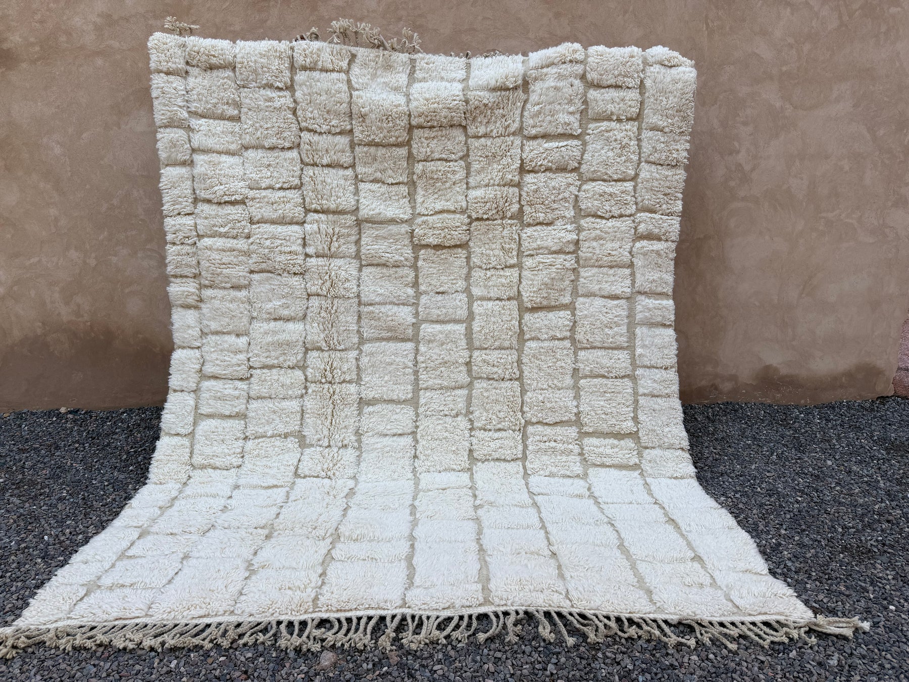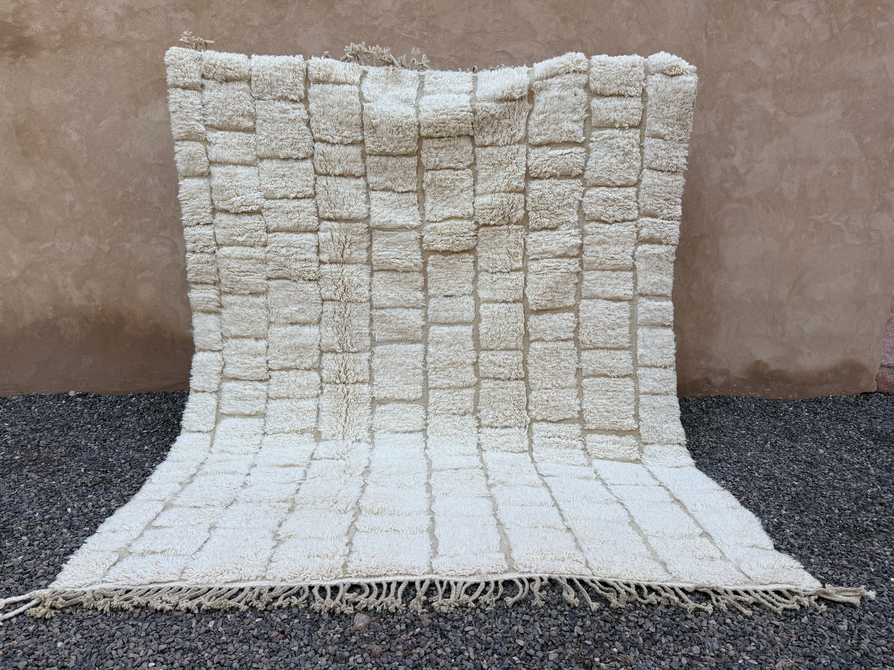 Elevate your space with the timeless beauty of this Handmade Beni Ourain Rug, featuring a soft cream checkered texture that adds depth and sophistication without overwhelming your decor. Expertly handwoven by Berber artisans in Morocco, this rug blends traditional craftsmanship with modern minimalism.
