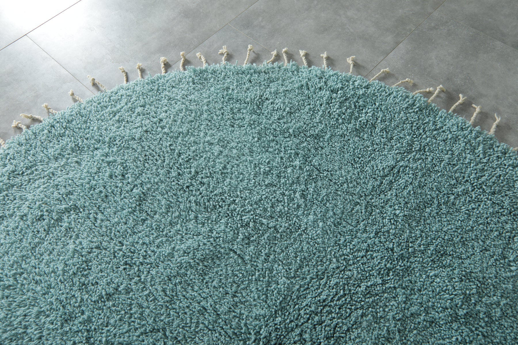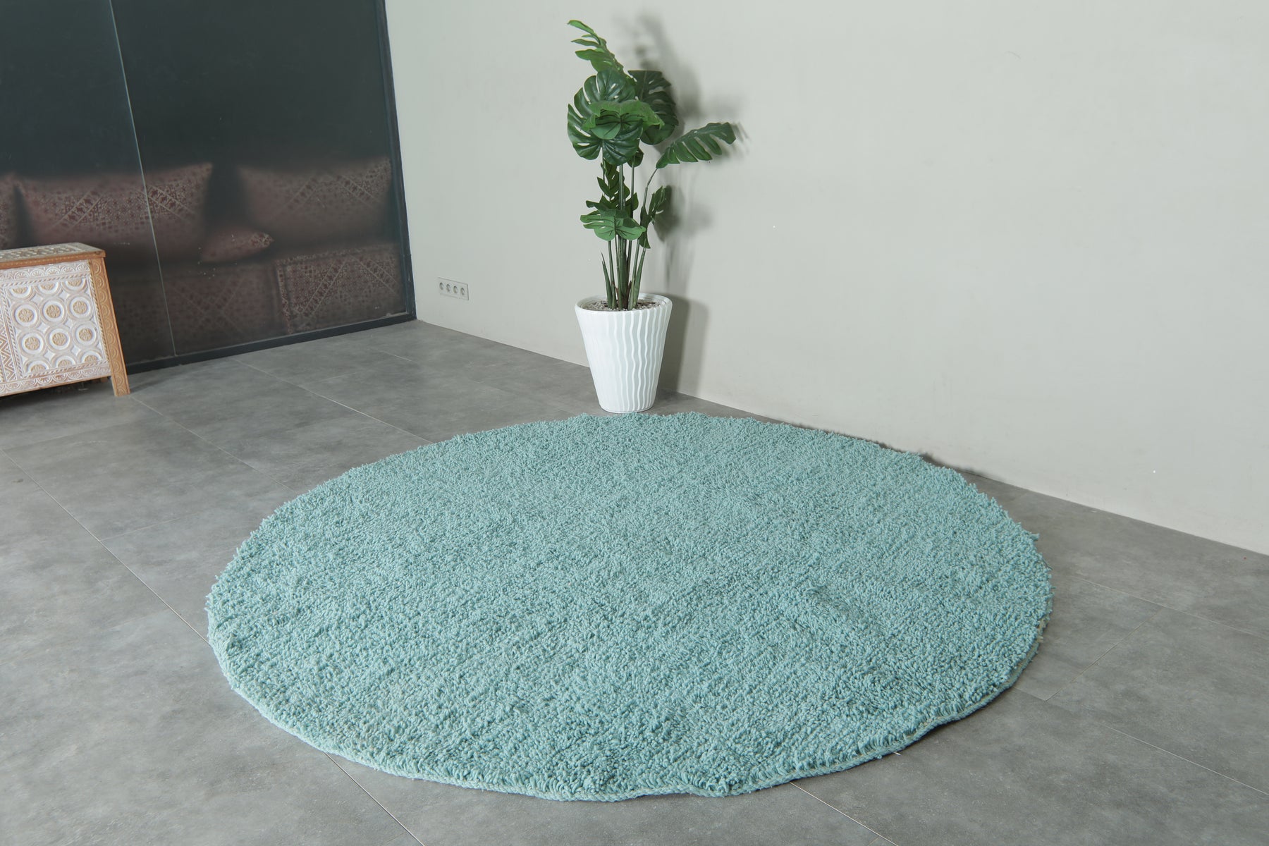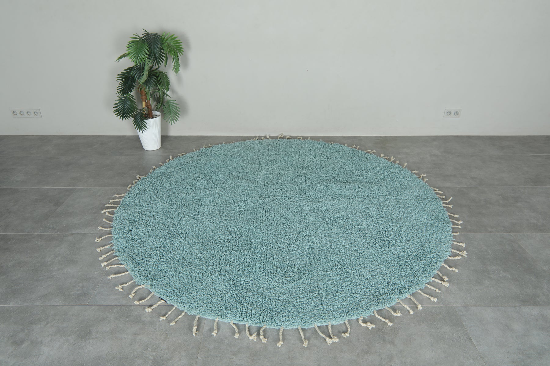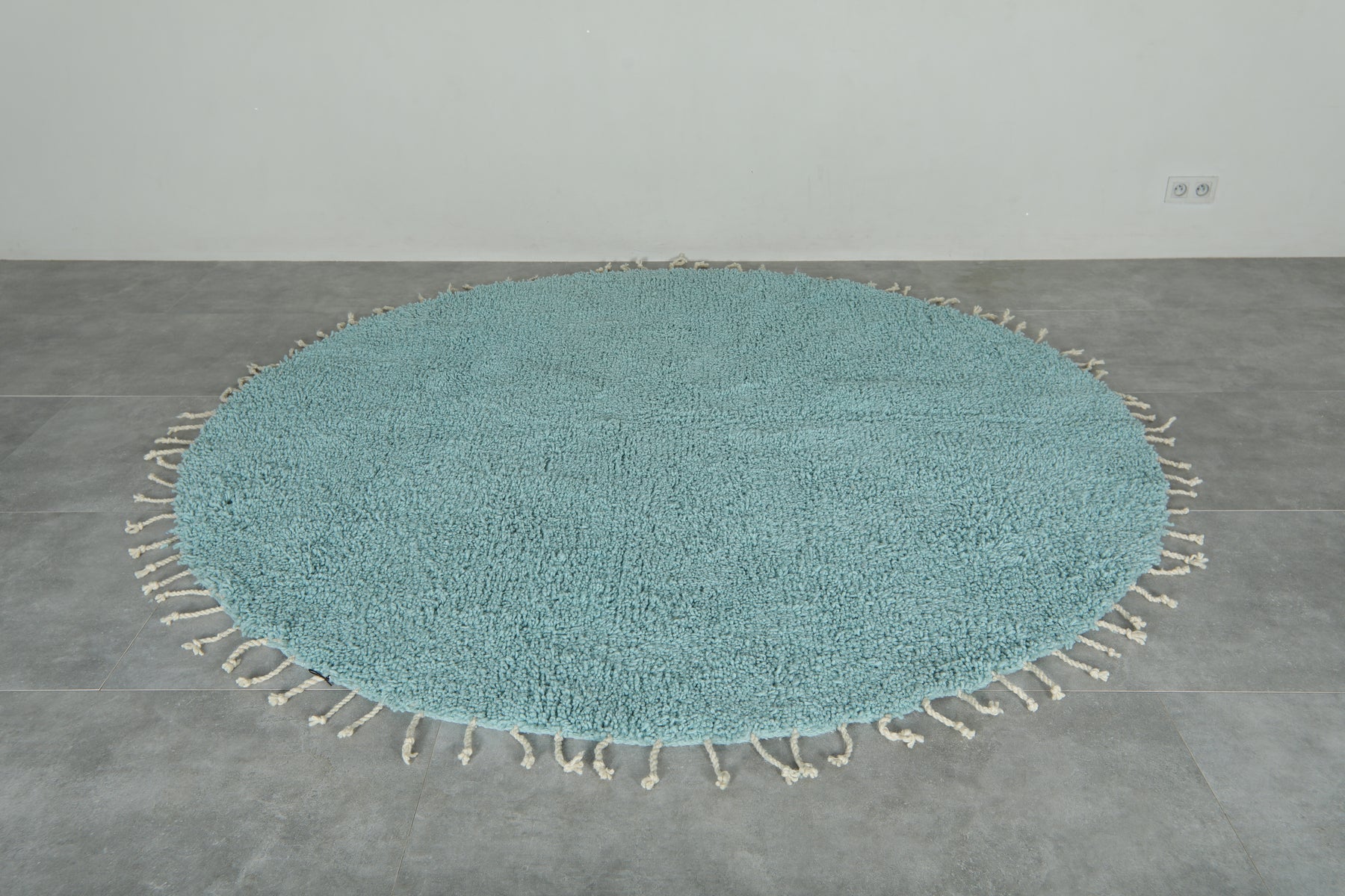 Custom Round Moroccan Rug - Handmade Aqua Blue Wool Carpet