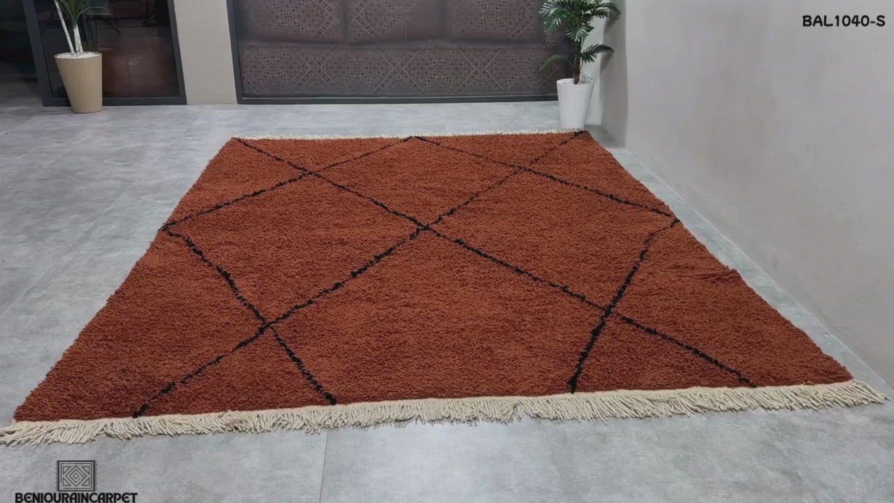 This Handwoven Moroccan Wool Rug is a timeless statement piece, blending deep brown warmth with classic black Berber lines. Crafted by skilled artisans, this plush, high-quality wool rug offers a cozy underfoot feel, making it a perfect addition to modern, bohemian, or rustic interiors. The hand-knotted fringes add a final touch of authentic Moroccan craftsmanship, creating a versatile and elegant statement rug for any space.