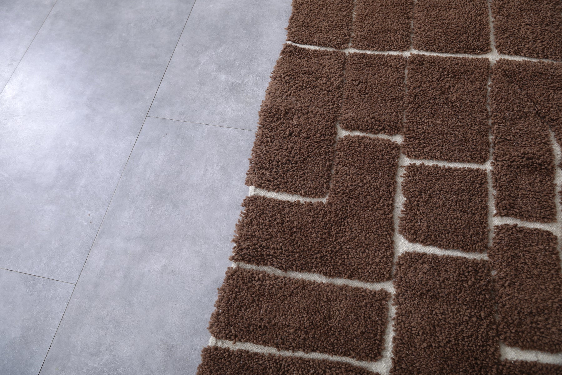 Geometric brown rug – Modern white grid design