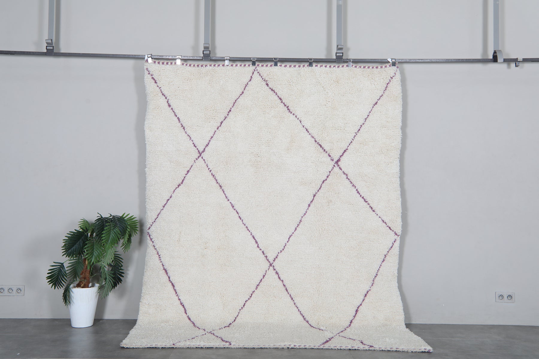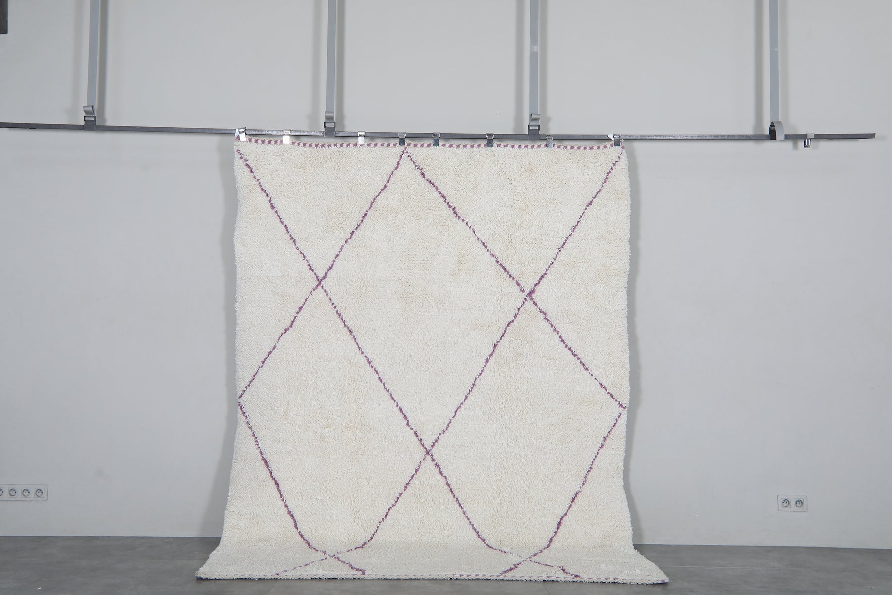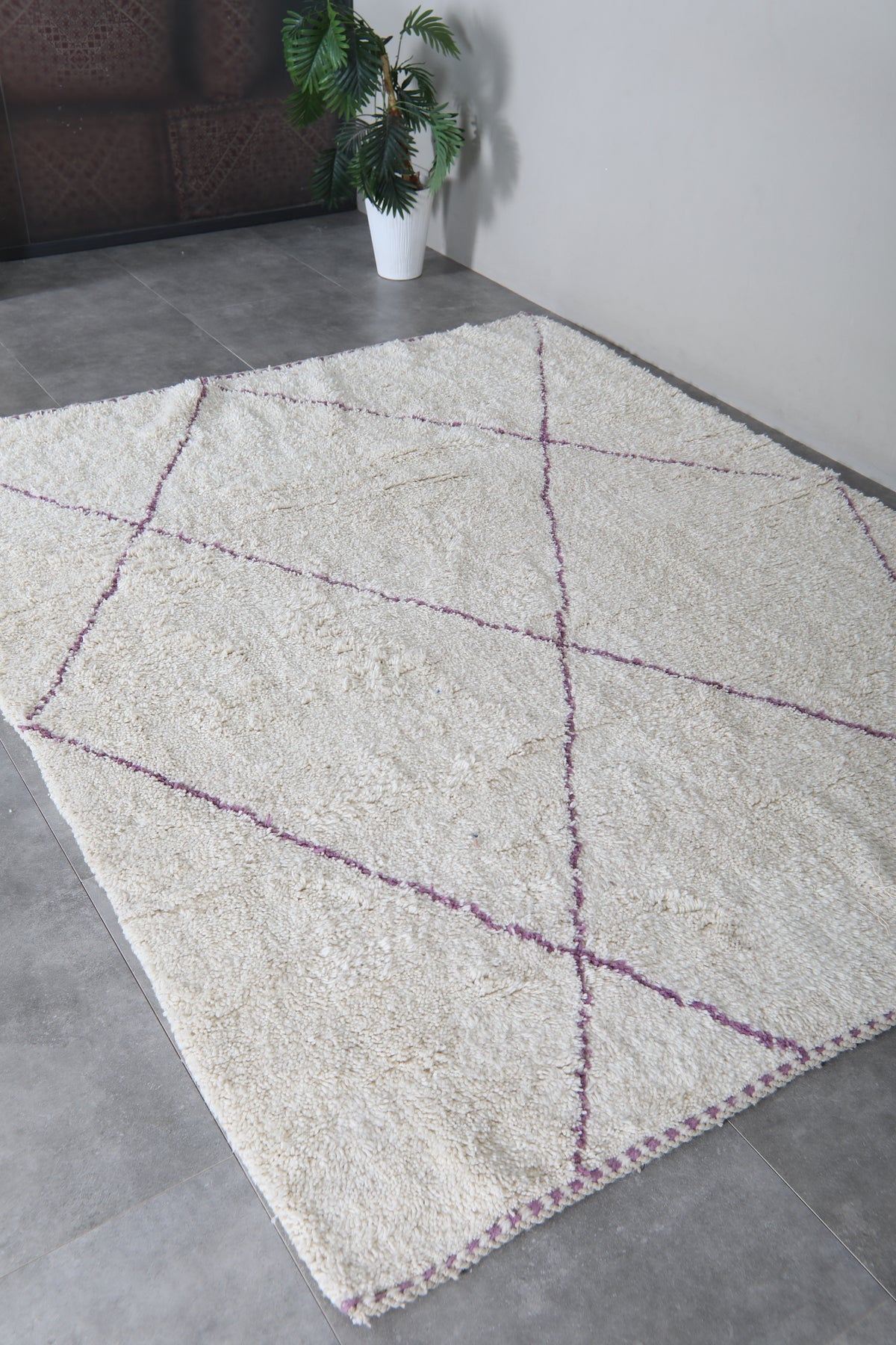 Ivory moroccan rug – Purple line beni ourain Rug-Custom size rug