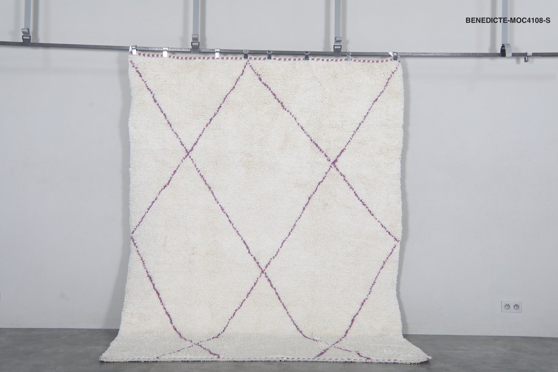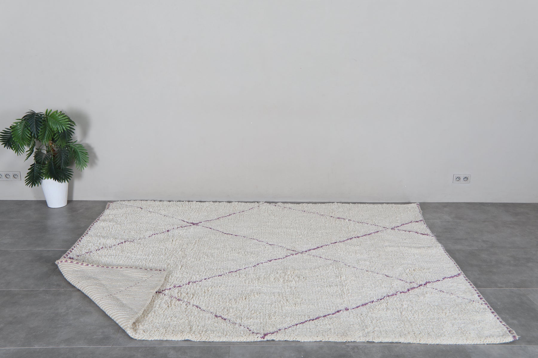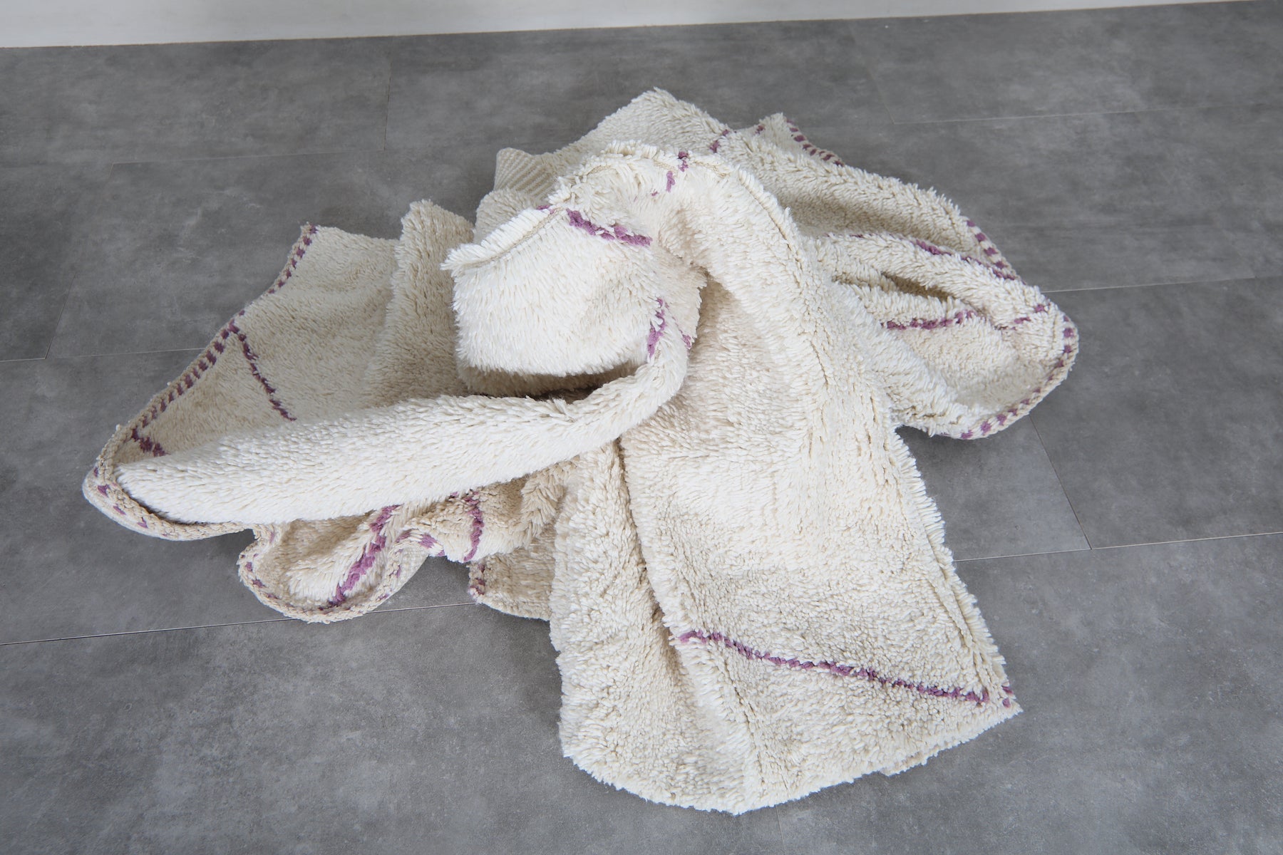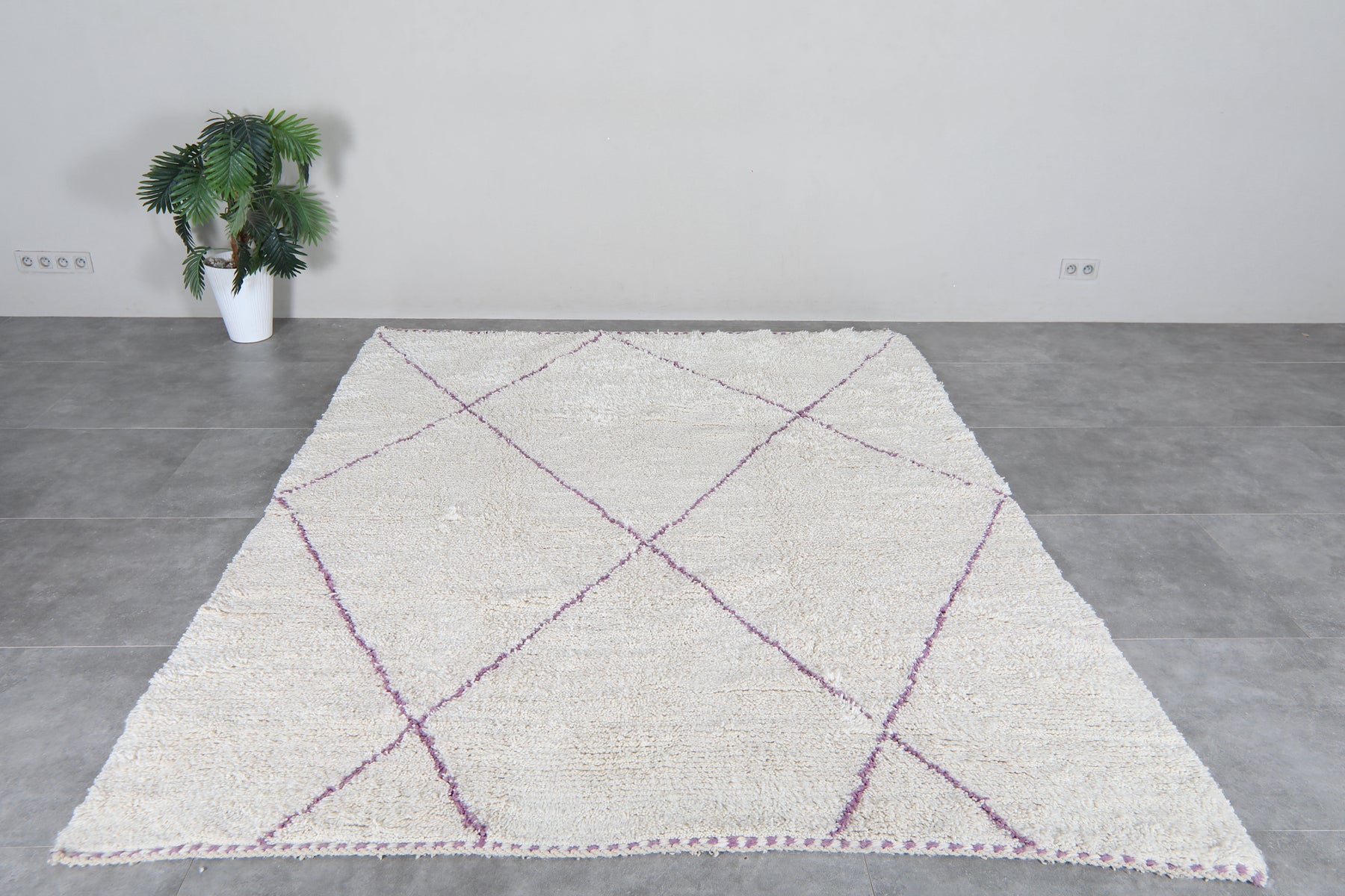 Ivory moroccan rug – Purple line beni ourain Rug-Custom size rug