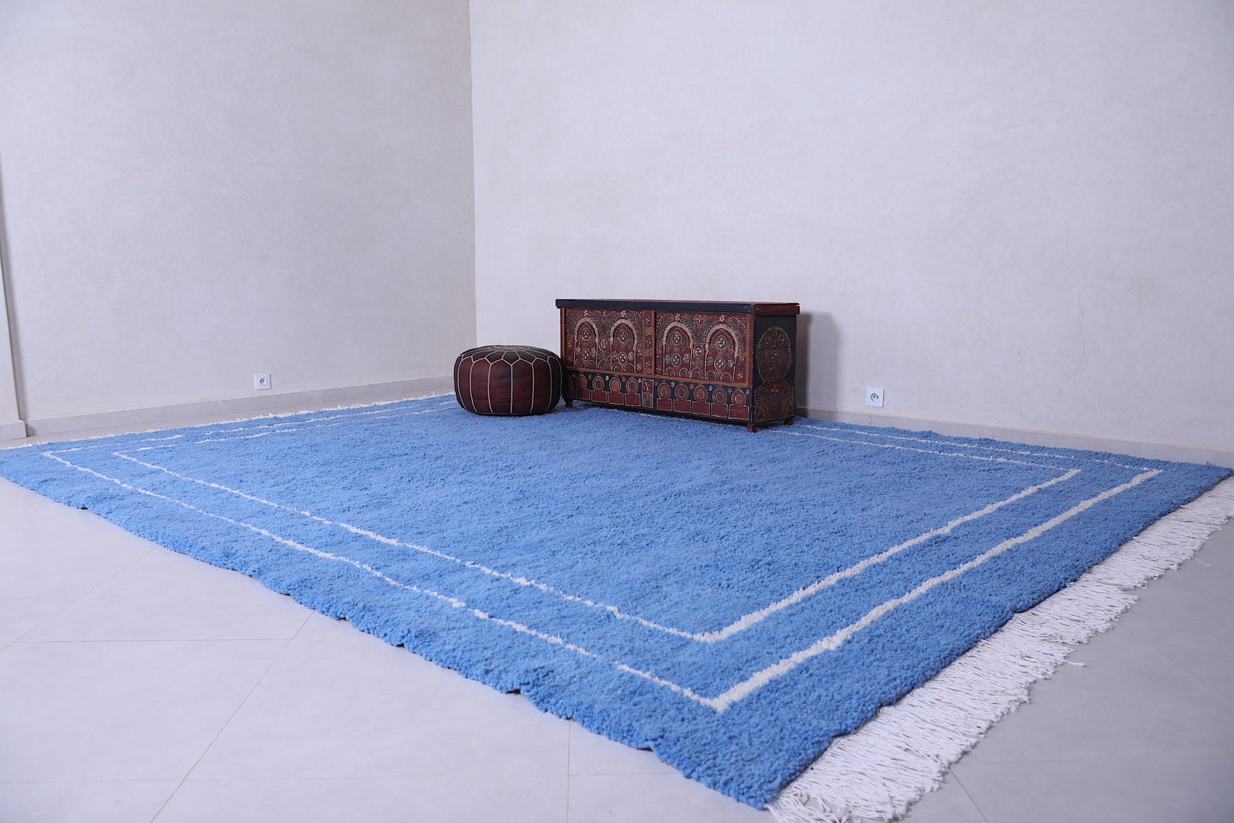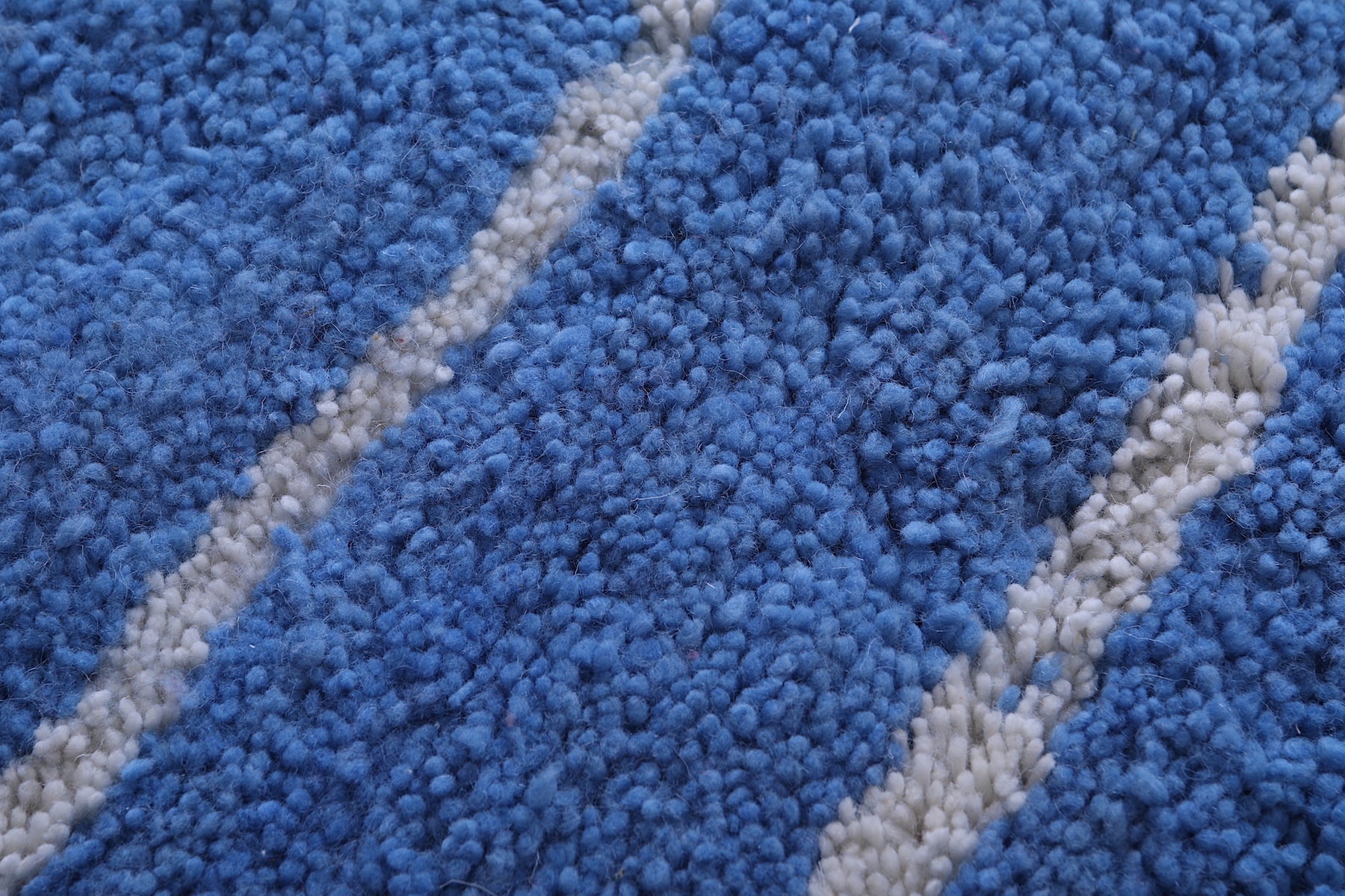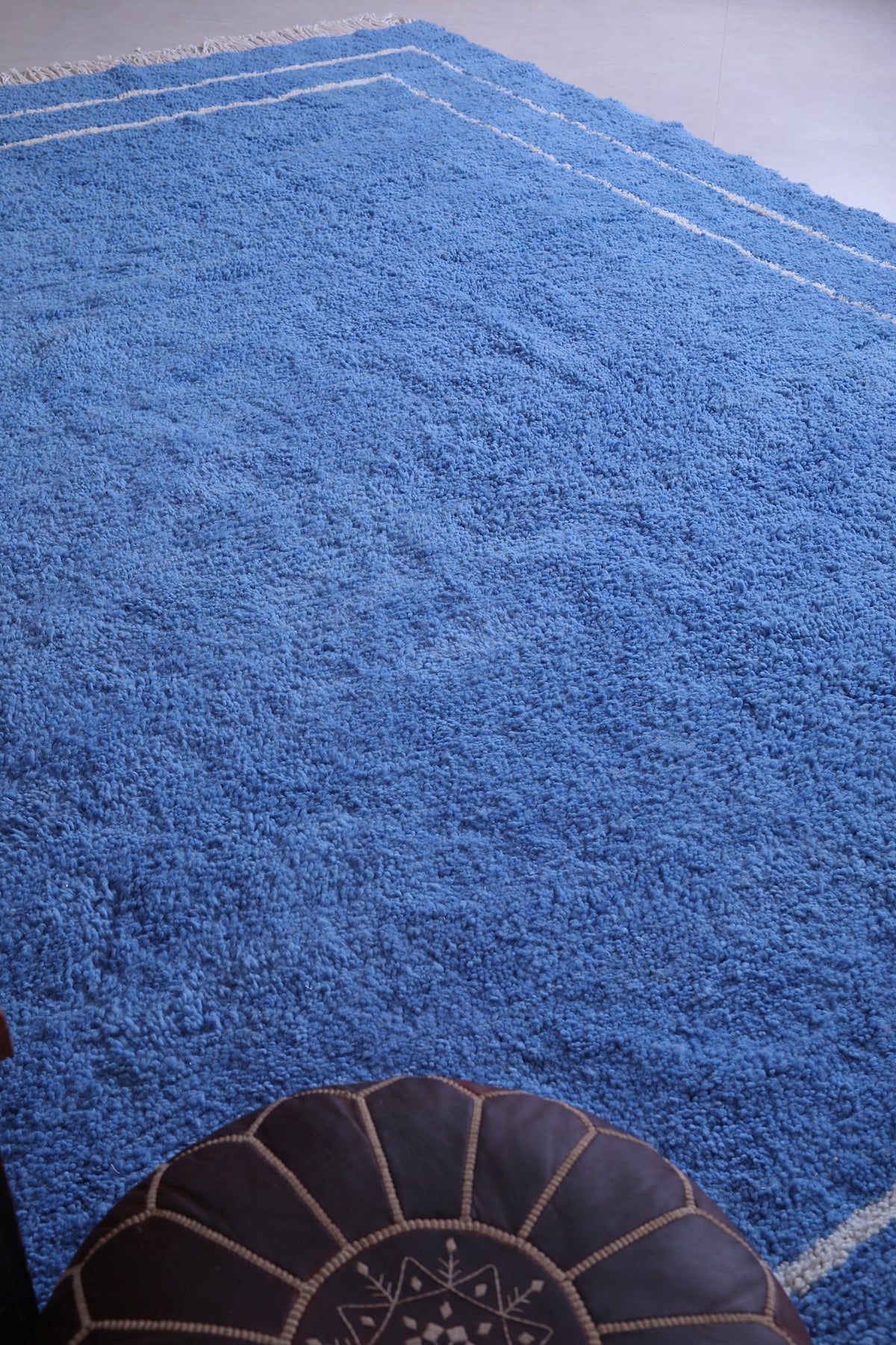 Infuse your space with Moroccan artistry using this vibrant Handmade Blue Berber Rug, woven from 100% pure wool. Its eye-catching cobalt blue base and minimal white border design create a bold yet elegant statement for contemporary and traditional spaces alike.