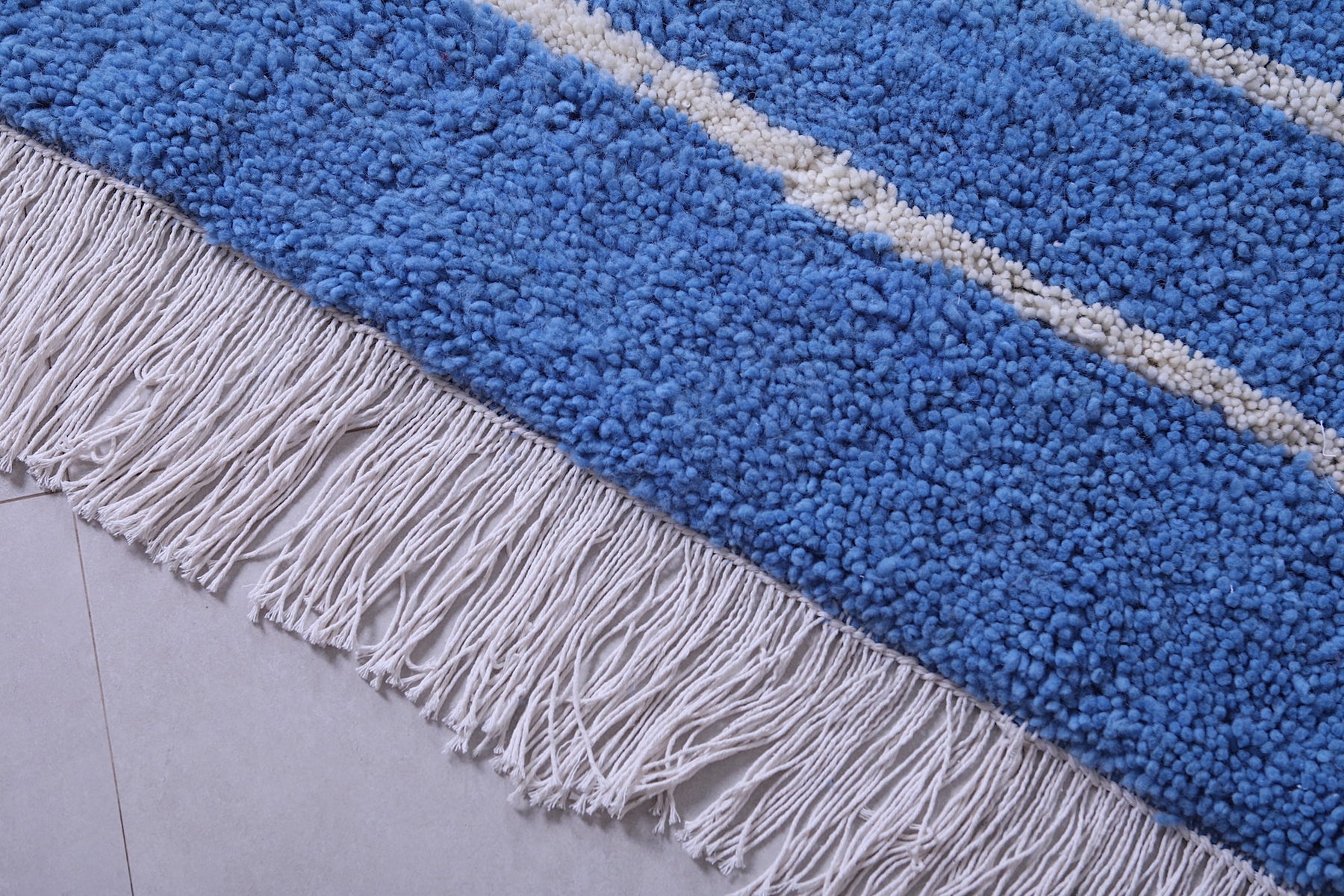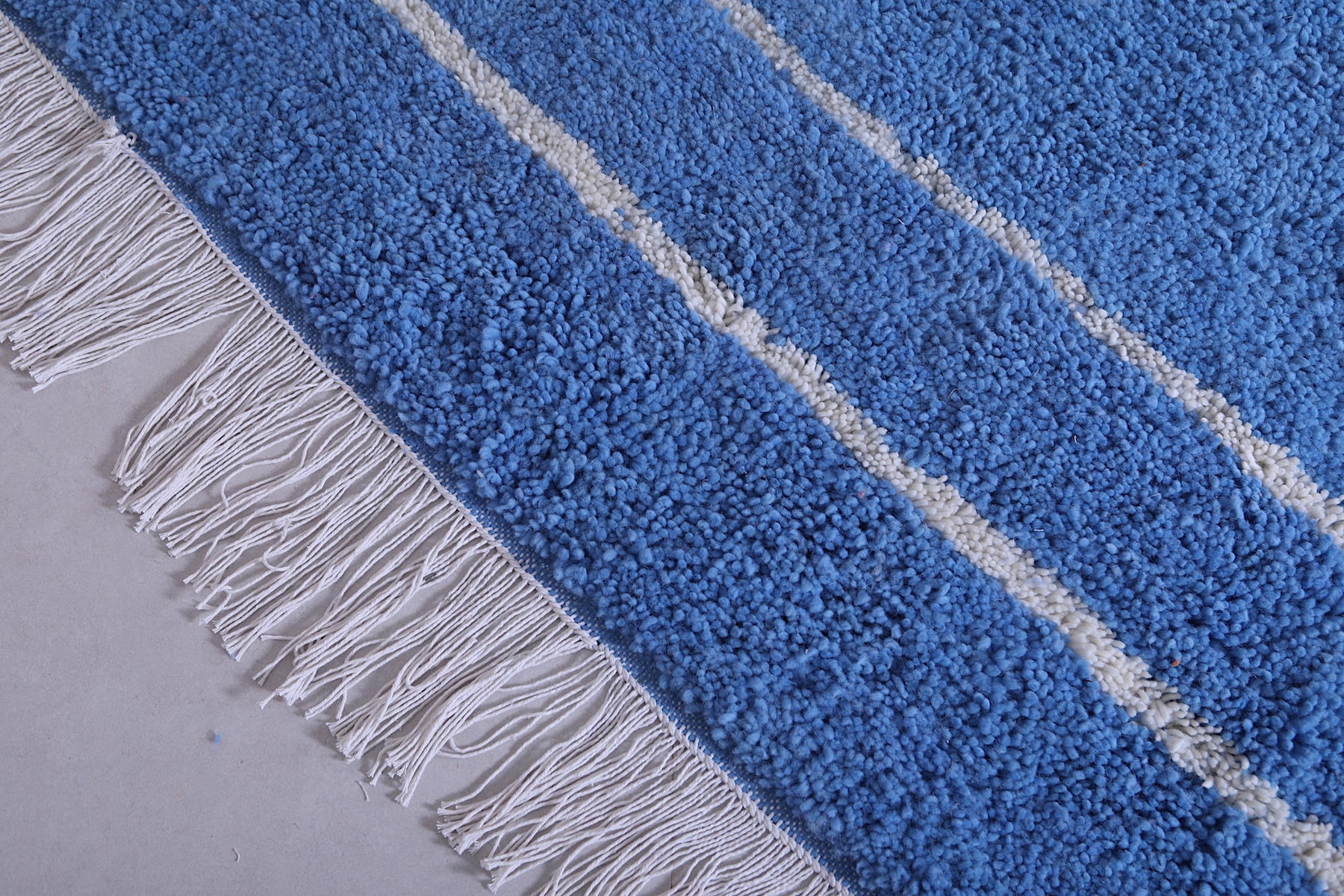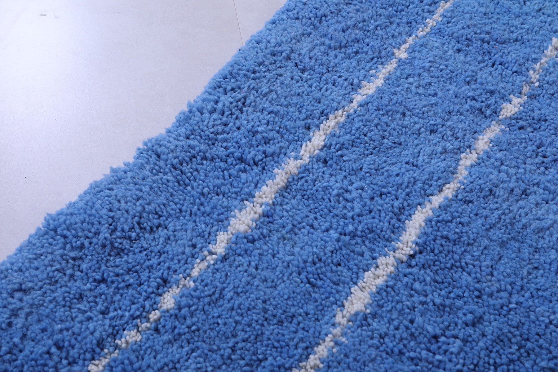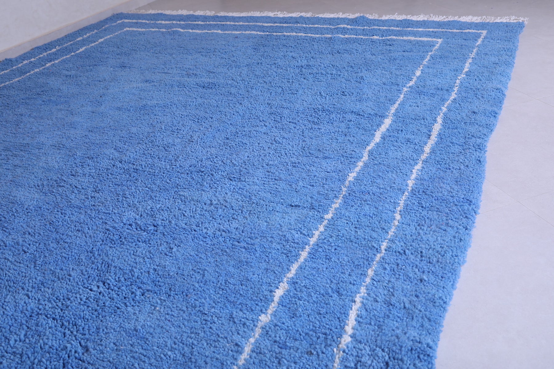 Infuse your space with Moroccan artistry using this vibrant Handmade Blue Berber Rug, woven from 100% pure wool. Its eye-catching cobalt blue base and minimal white border design create a bold yet elegant statement for contemporary and traditional spaces alike.