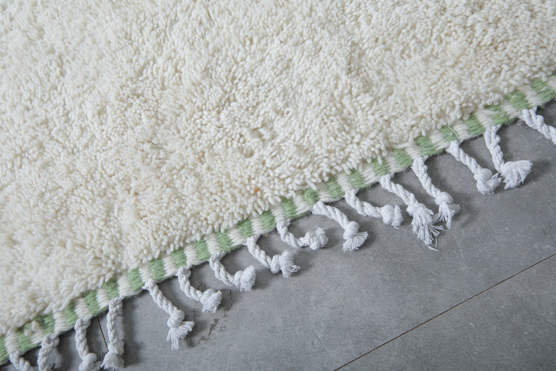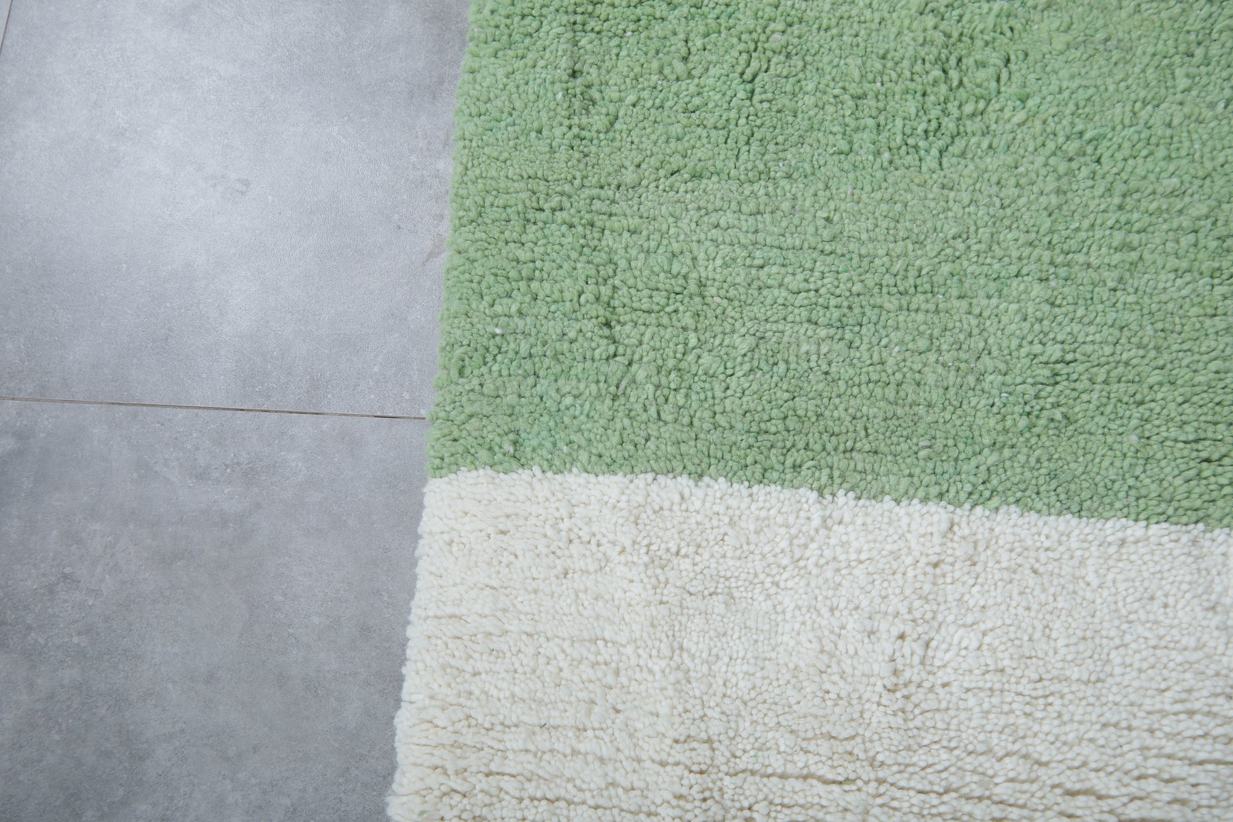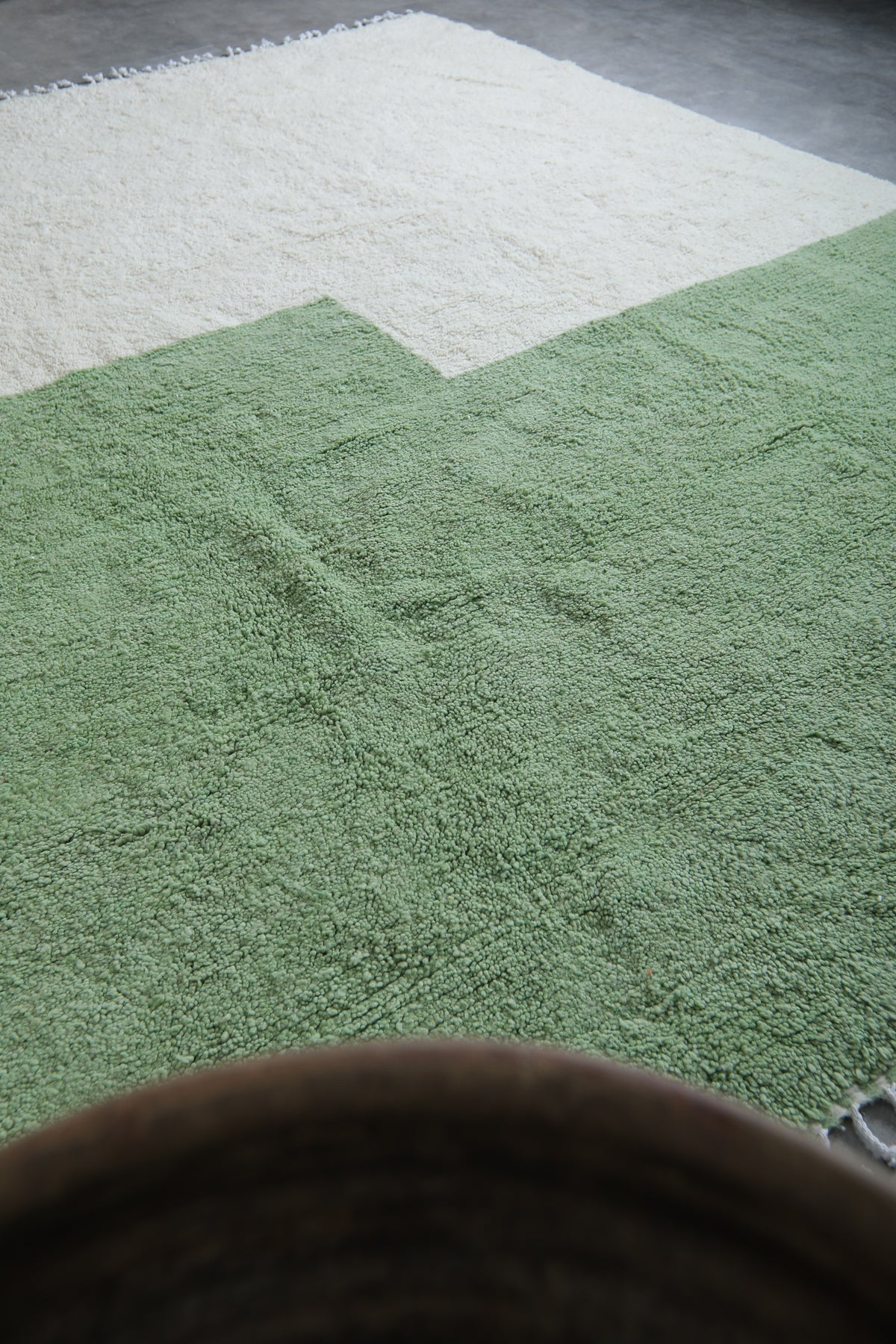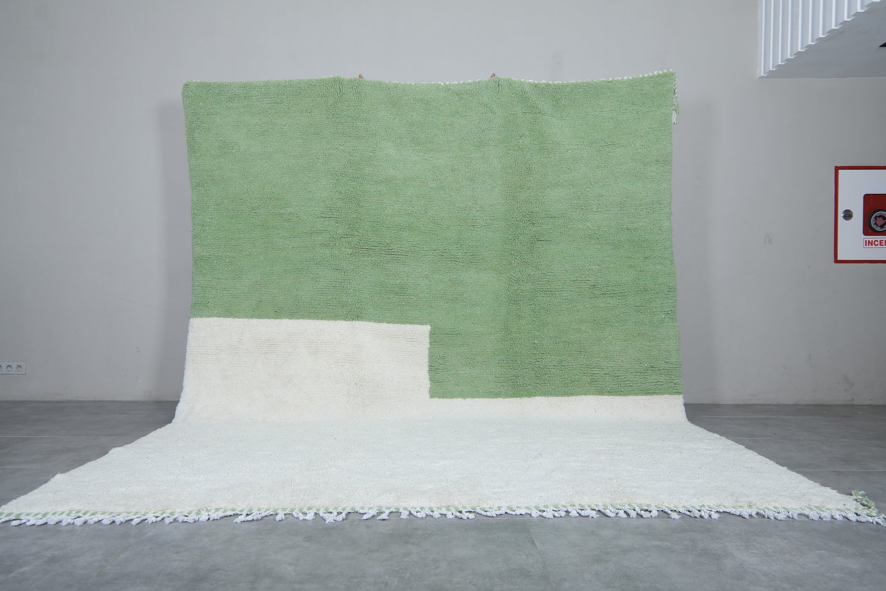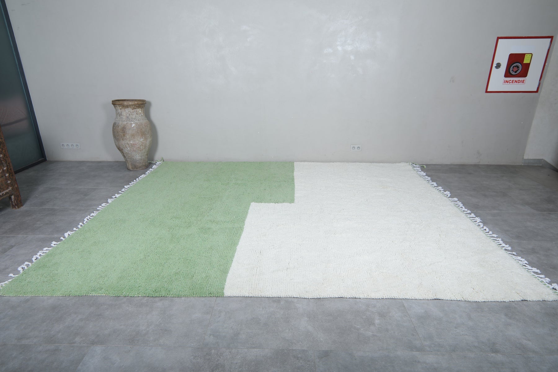 Discover the elegance of this Handmade Moroccan Rug, sized at 10 x 12 feet (305 CM x 366 CM). Featuring a distinctive two-tone green and cream design, this rug is perfect for spacious living rooms, dining areas, or bedrooms. Crafted from premium wool, it offers exceptional softness and durability, making it ideal for both comfort and style. The minimalist yet striking design complements a variety of décor styles, from bohemian to modern. Elevate your space with this timeless Moroccan piece. Order now and transform your home!