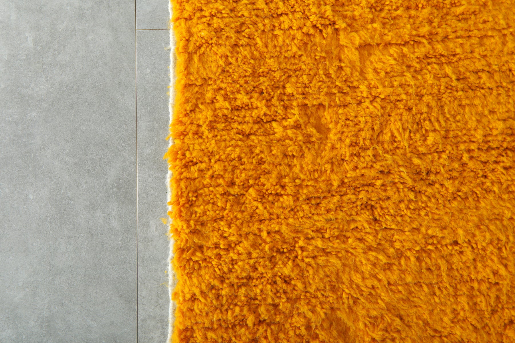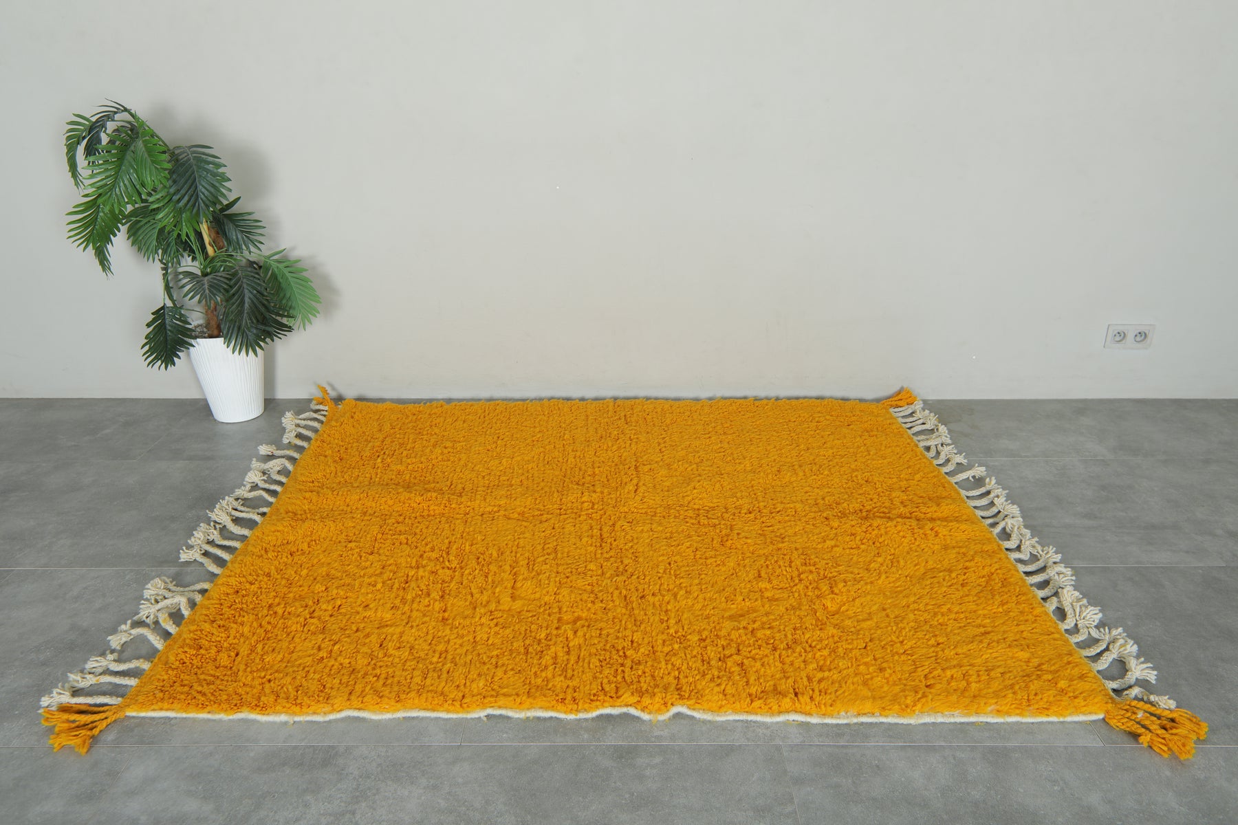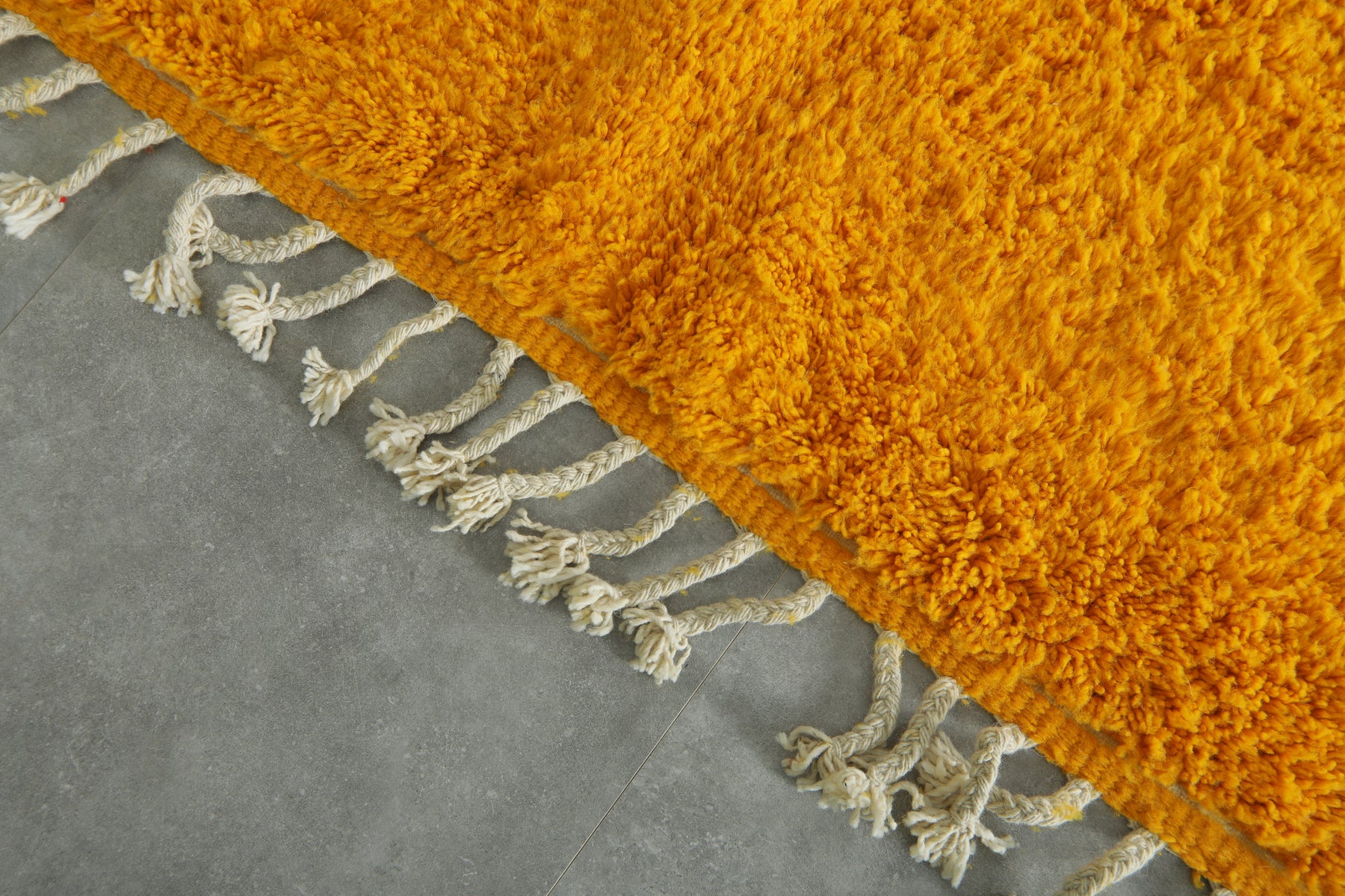 Infuse your space with bold character using this vibrant mustard yellow Moroccan rug. Handwoven by skilled artisans from 100% natural wool, this plush Berber rug combines traditional craftsmanship with contemporary color. Its rich golden hue makes it a stunning statement piece for modern, bohemian, or eclectic interiors. Soft underfoot and naturally durable, this Moroccan rug is perfect for living rooms, bedrooms, or creative spaces looking for a pop of color and cultural charm.