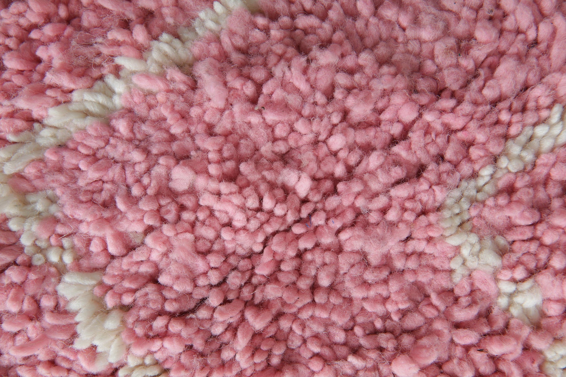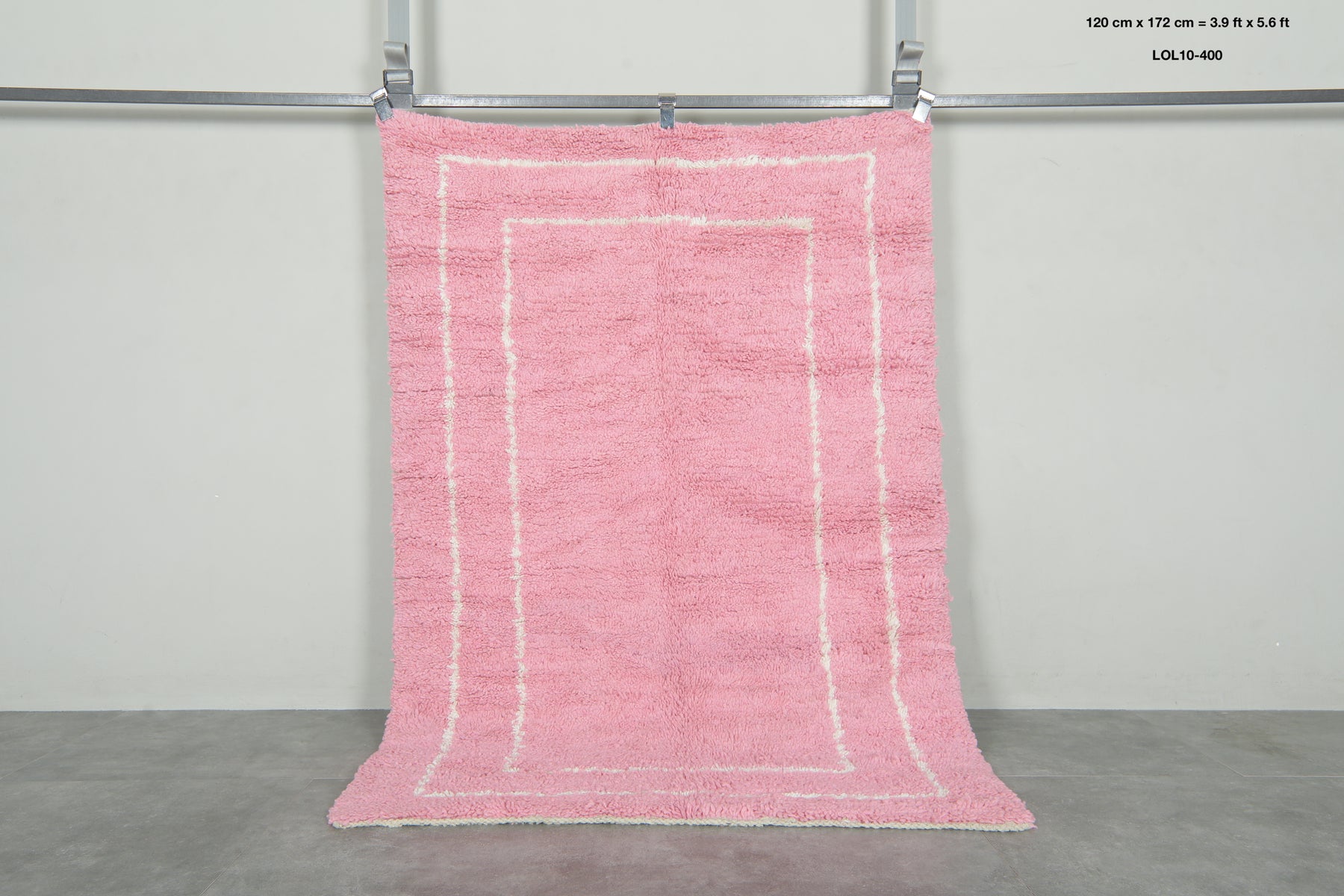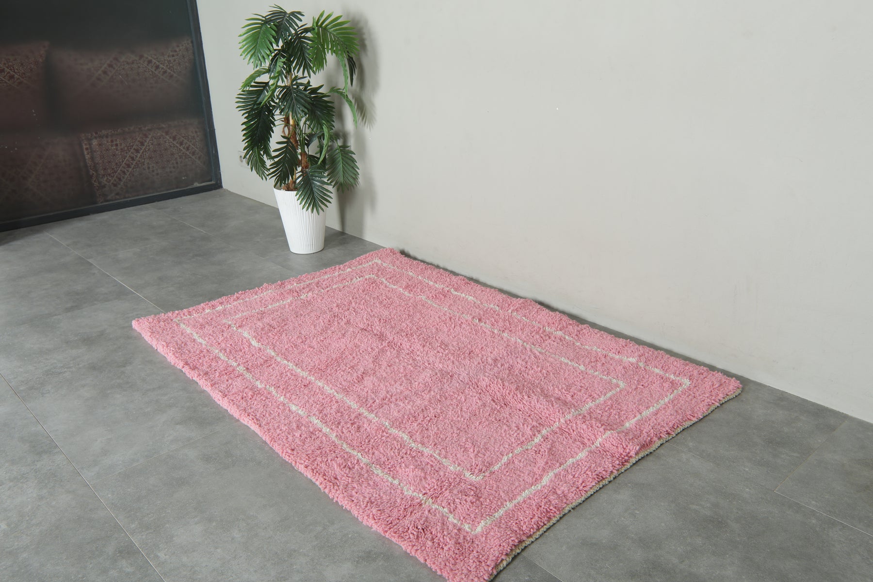 Handmade pink and white wool Moroccan rug - 3.9 ft x 5.6 ft