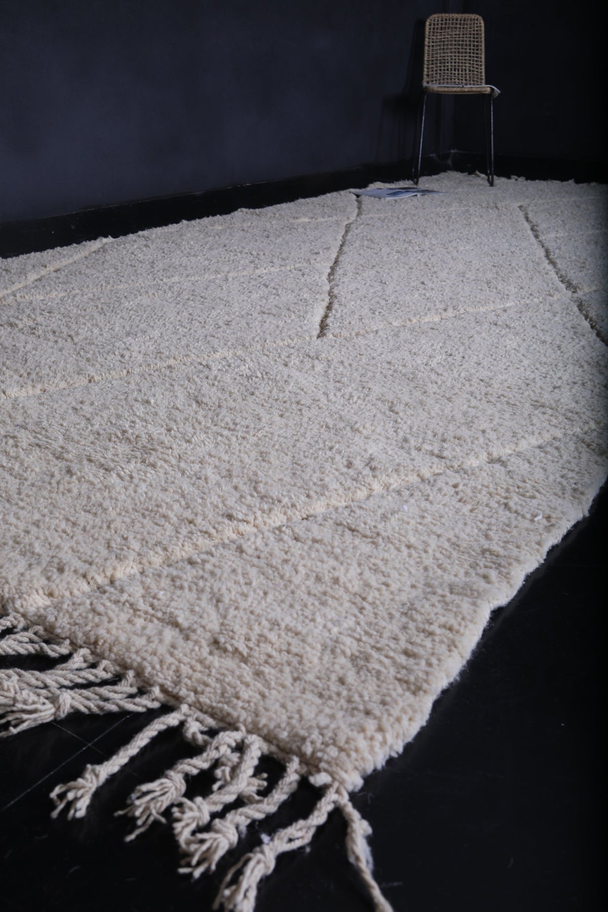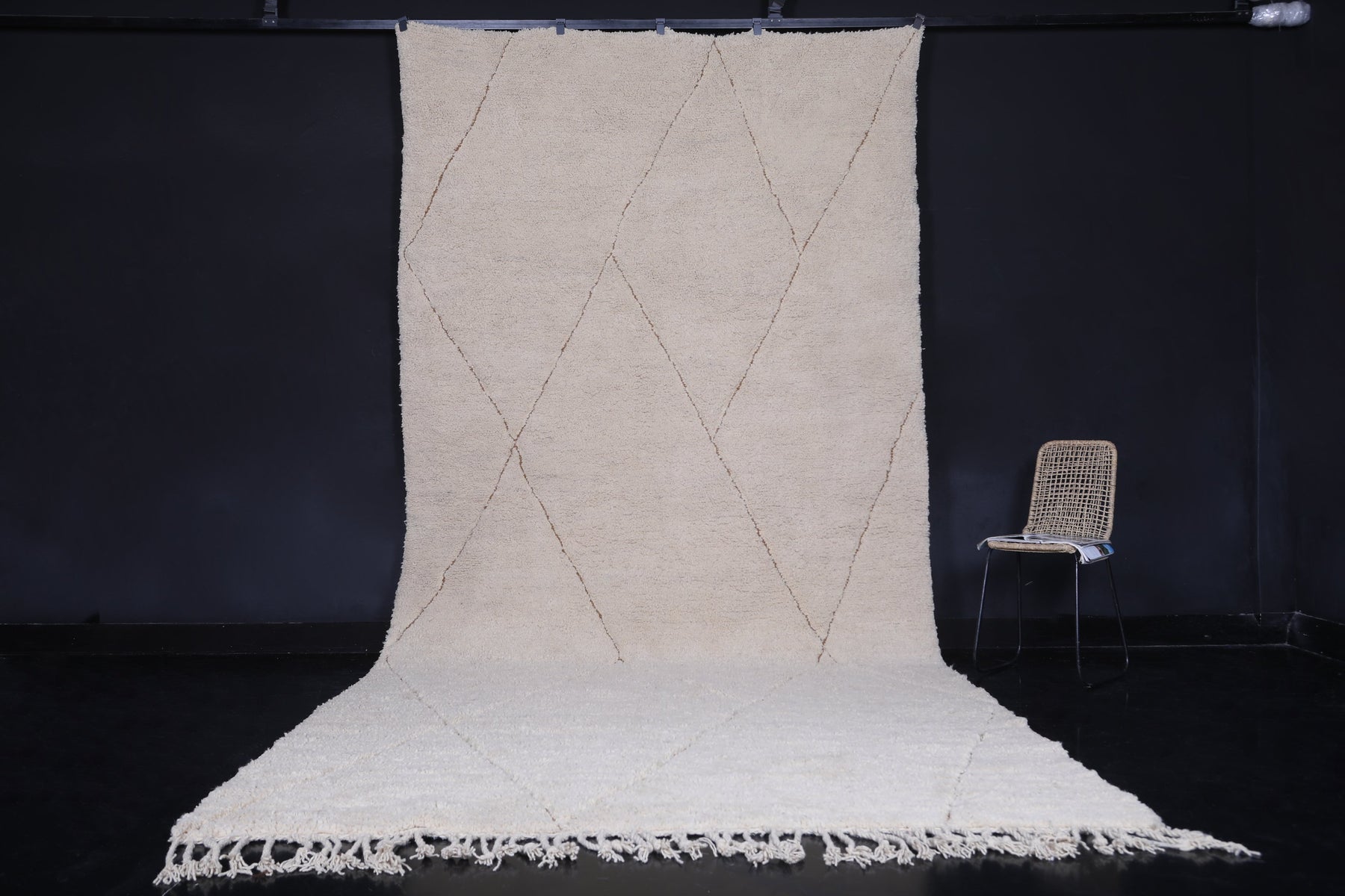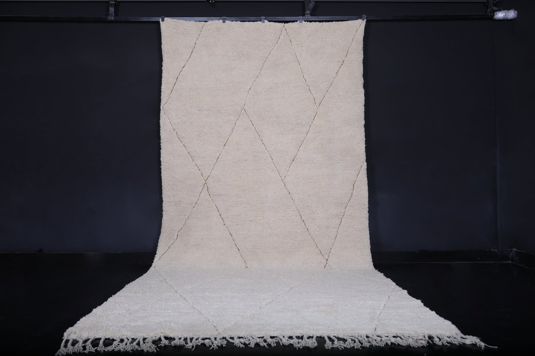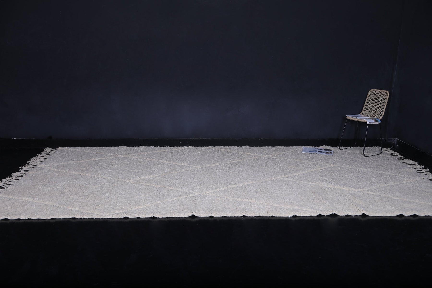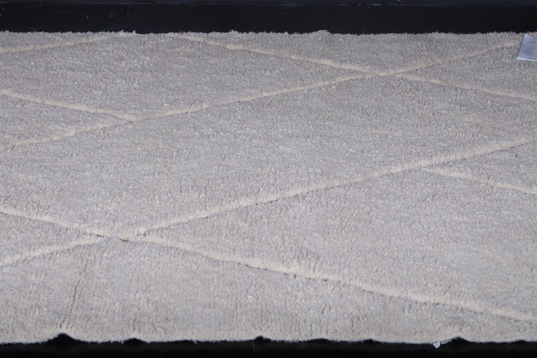 Handwoven Moroccan Beni Ourain rug featuring a soft ivory wool base with subtle diamond lattice patterns. This plush Berber rug brings timeless elegance and cozy texture to any interior, blending traditional craftsmanship with modern minimalist design. Perfect for living rooms, bedrooms, or boho-inspired spaces.