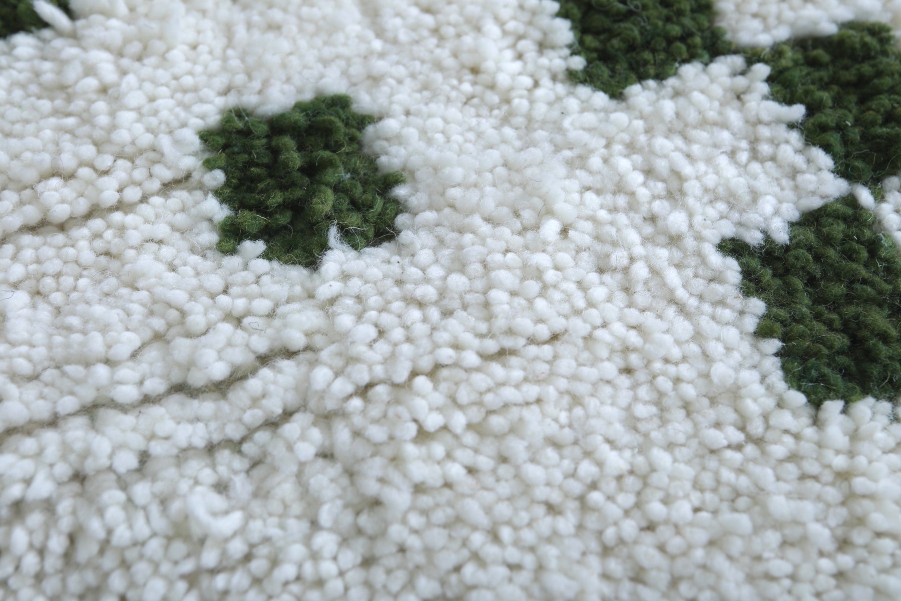 A minimalist green geometric pattern on a soft white background, perfect for modern and traditional interiors alike.