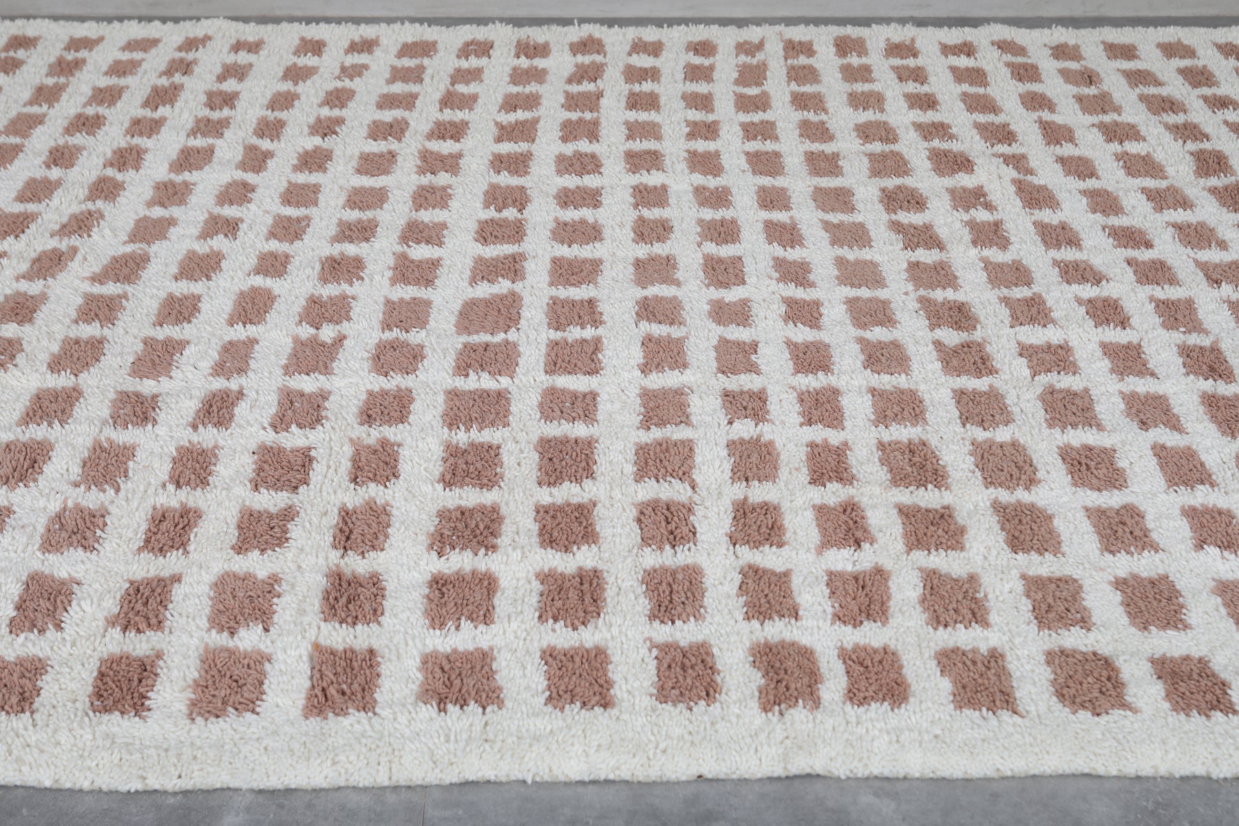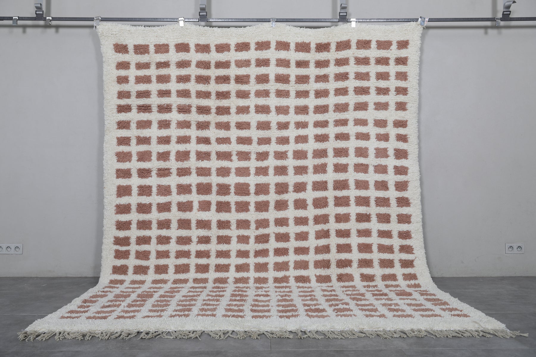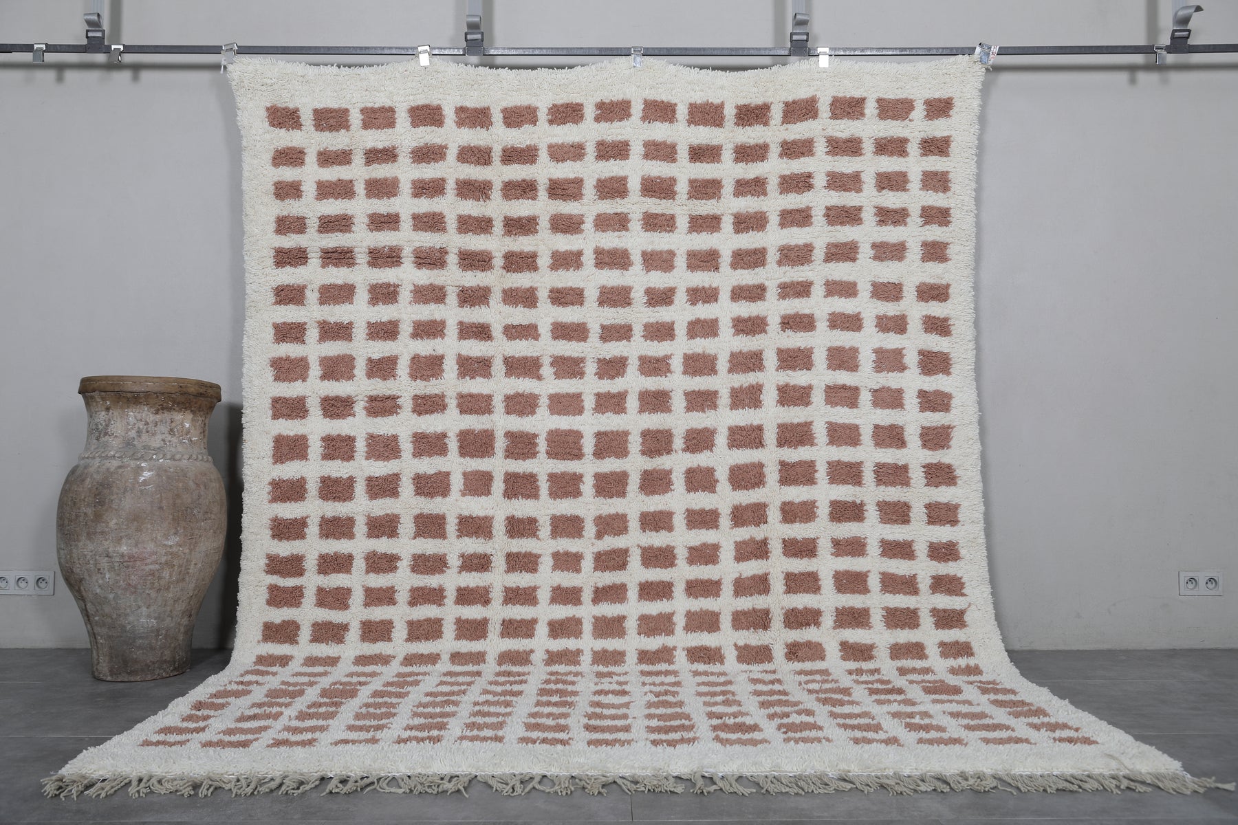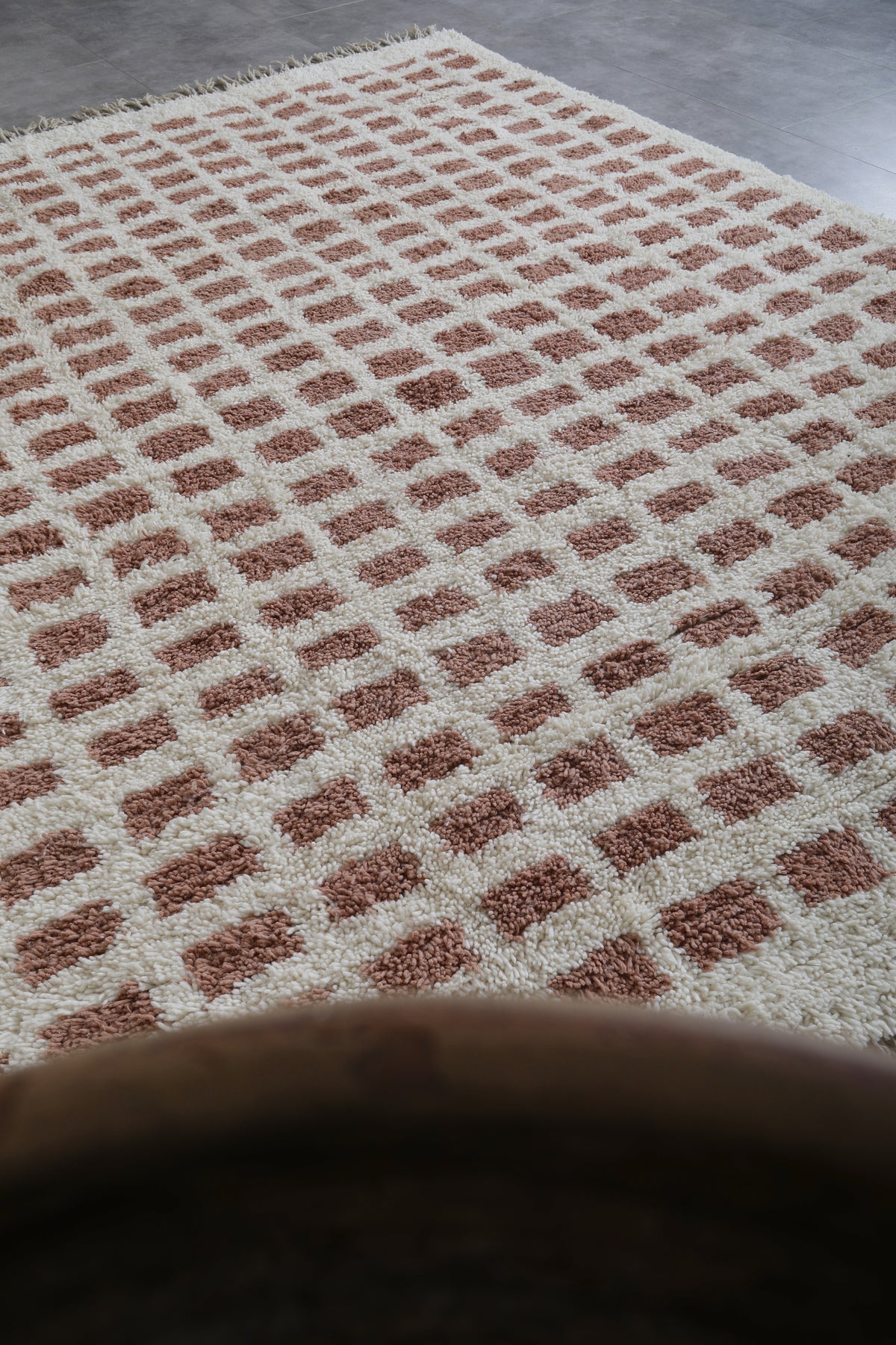 Bring earthy sophistication and artisan detail to your space with this Moroccan Beni Rug – Wool Rug. This handmade piece blends timeless craftsmanship with a bold, modern grid.