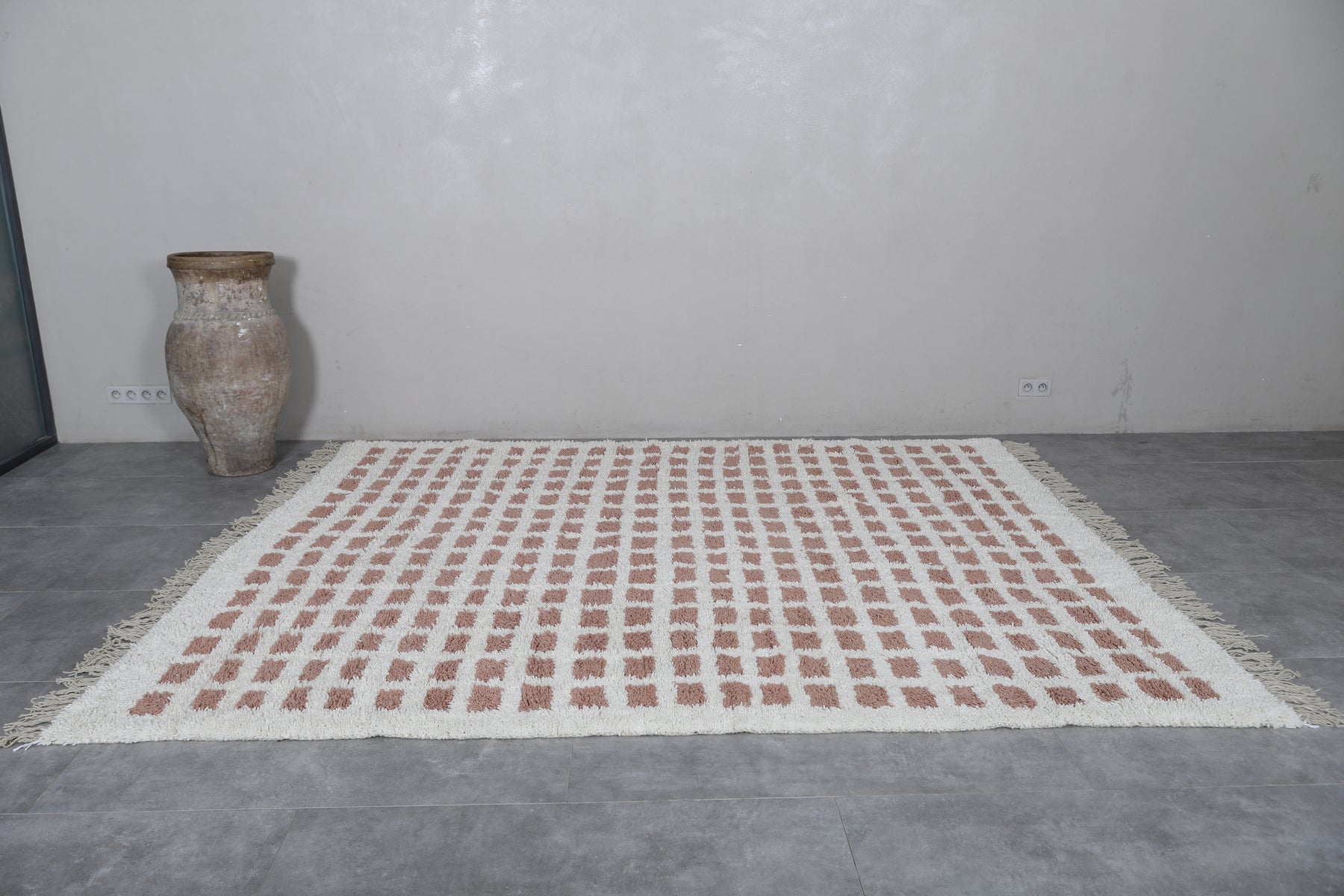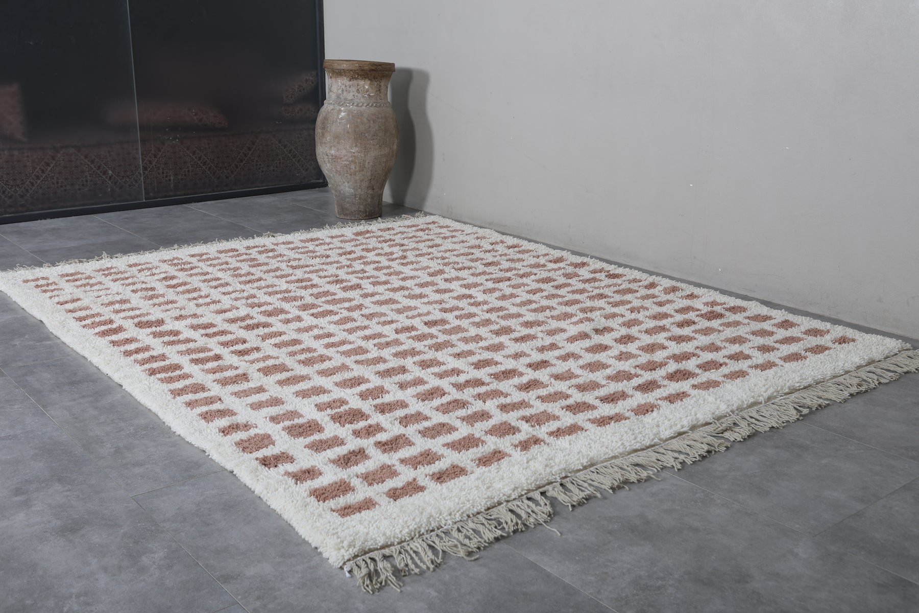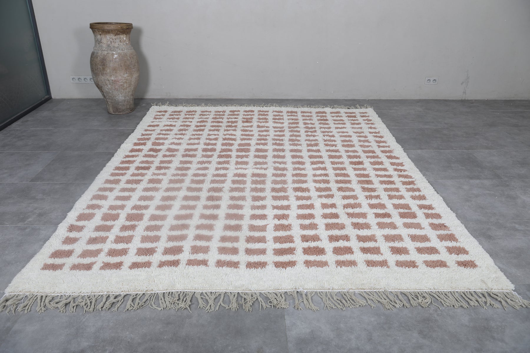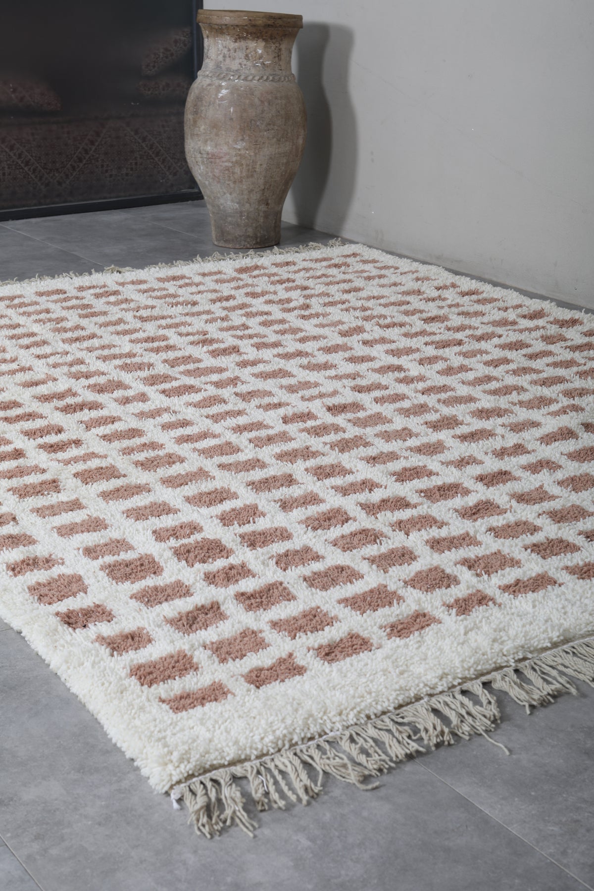 Bring earthy sophistication and artisan detail to your space with this Moroccan Beni Rug – Wool Rug. This handmade piece blends timeless craftsmanship with a bold, modern grid.