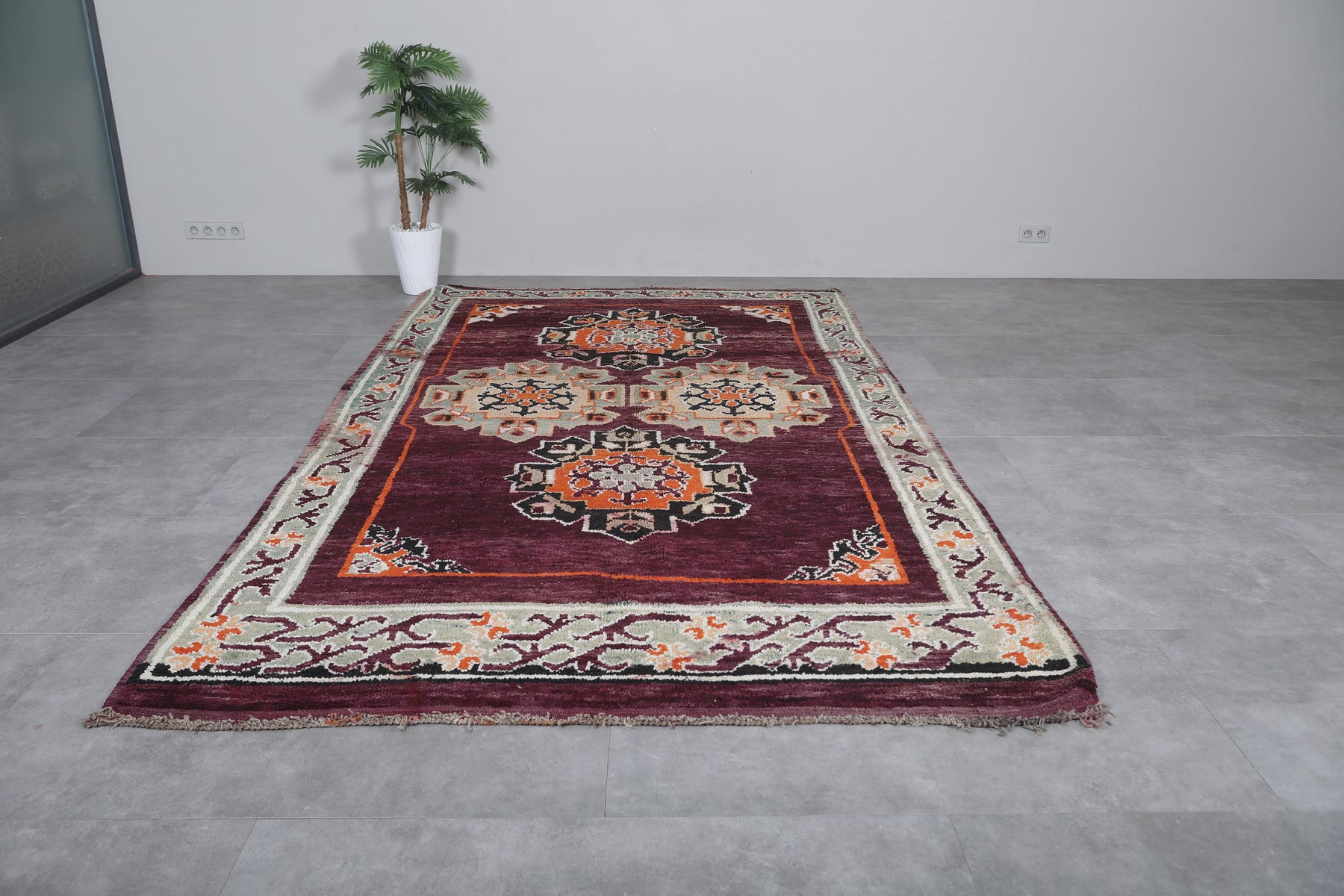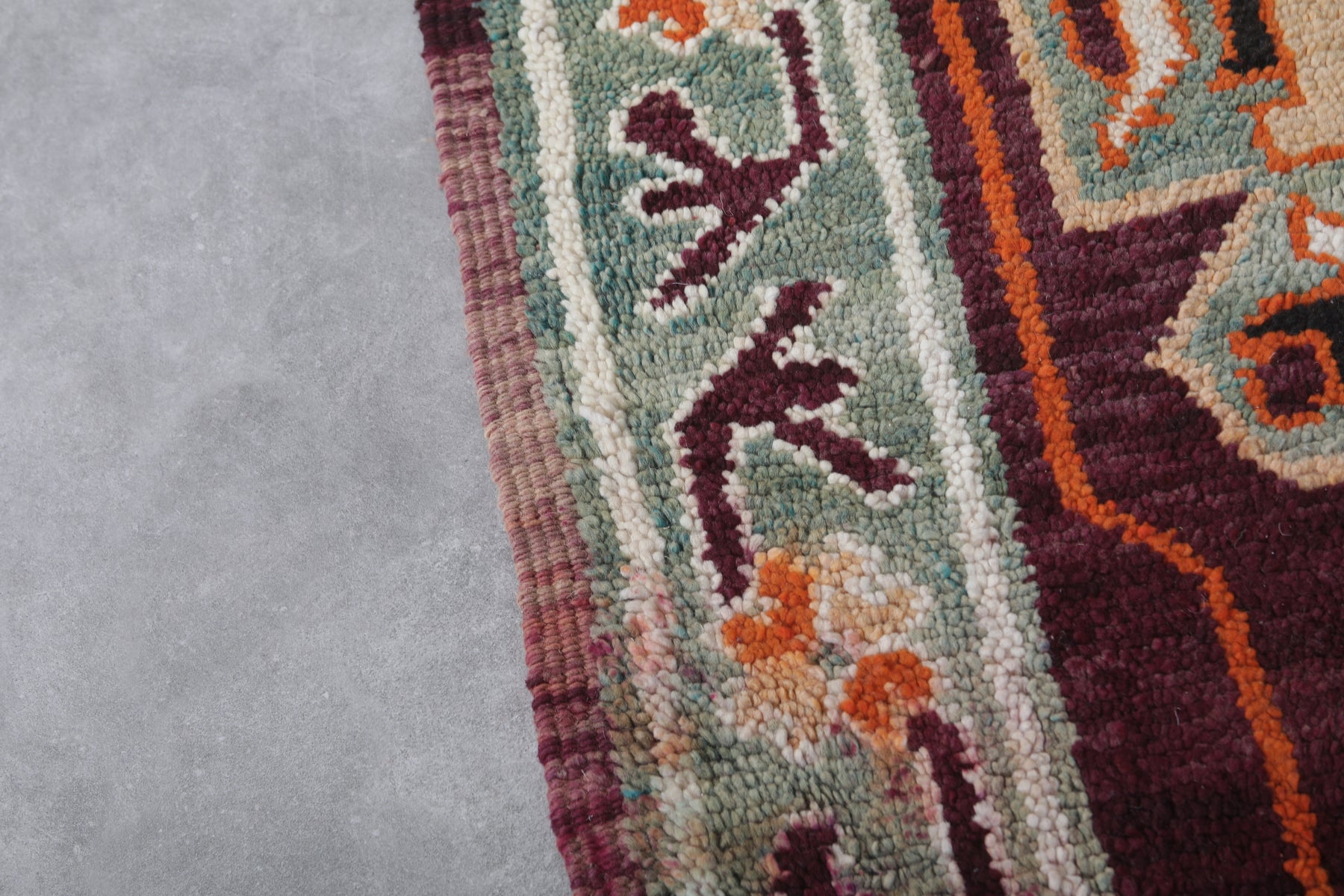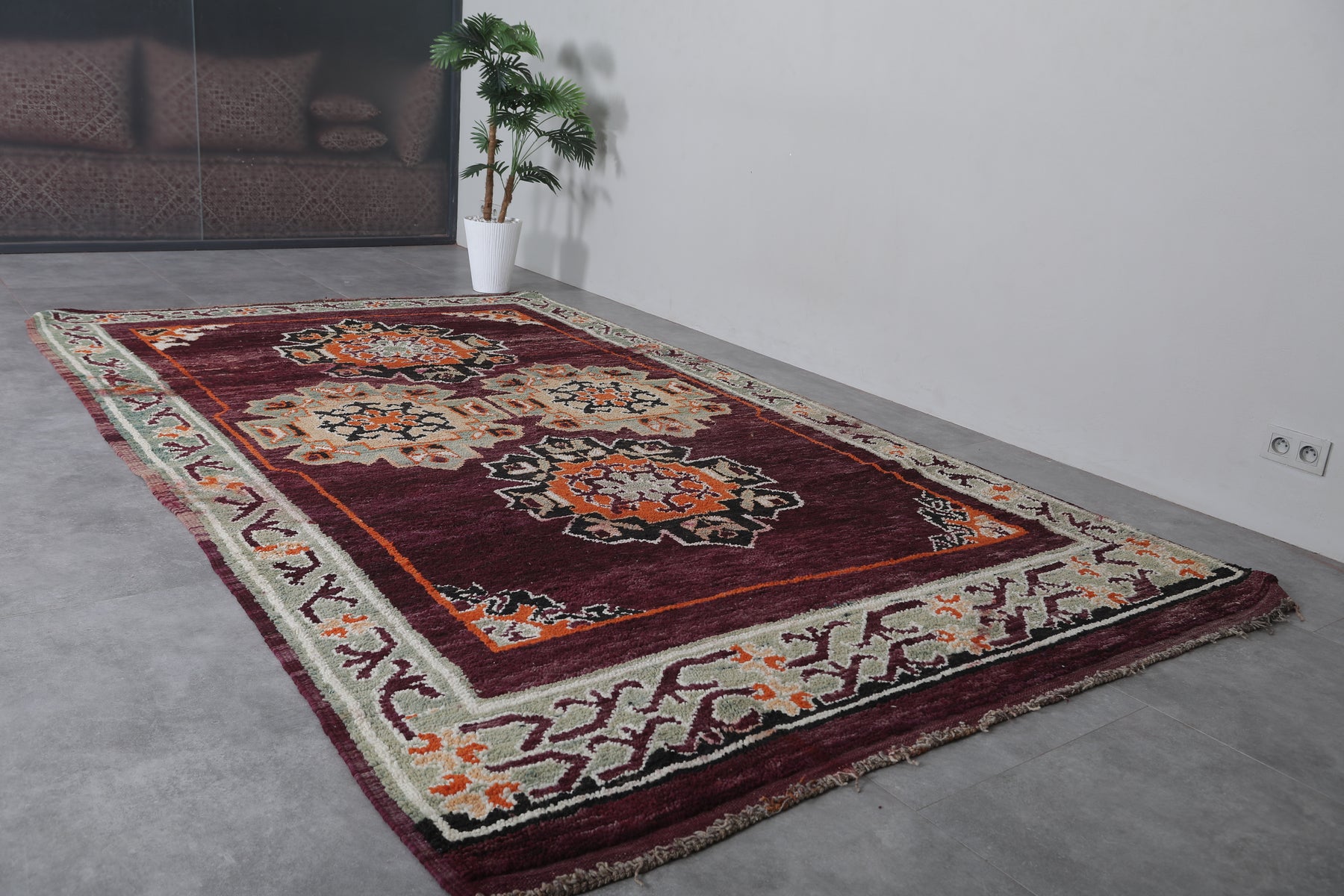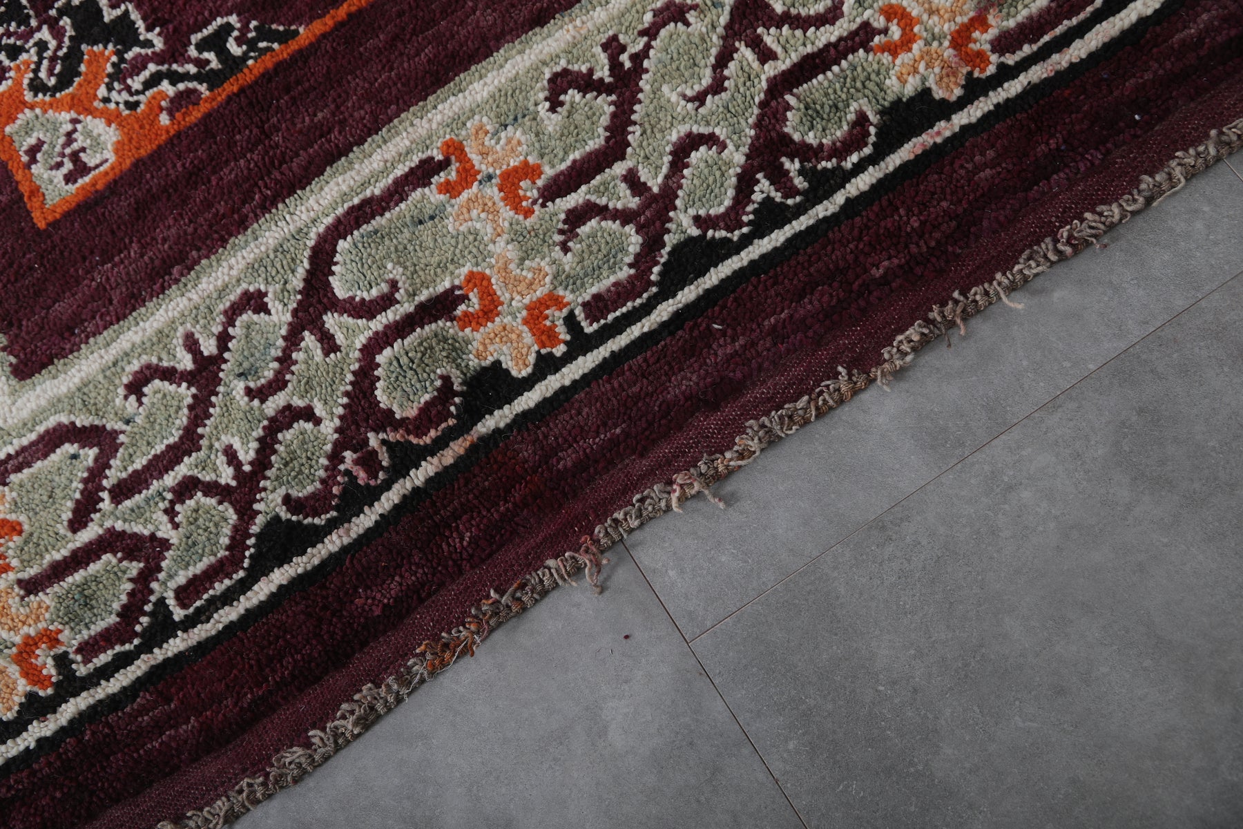 Handcrafted with care, this rug showcases traditional Moroccan artistry, creating a statement piece that complements both modern and classic interiors. The plush texture and rich burgundy background provide warmth and luxury, making it a perfect addition to living rooms, dining spaces, or bedrooms.