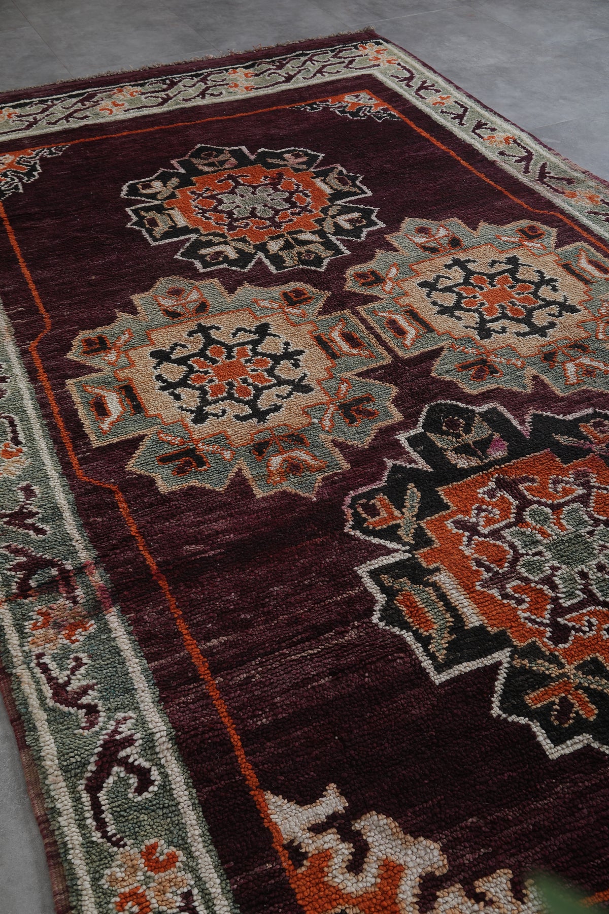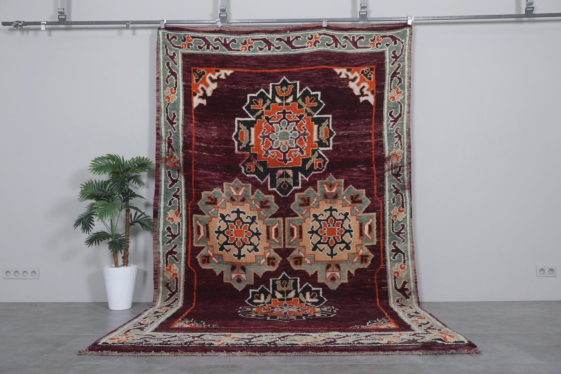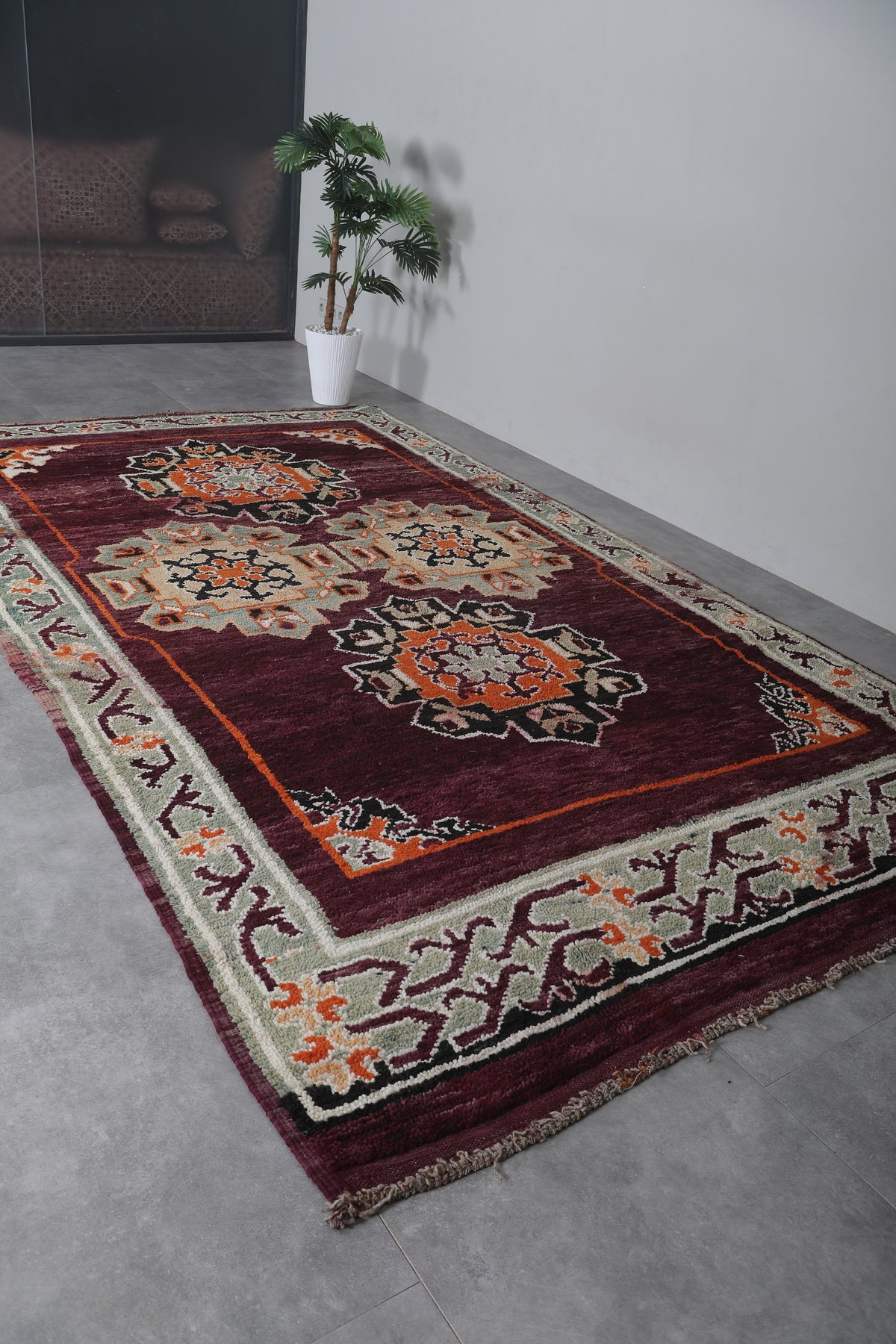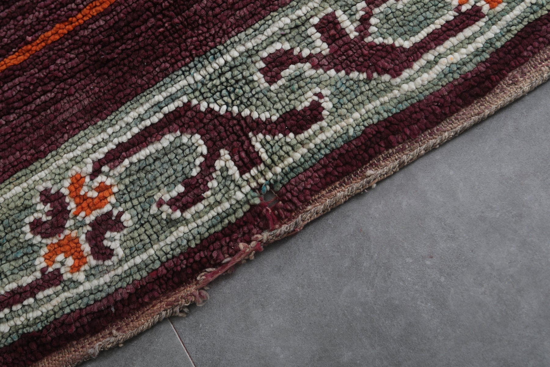 Handcrafted with care, this rug showcases traditional Moroccan artistry, creating a statement piece that complements both modern and classic interiors. The plush texture and rich burgundy background provide warmth and luxury, making it a perfect addition to living rooms, dining spaces, or bedrooms.