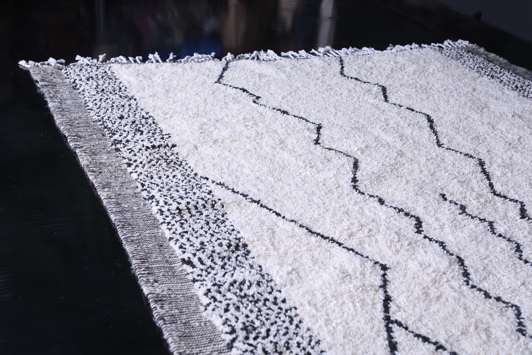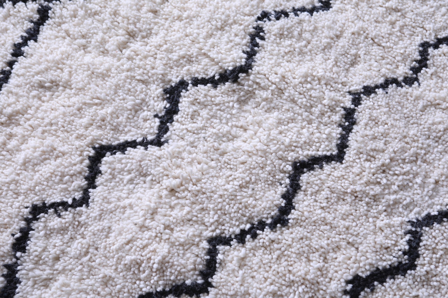 Made from premium wool, it provides incredible softness, warmth, and durability. The monochrome palette and abstract linework give it a sleek, minimalist edge—perfect for contemporary, boho, or Scandinavian interiors.