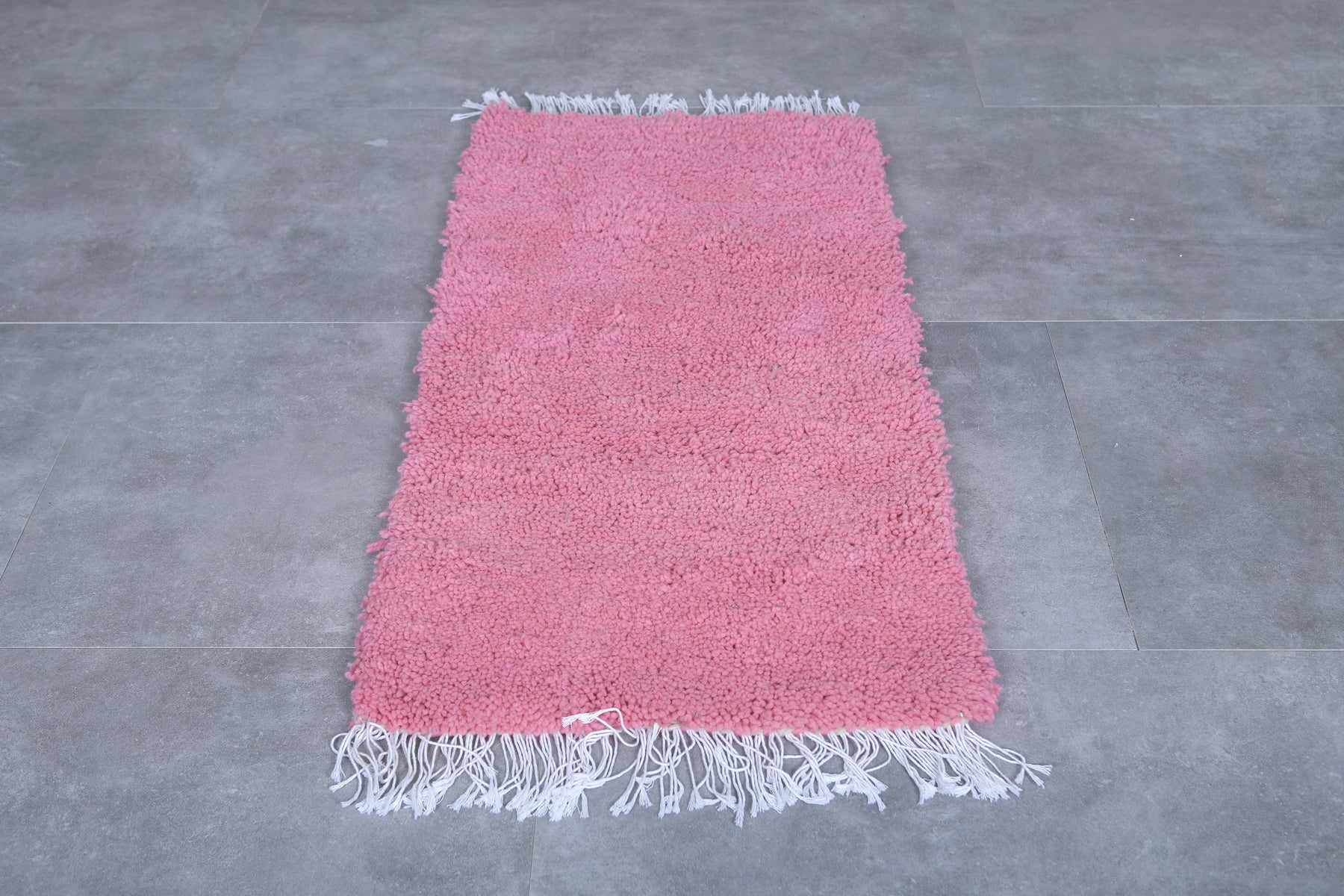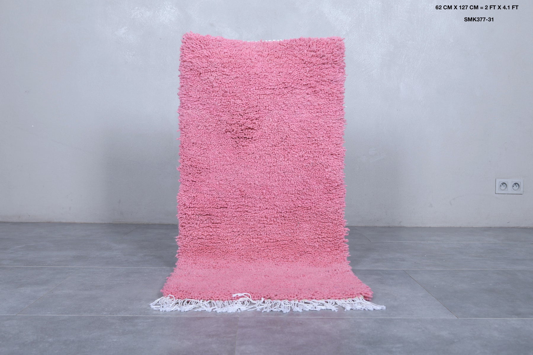 Pink Moroccan rug - 2 x 4.1 Feet | Handmade wool accent