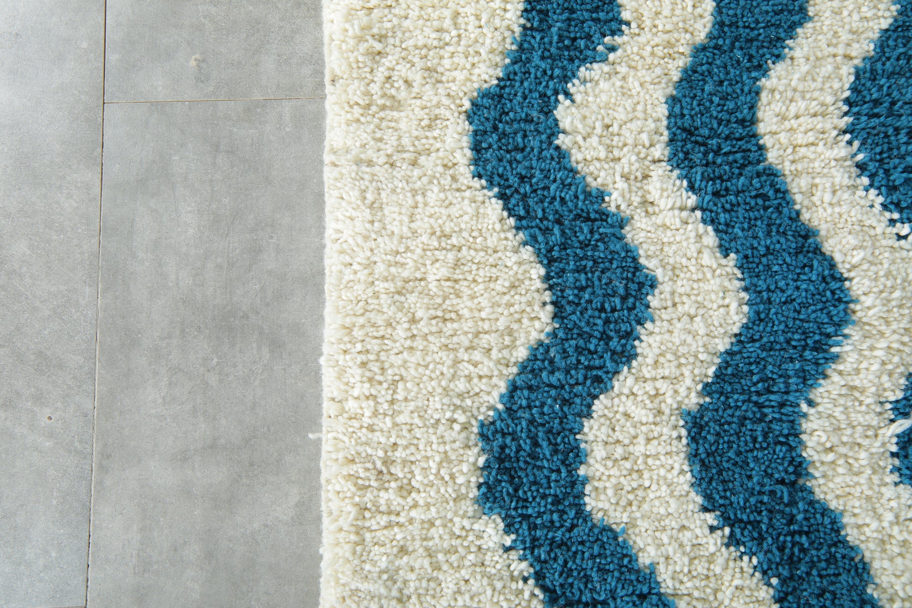 Crafted by skilled artisans, its plush pile offers warmth underfoot while the durable construction ensures long-lasting quality. The clean, geometric waves make it an ideal statement piece for living rooms, bedrooms, or creative workspaces.
