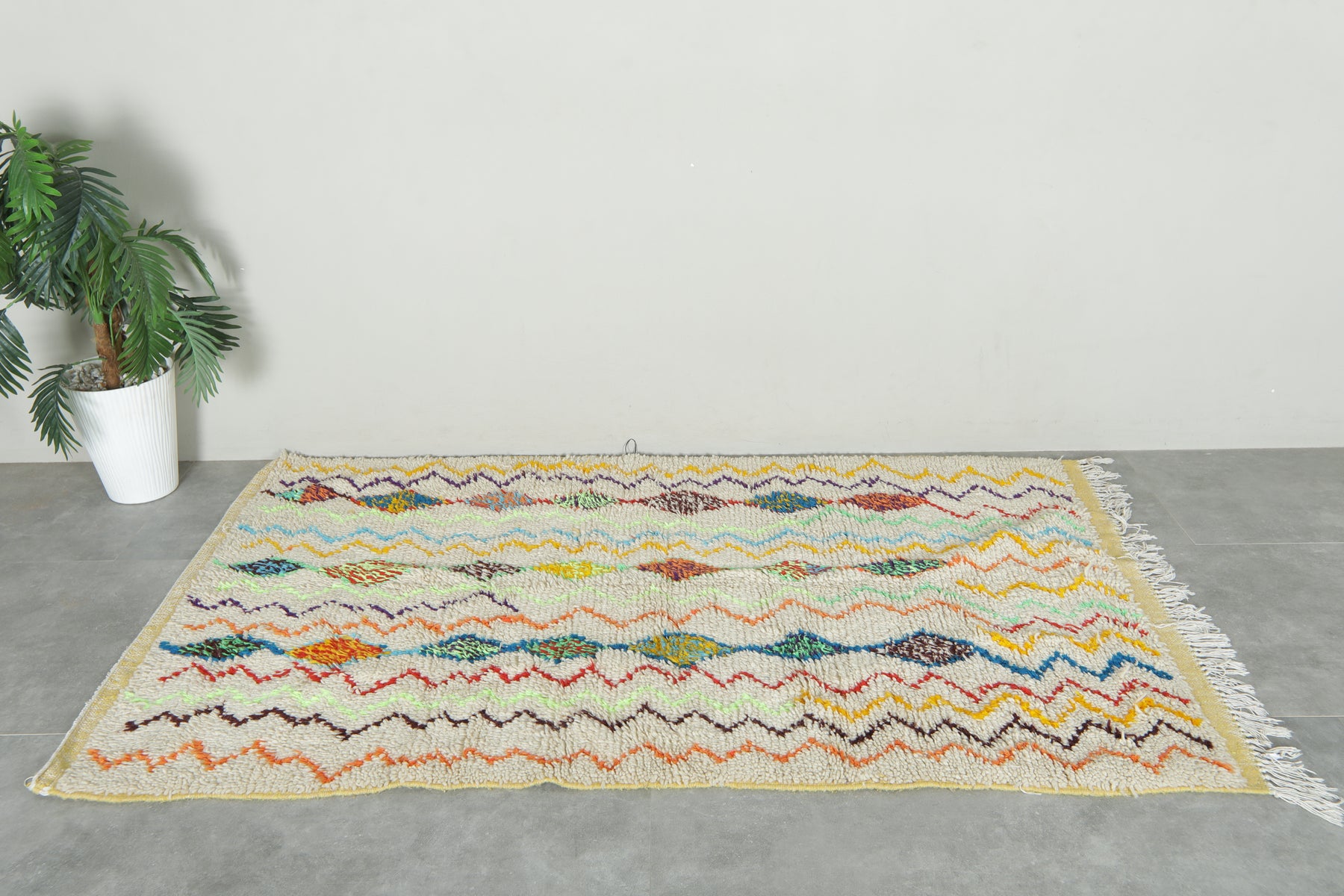 Handmade Moroccan azilal rug with geometric design - 4 ft x 6.7 ft