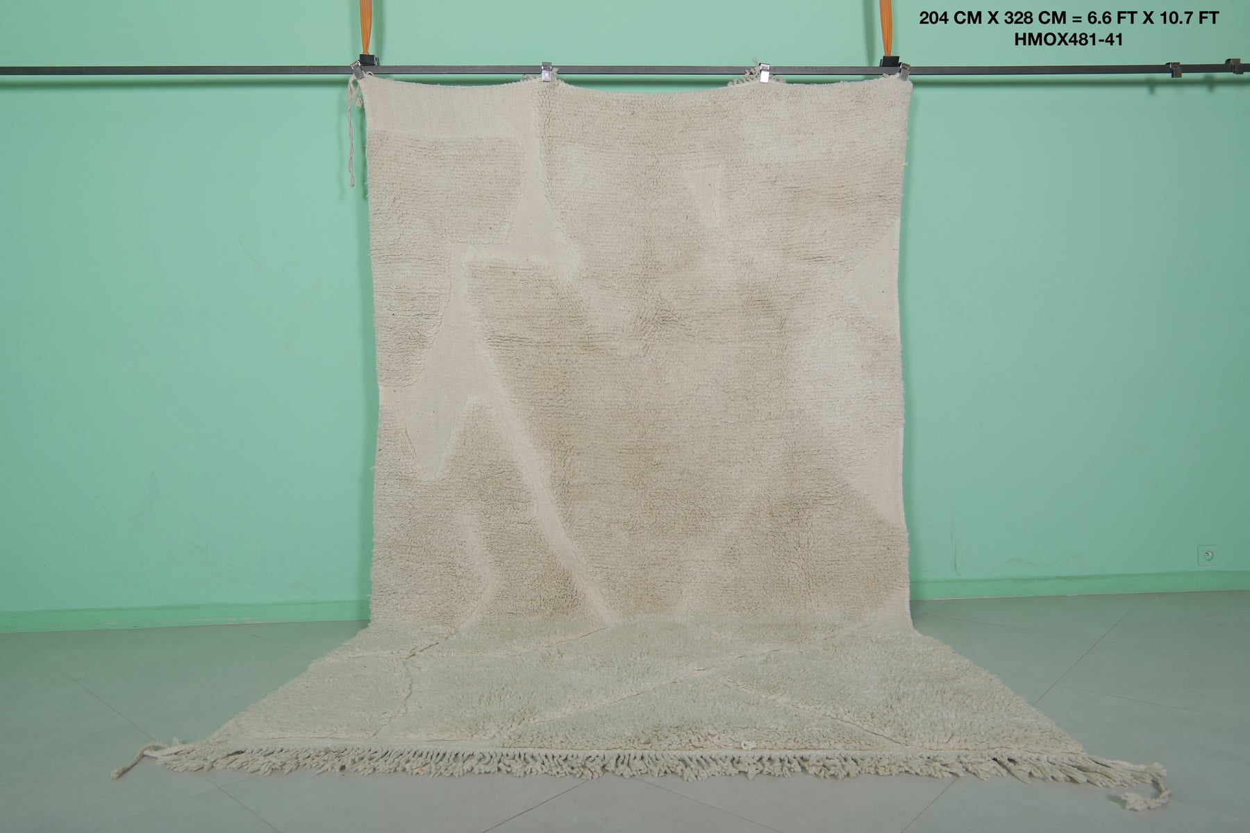 Elevate your space with this authentic Beni Ourain Moroccan Rug, sized at 6.6 x 10.7 feet (204 CM x 328 CM). Featuring a timeless texture and minimalist design, this handmade rug is a stunning statement piece.