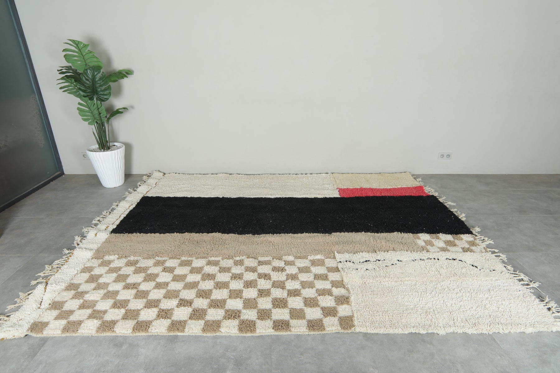 Bold Moroccan rug - Checkered & abstract modern wool rug - 7.8 ft x 10.4 ft