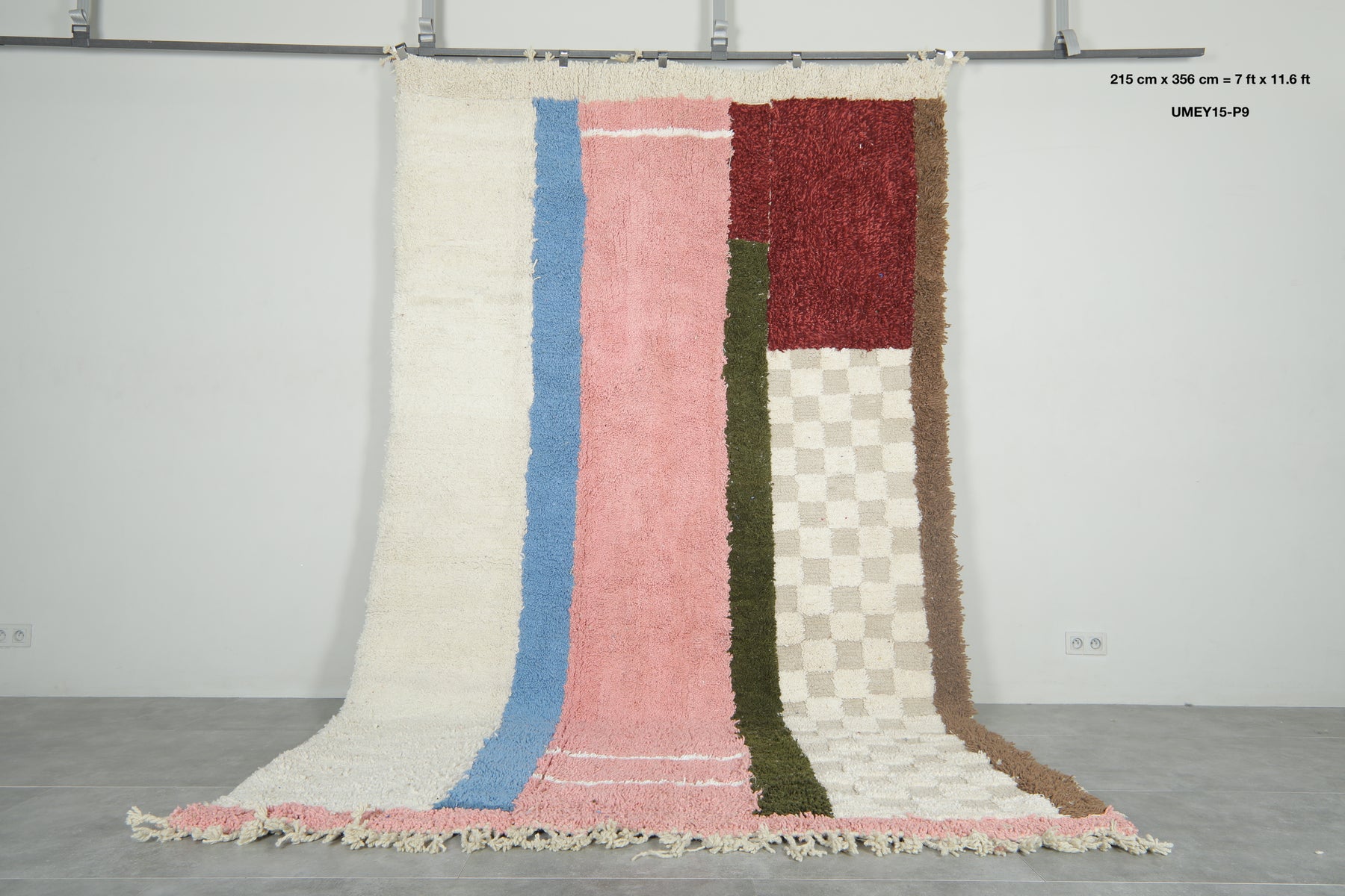 Color block Moroccan rug - Wool handmade modern style - 7 ft x 11.6 f