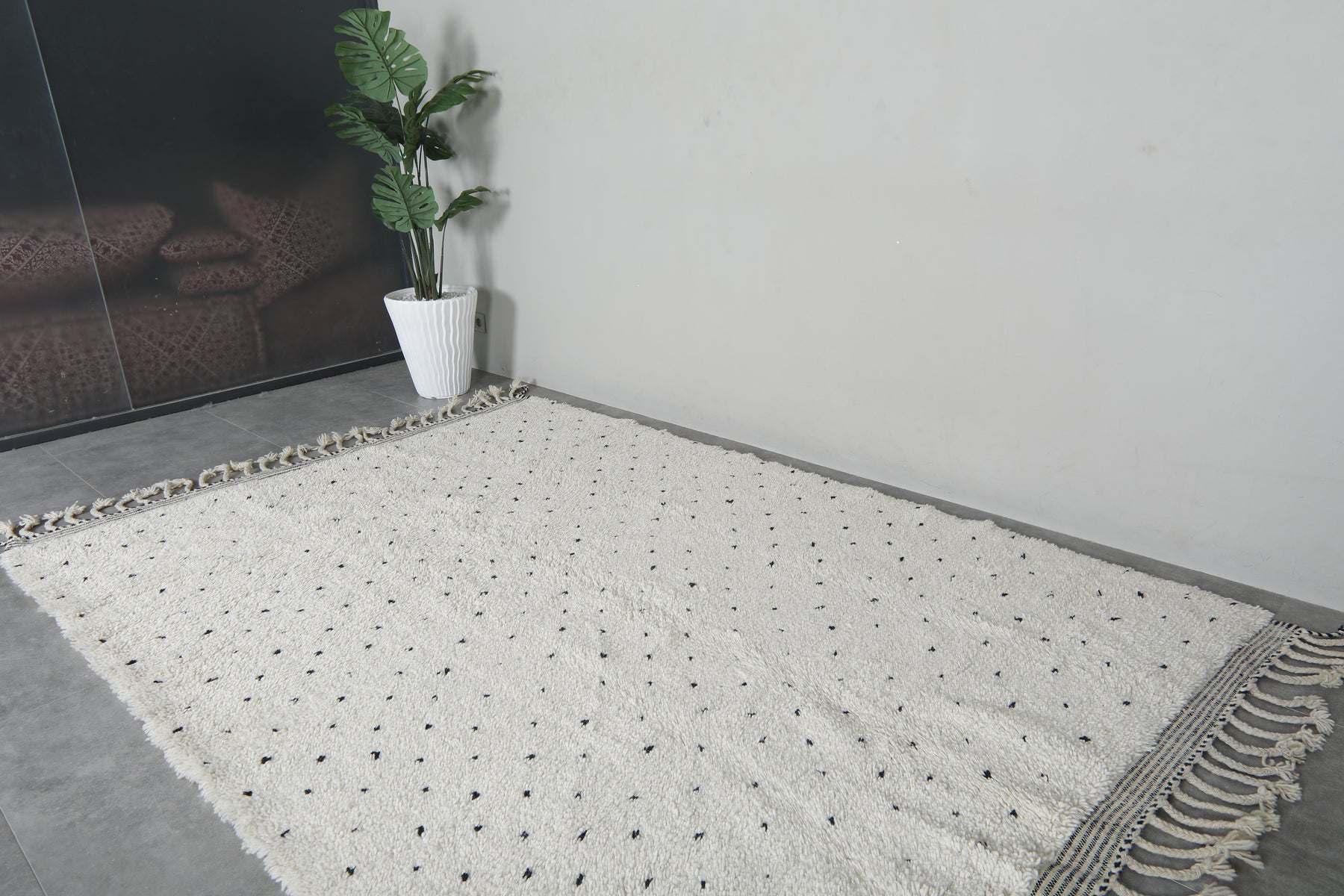 Dots beni ourain rug 6.3 x 9.1 ft – Handmade Moroccan wool carpet