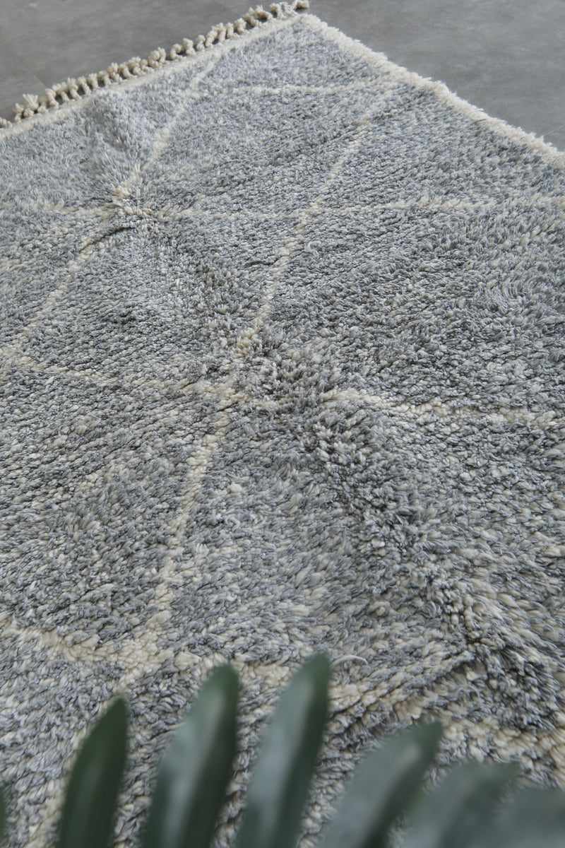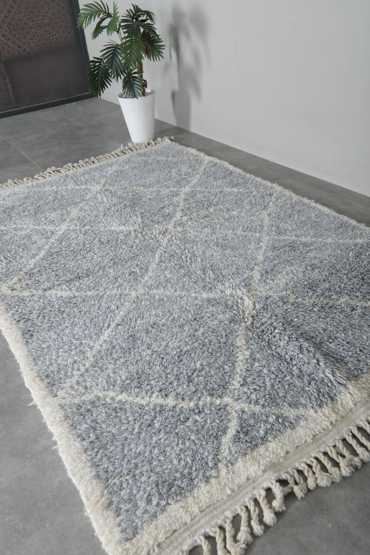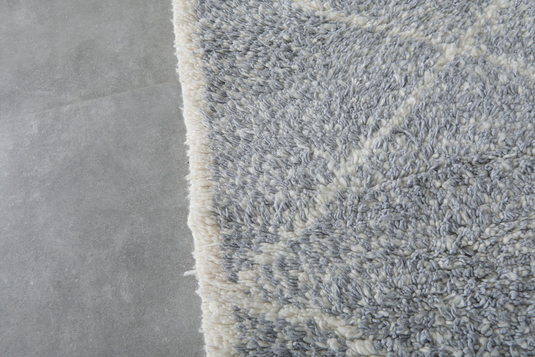 Enhance your home with this Hand-Knotted Moroccan Wool Rug, sized at 5 x 7.8 feet (153 CM x 238 CM). Featuring a timeless diamond pattern in soft gray and ivory, this plush, high-quality rug blends traditional Moroccan craftsmanship with modern elegance.