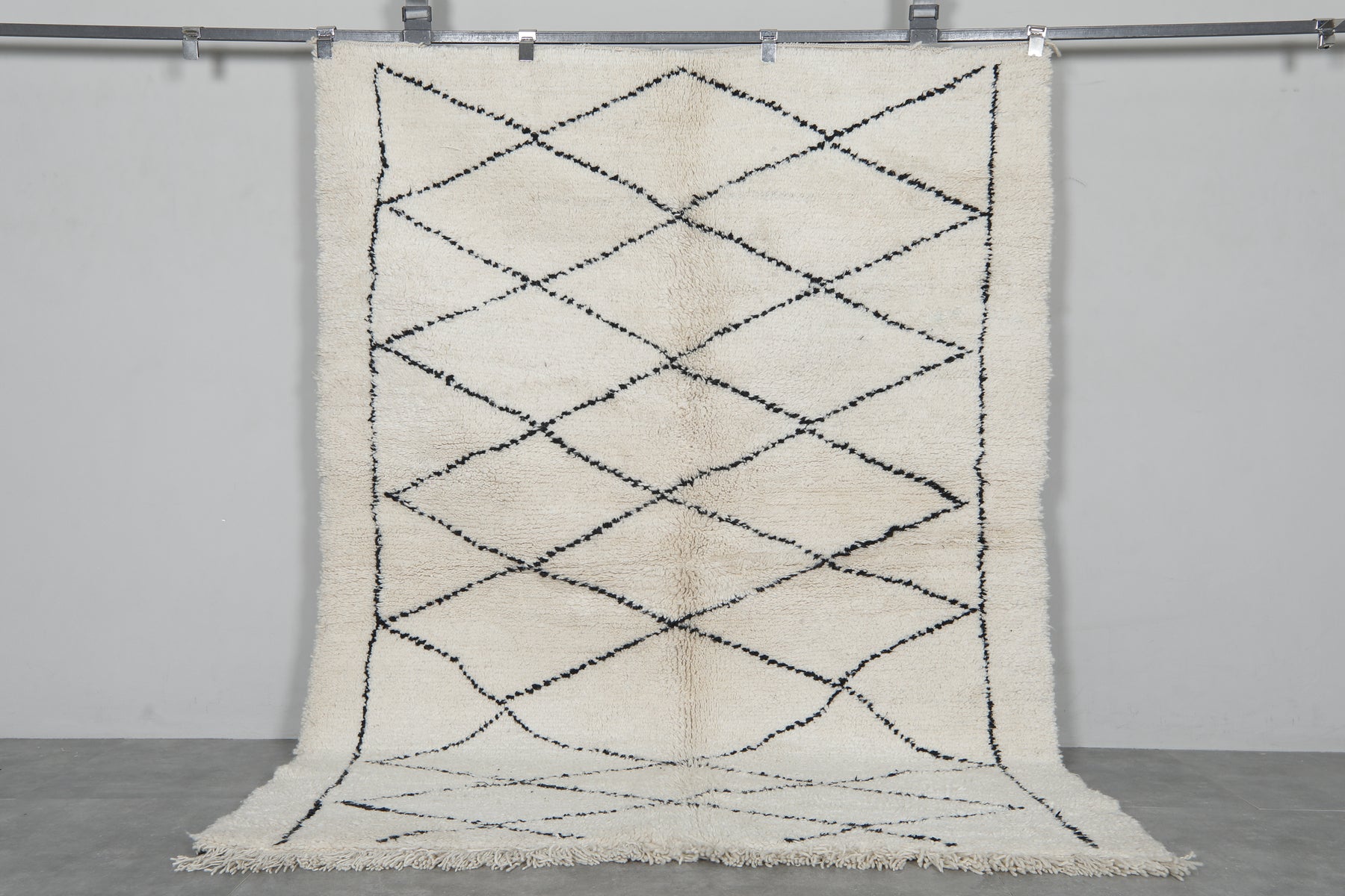 Introduce timeless elegance and warmth to your space with our Handwoven Moroccan Beni Ourain Rug. Crafted from soft wool, this 5.2 x 7.2 FT Berber rug features a classic diamond trellis pattern, adding a touch of luxury to any living area. Elevate your home décor with this exquisite Moroccan craftsmanship.