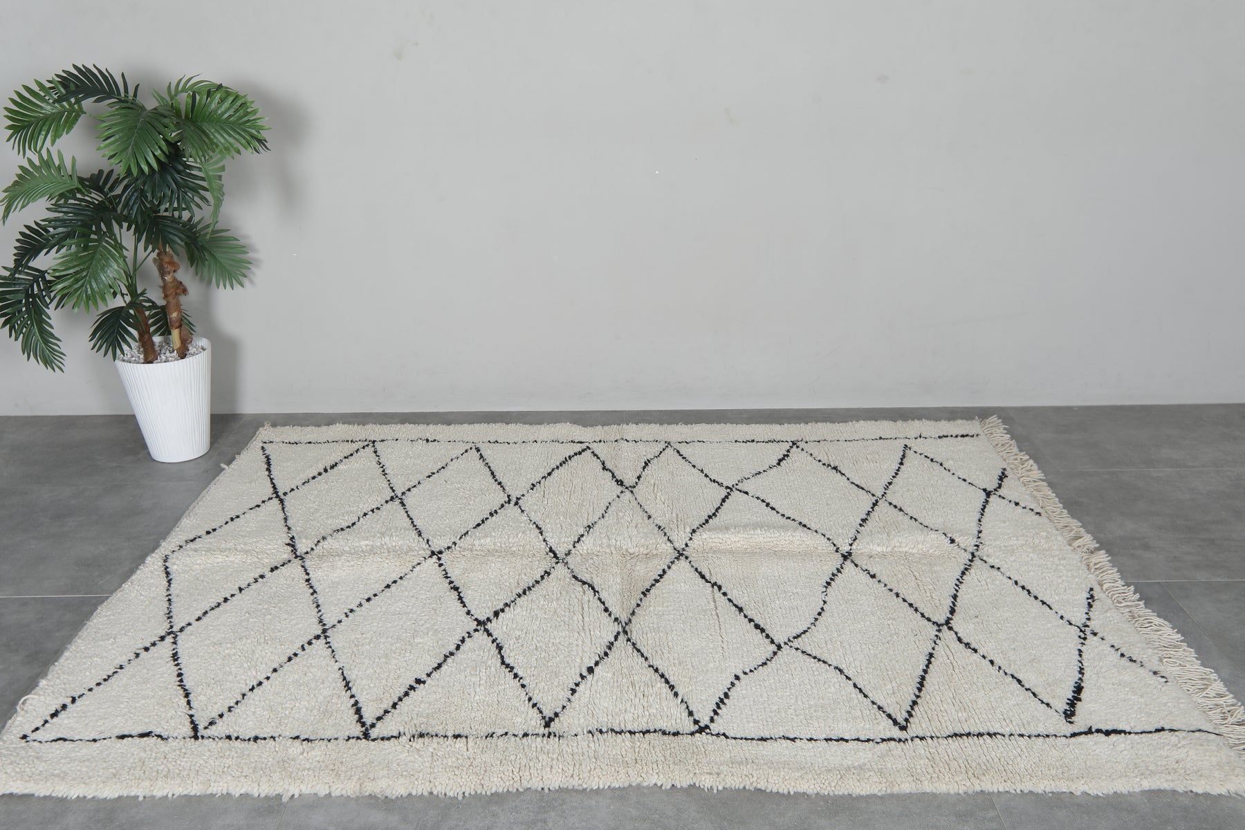 Handwoven Moroccan beni ourain rug - 5.2 x 7.2 FT | Berber wool carpet