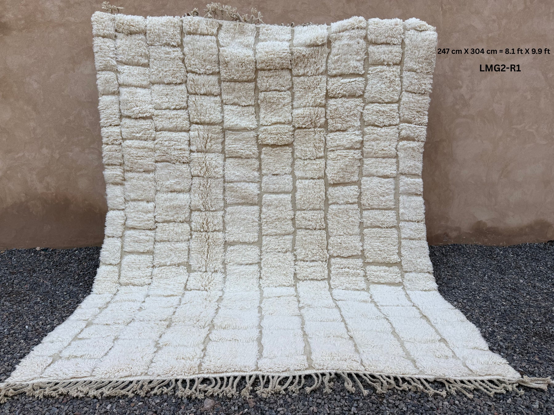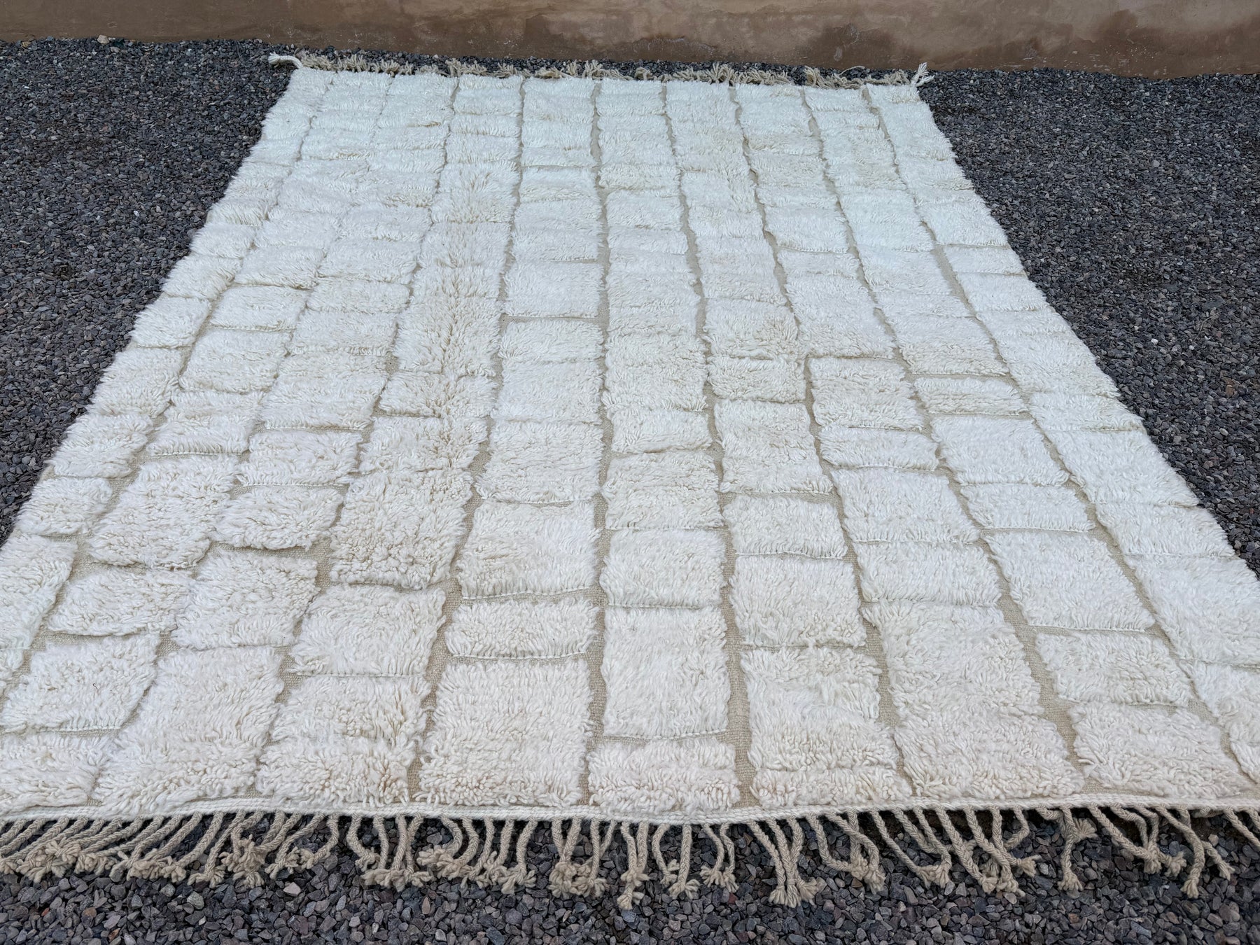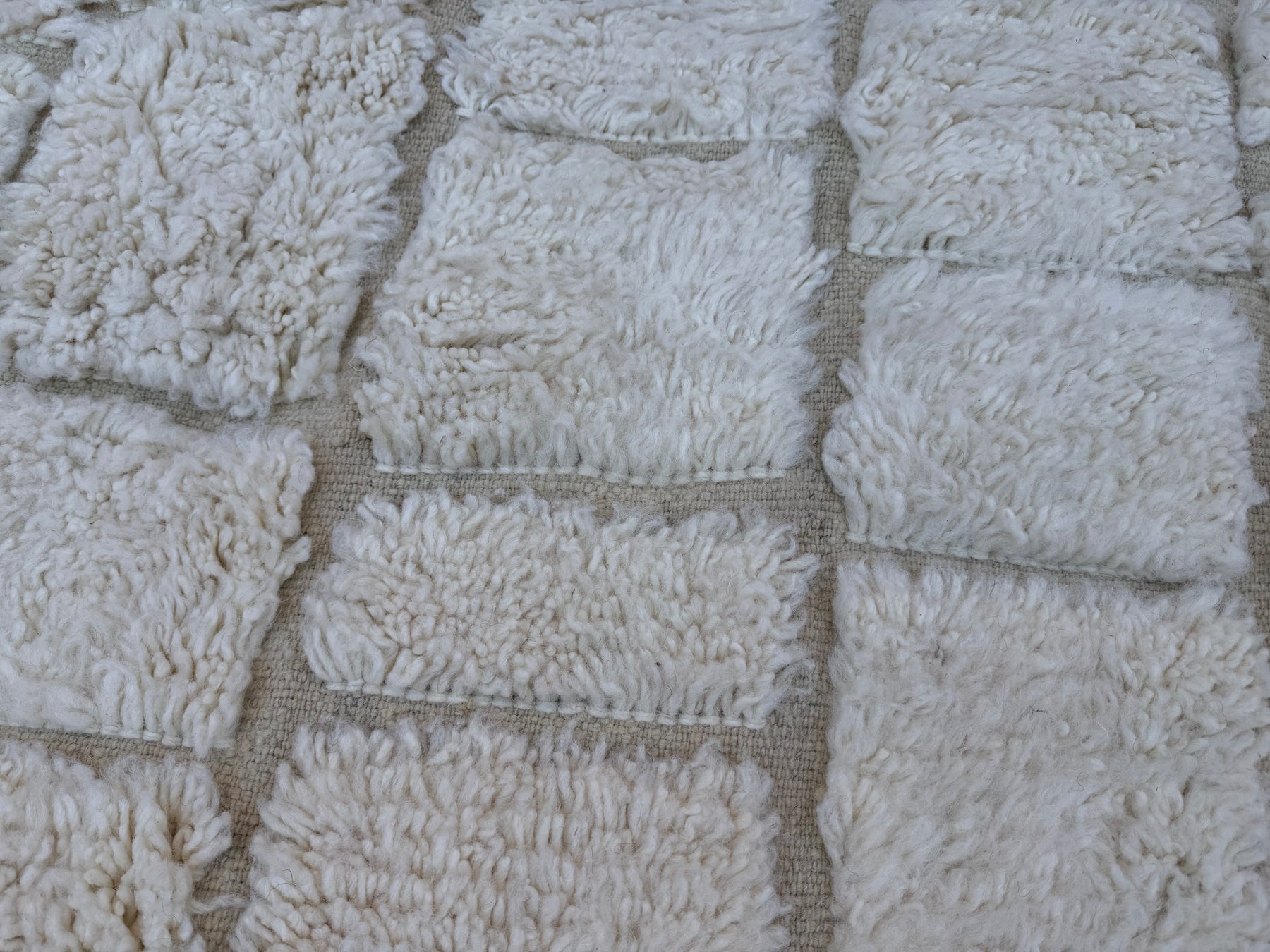 Embrace minimalism with warmth through this stunning ivory Moroccan rug, featuring a raised grid texture that adds subtle dimension and artisan charm. Expertly handwoven from 100% natural wool by Berber artisans in the Atlas Mountains, this rug combines soft luxury with timeless design.