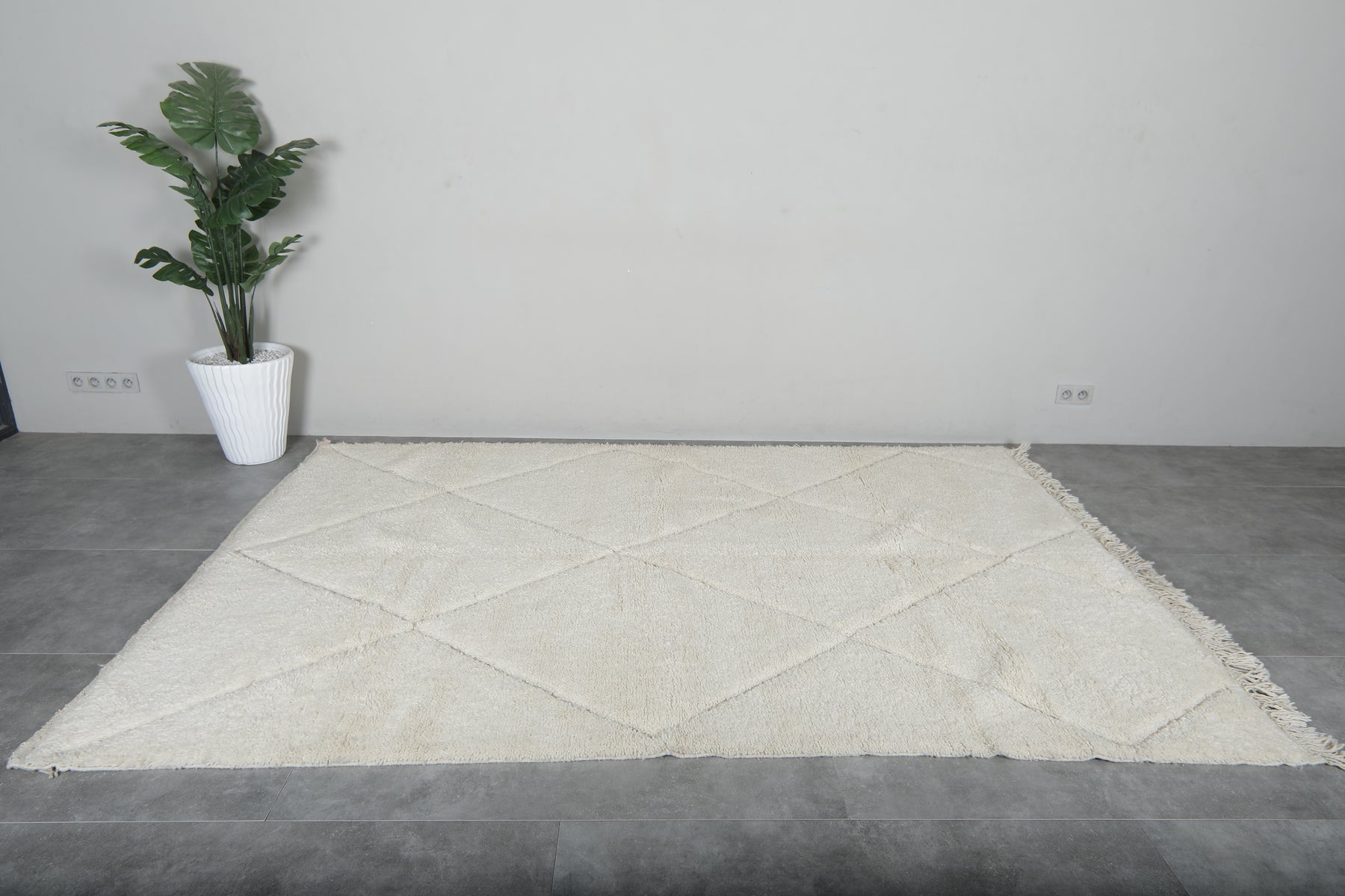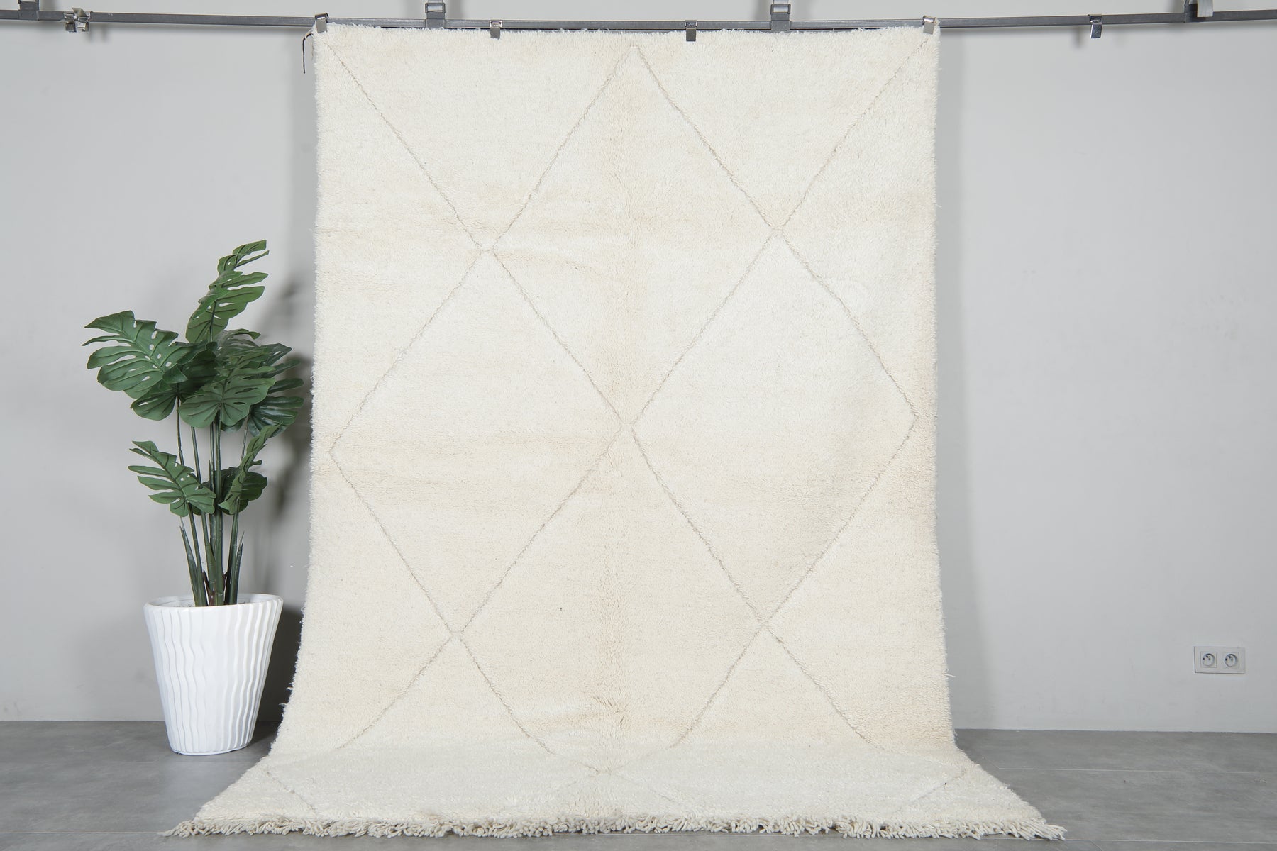 White handmade wool rug 6.5 X 9.7 FT beni ourain rug