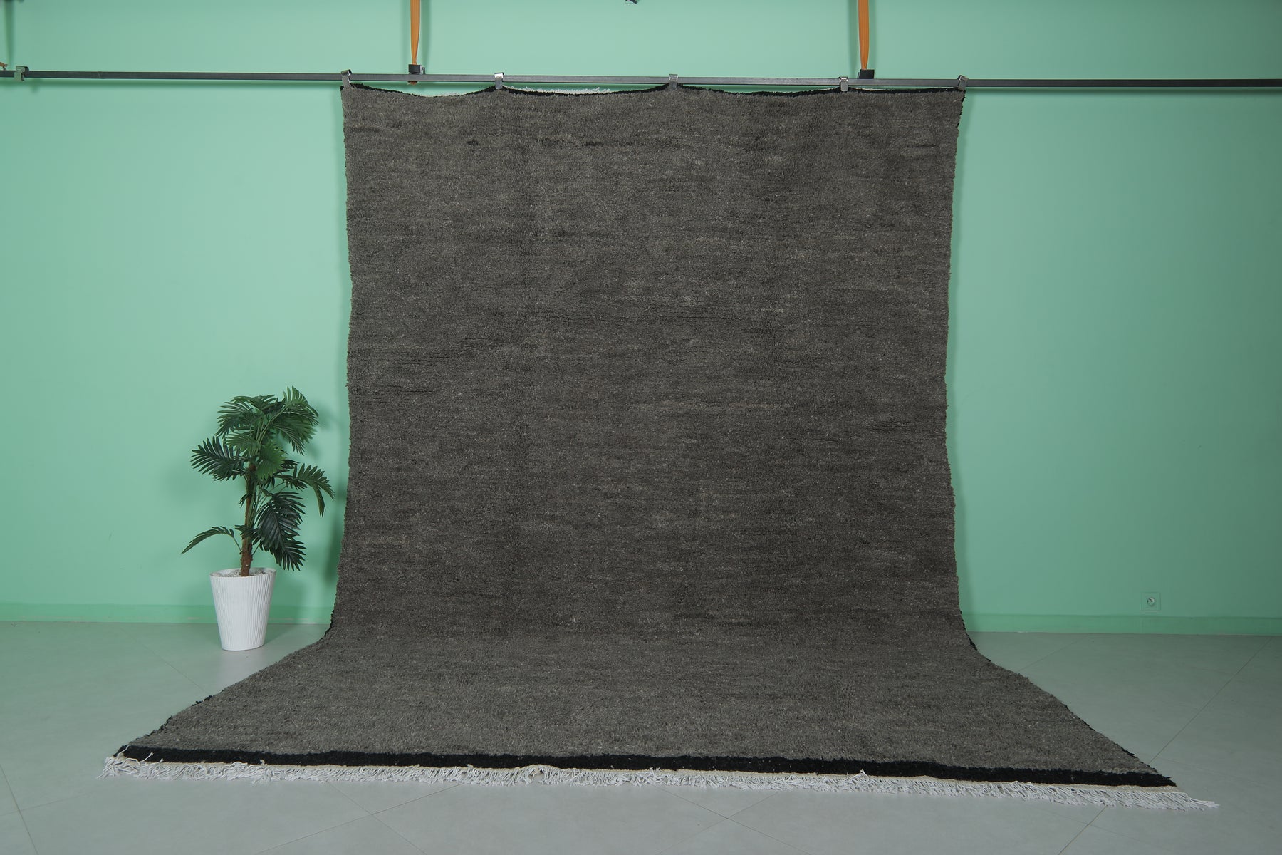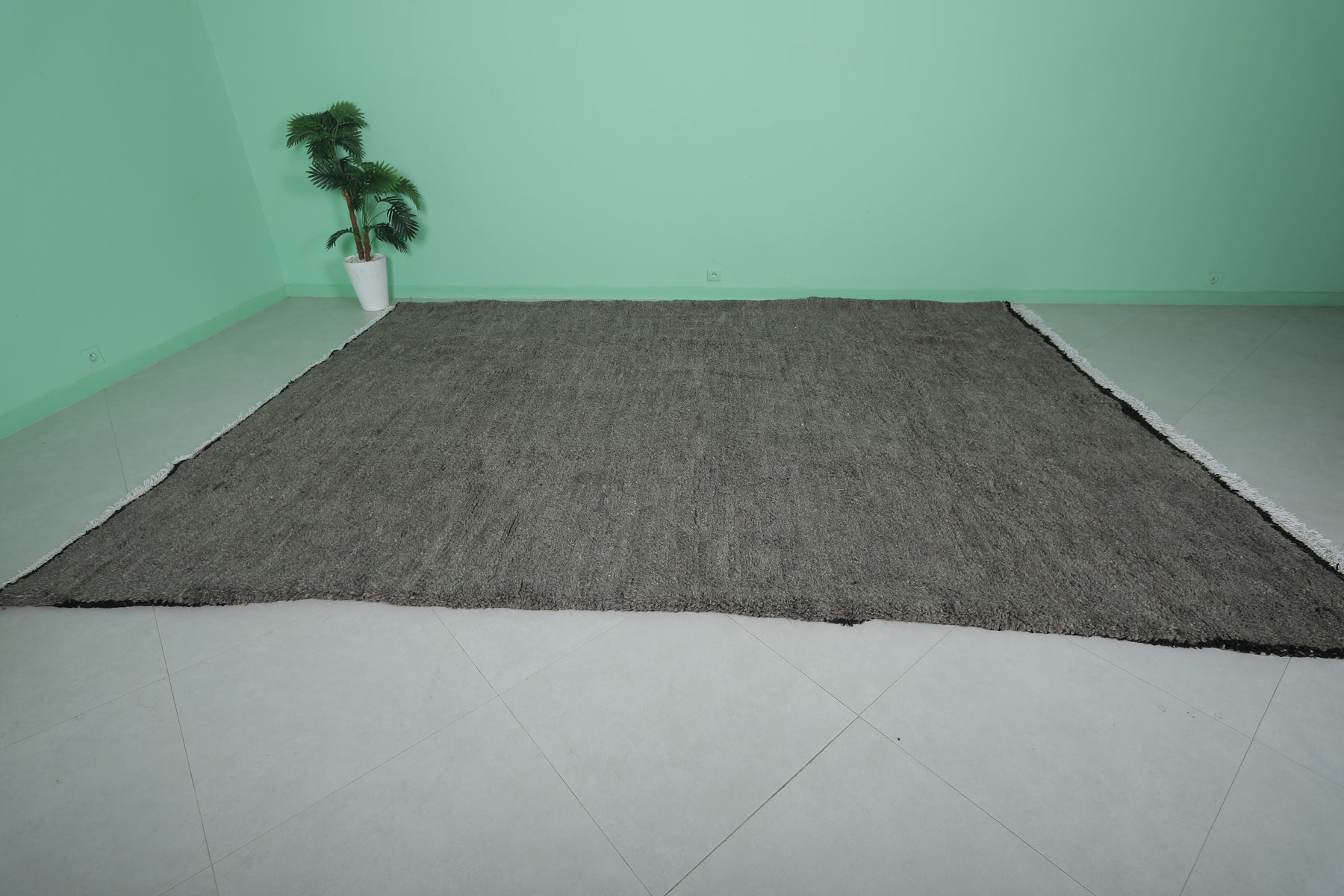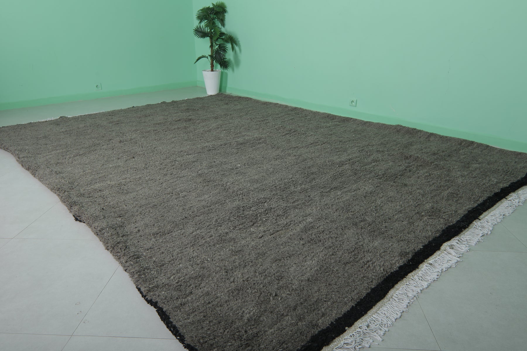 Enhance your space with this Dark Beni Ourain Moroccan Rug, sized at 9.3 x 12.8 feet (285 CM x 393 CM). Handcrafted from 100% natural wool, this luxurious piece features a deep, rich tone that adds warmth and sophistication to any room. Its plush texture and minimalist aesthetic make it a versatile addition to contemporary and bohemian interiors alike. Combining traditional Berber craftsmanship with modern elegance, this rug offers both exceptional comfort and timeless style.