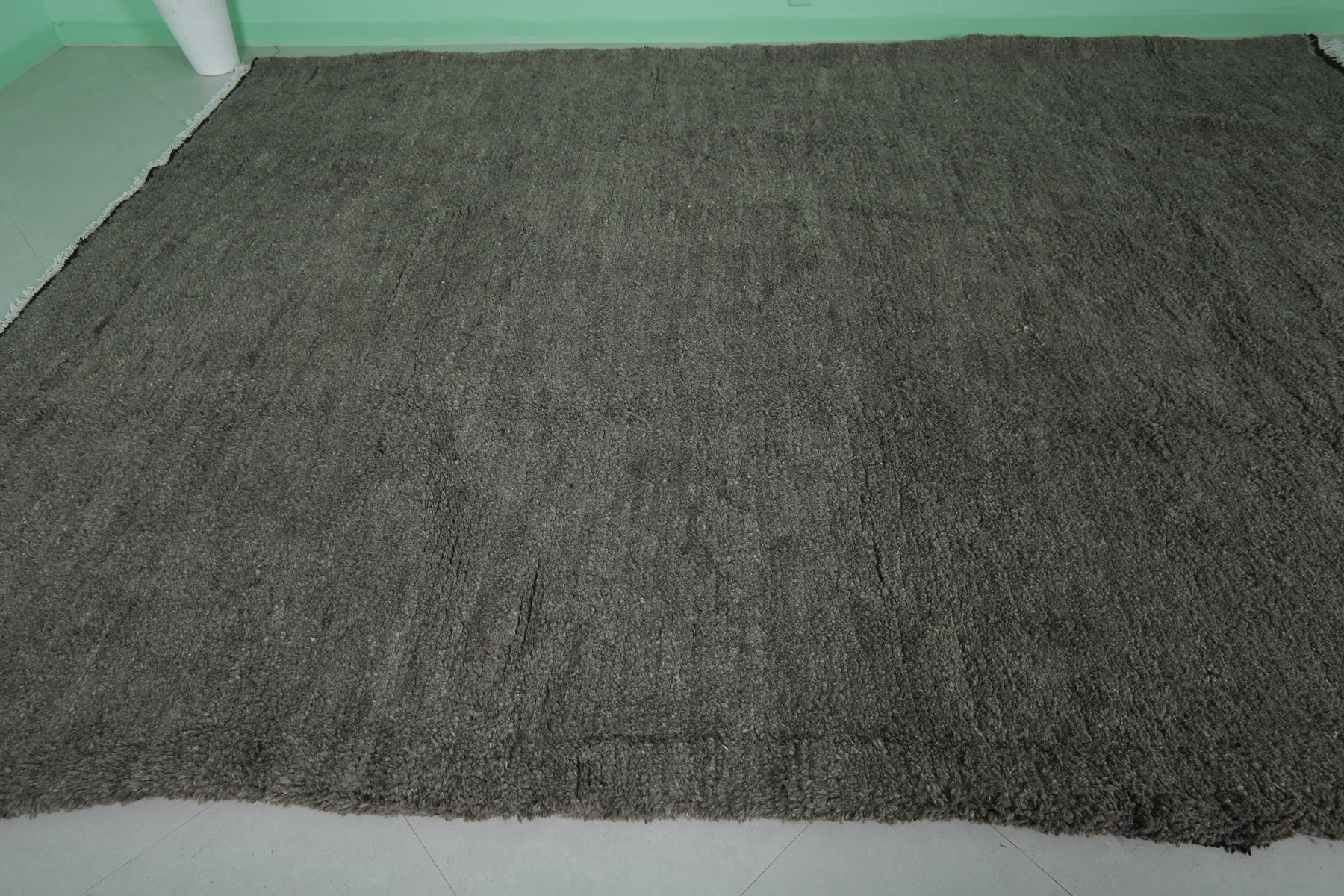 A bold dark-toned wool rug with subtle texture, perfect for adding depth and warmth to large living areas, bedrooms, or lounges.