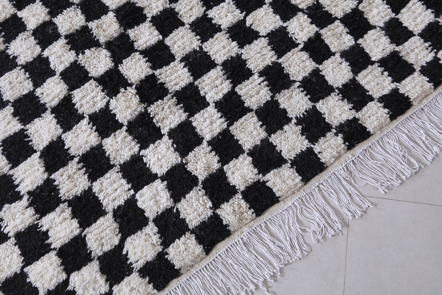 Add bold style to your space with this handmade checkered Moroccan rug, featuring a striking black and white checkerboard pattern. Crafted from premium wool, this high-pile rug combines traditional Berber craftsmanship with a modern graphic twist. Perfect for contemporary, eclectic, or monochrome interiors, it brings texture, warmth, and a statement look to living rooms, bedrooms, or creative workspaces. Ethically made and designed to last, this rug is a timeless centerpiece for any home.