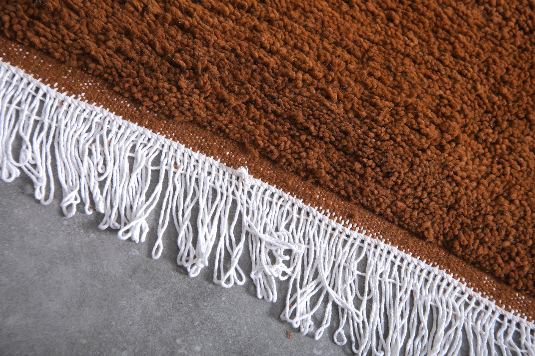Add warmth and grounded elegance to your interior with this Custom Size Beni Ourain Moroccan Rug in rich brown. Handwoven from premium natural wool, this rug delivers plush softness and natural texture, ideal for creating cozy, welcoming spaces. Its earthy tone and minimalist design make it a versatile foundation for both modern and traditional aesthetics.
