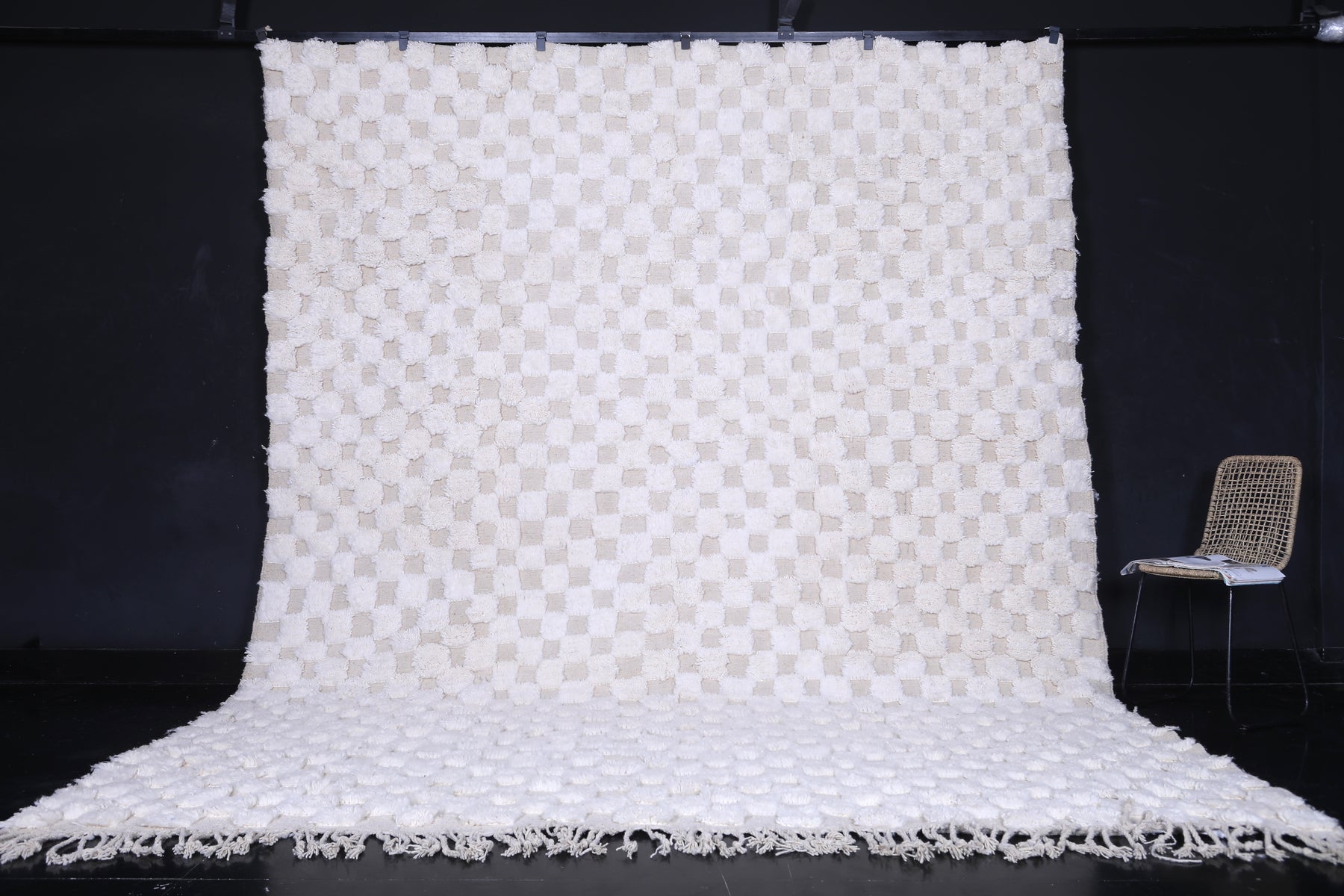 This checkered Beni Ourain rug blends traditional Moroccan charm with a soft, cozy texture—ideal for warm, inviting interiors.