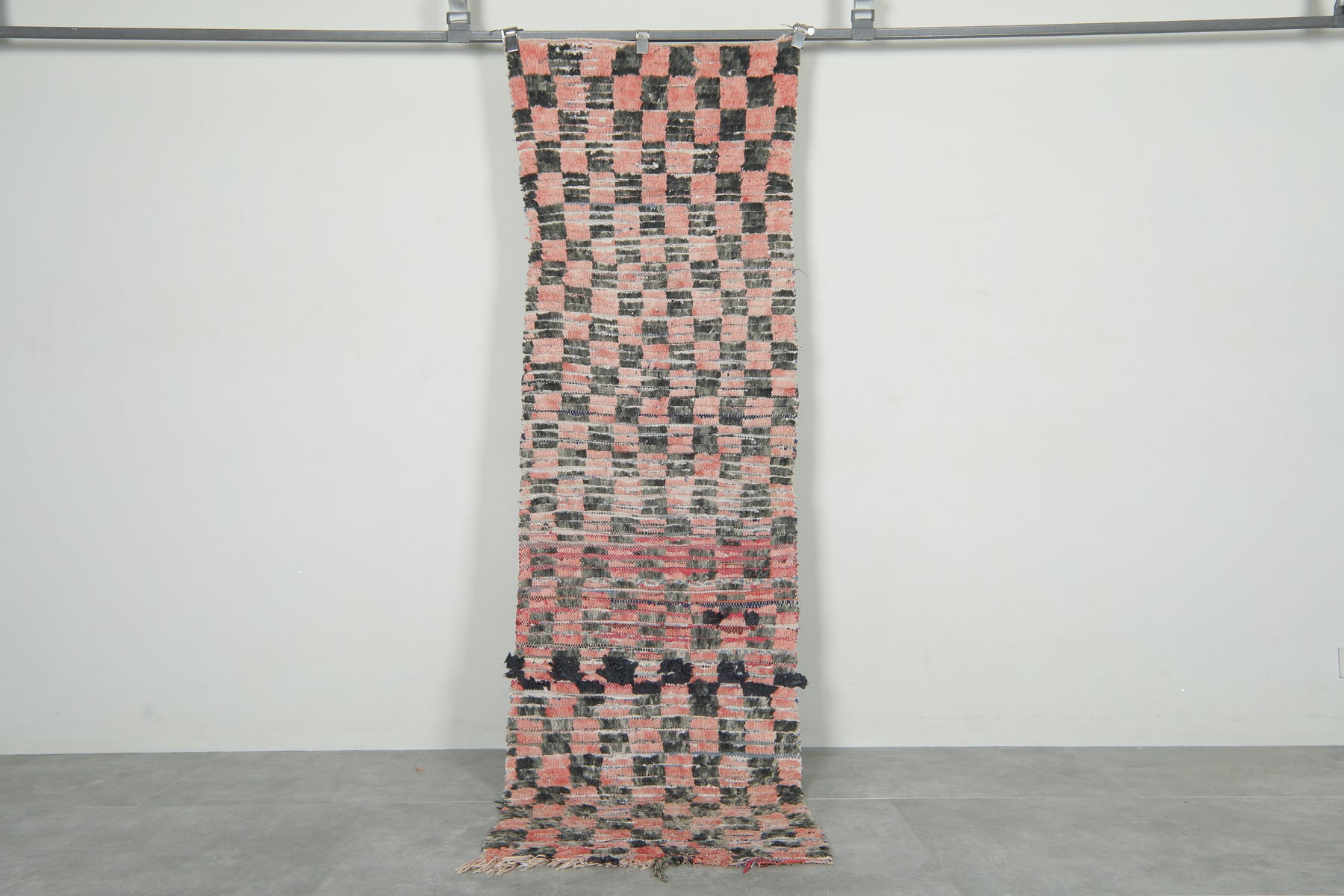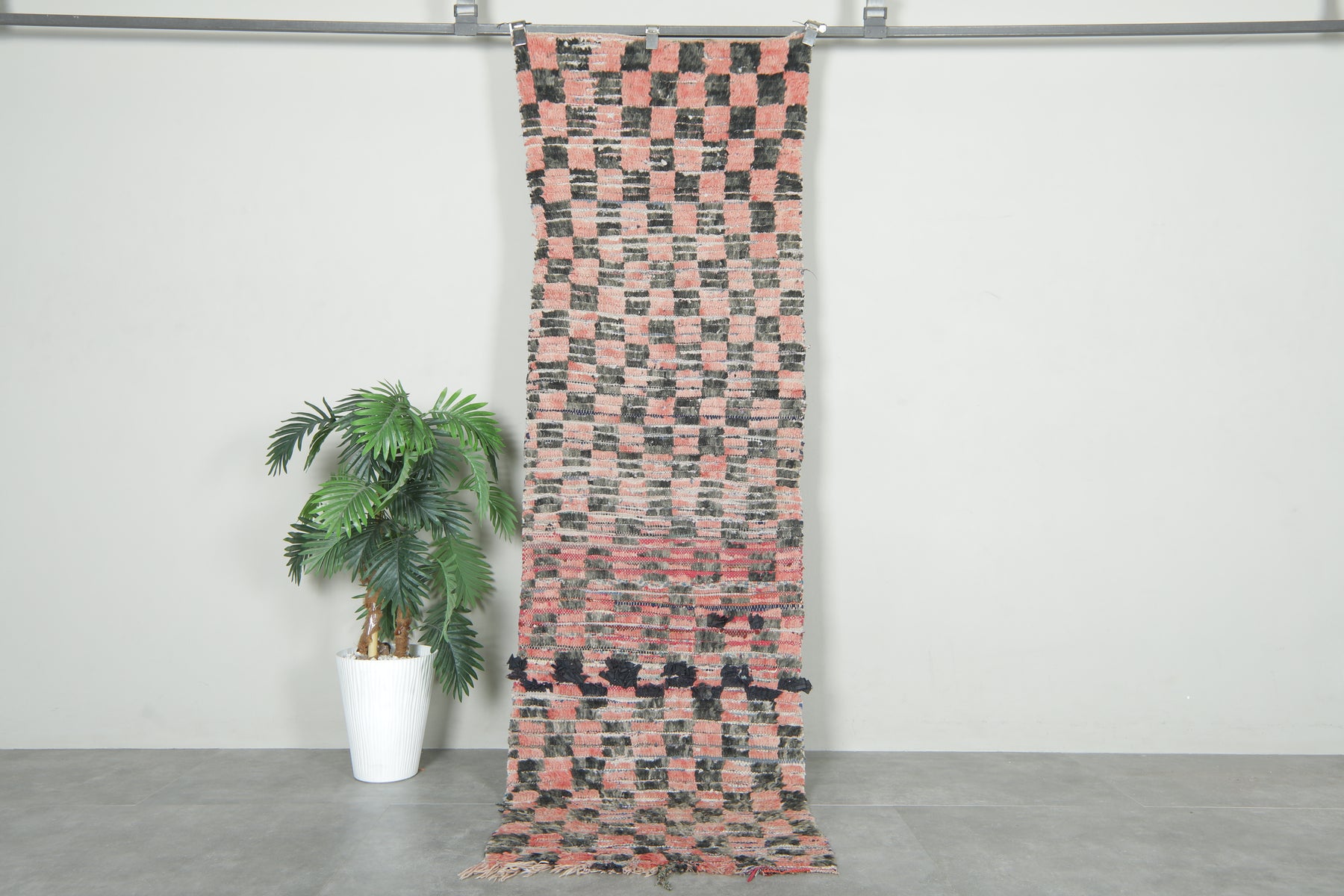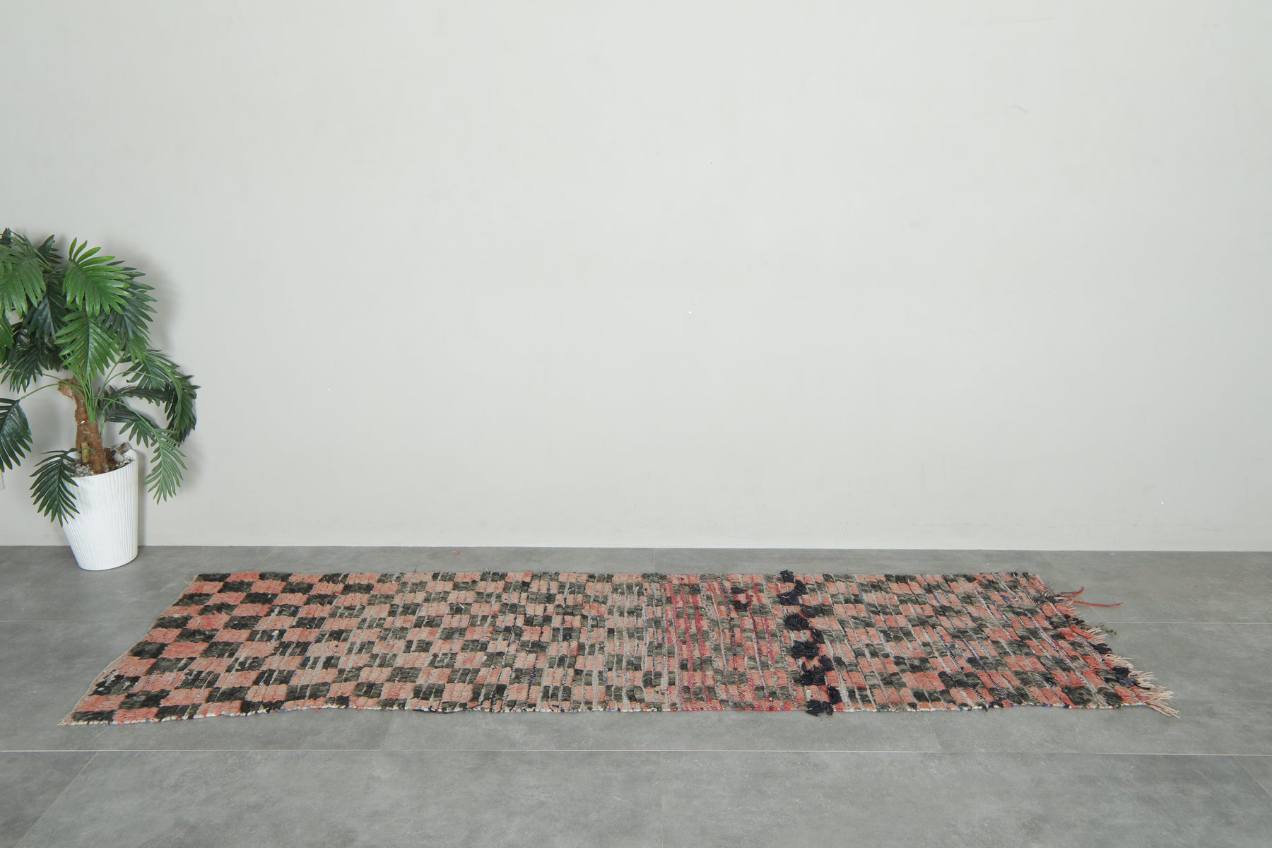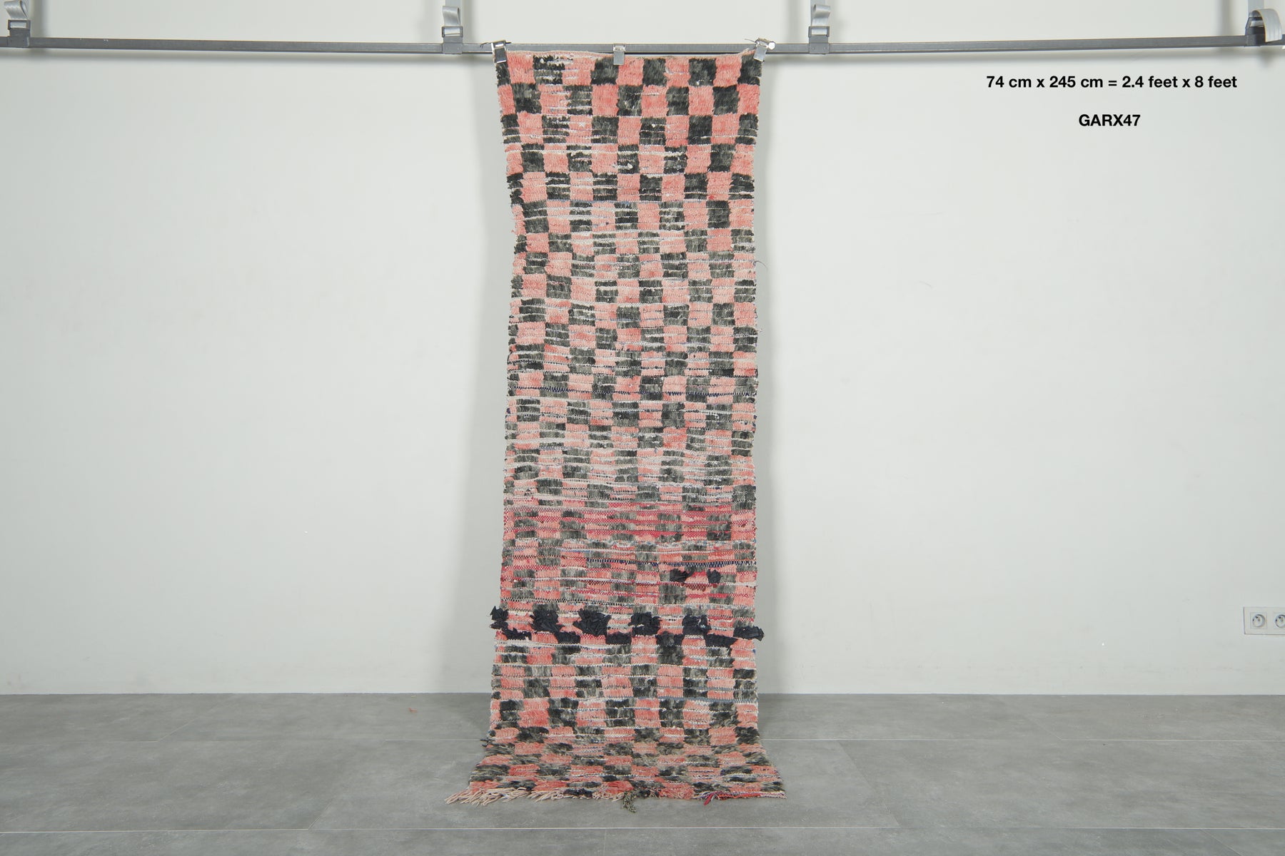 Checkered runne rug 2.4 ft x 8 ft - Handmade