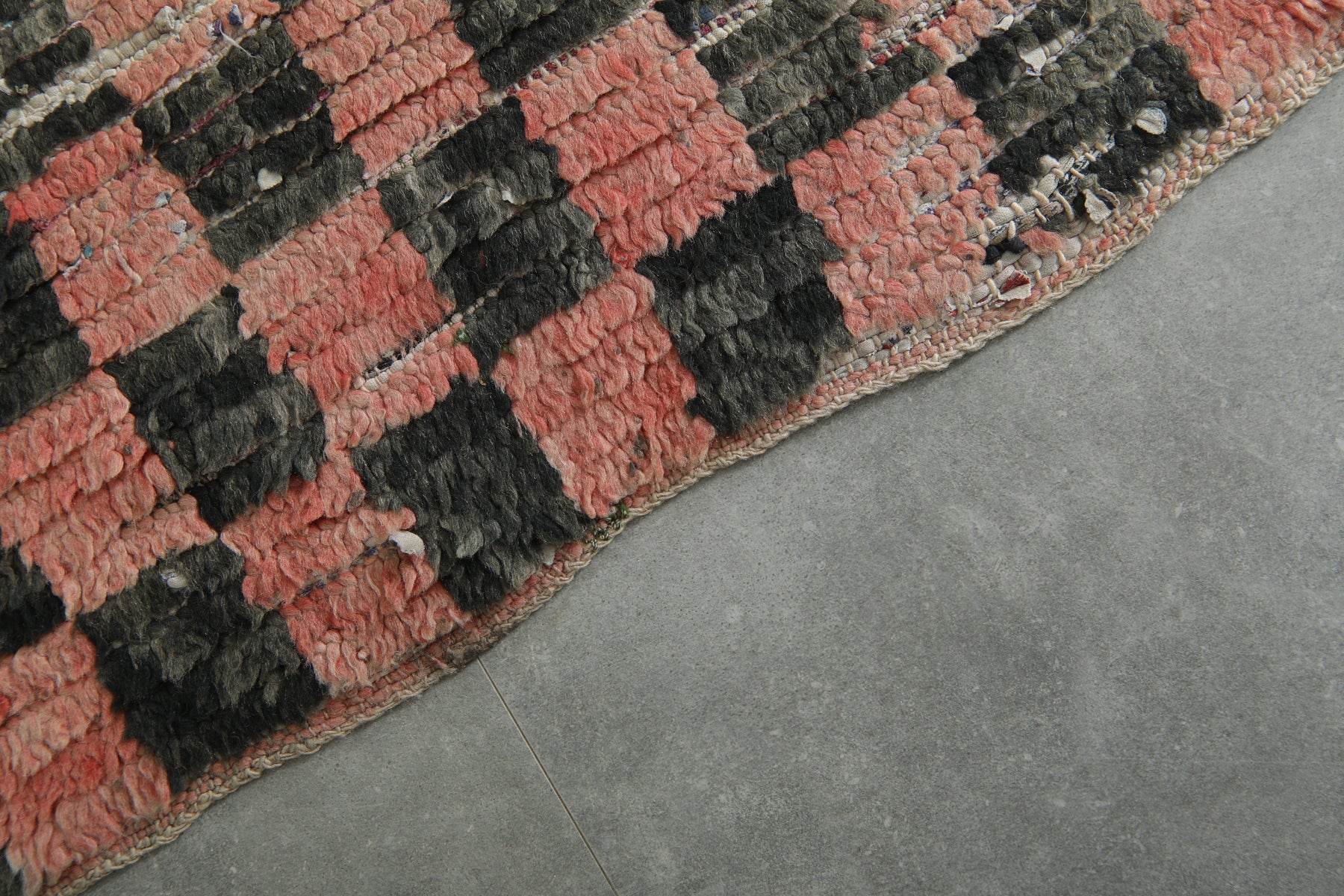 This checkered runner rug, measuring 2.4ft by 8 ft, is expertly handmade using high-quality wool. Its timeless pattern adds subtle sophistication while the durable wool construction ensures long-lasting comfort and resilience. Ideal for hallways or narrow spaces, it brings warmth and texture, enhancing any room with a refined touch rooted in traditional Moroccan craftsmanship.