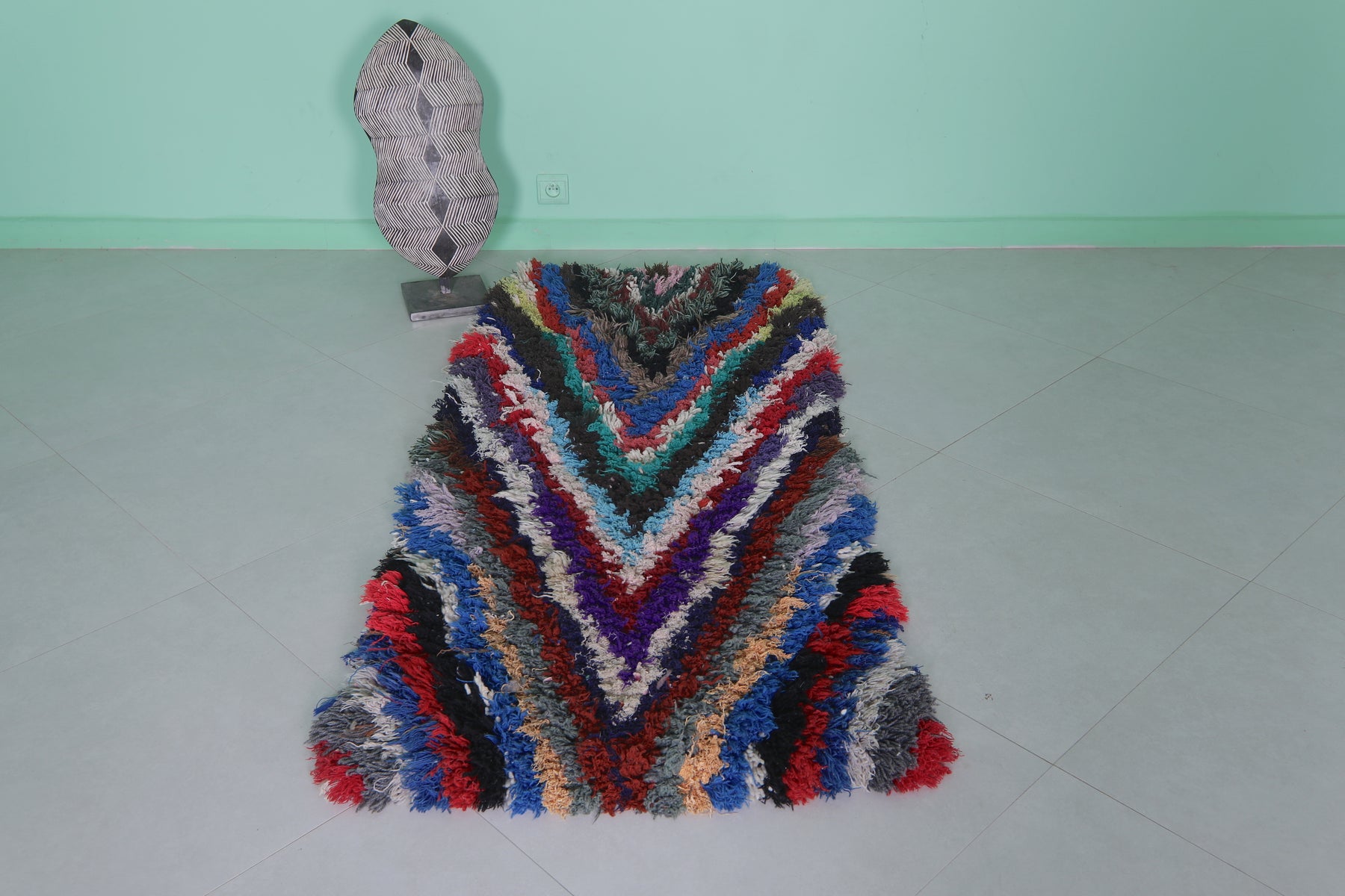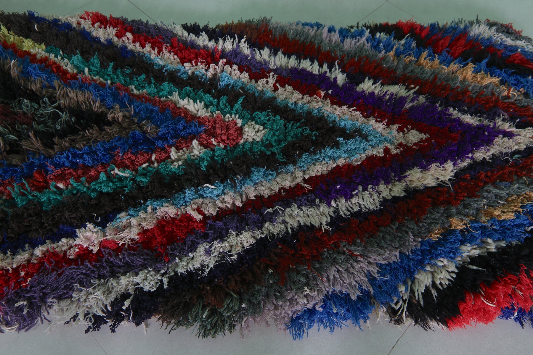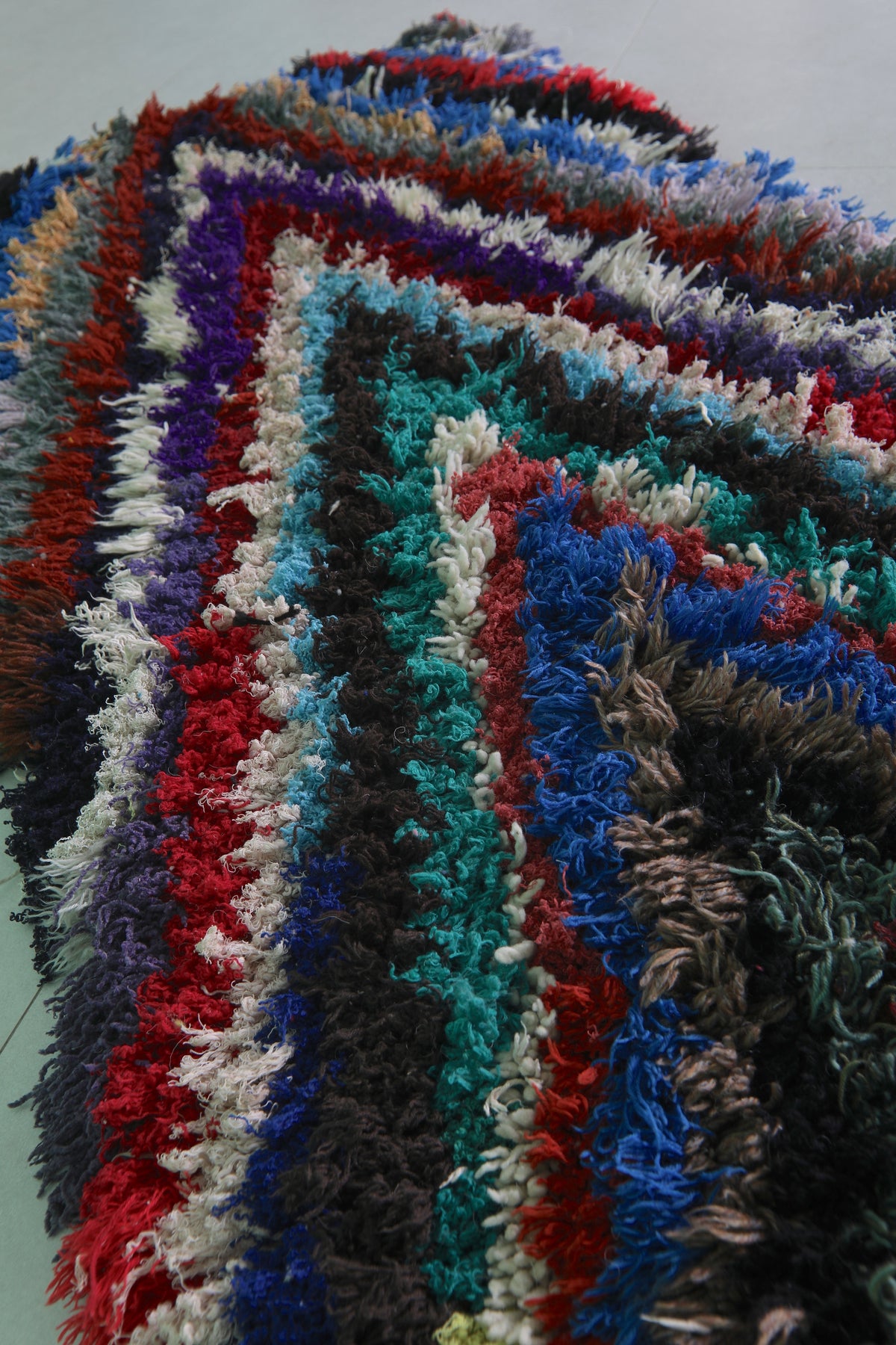 Colorful Moroccan boucherouite rug 2.4 X 5.6 Feet