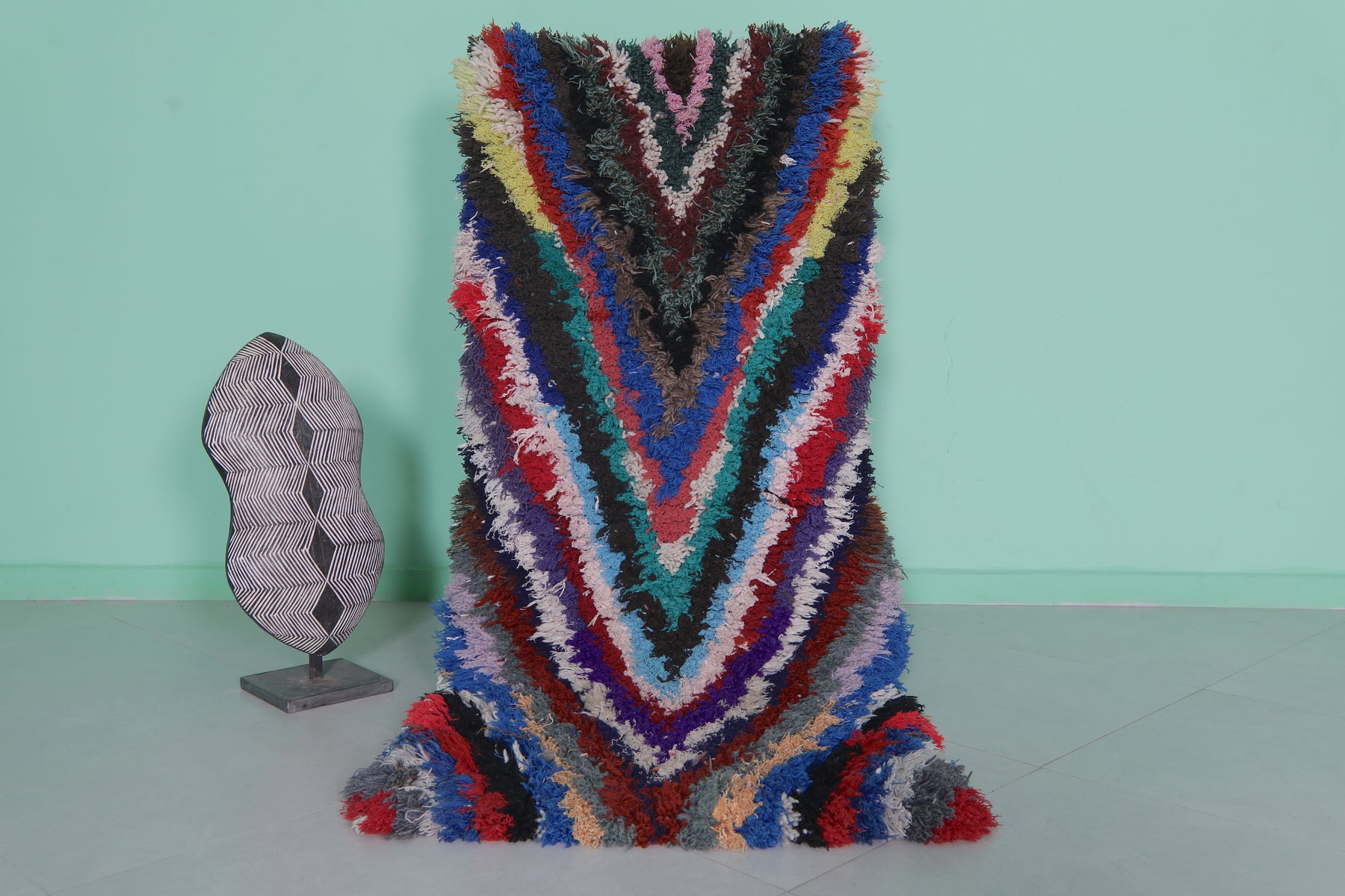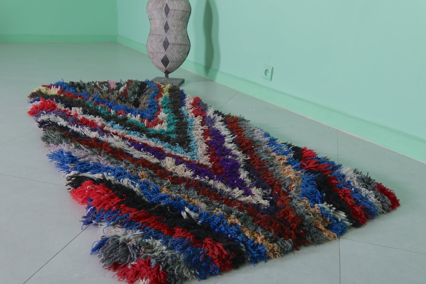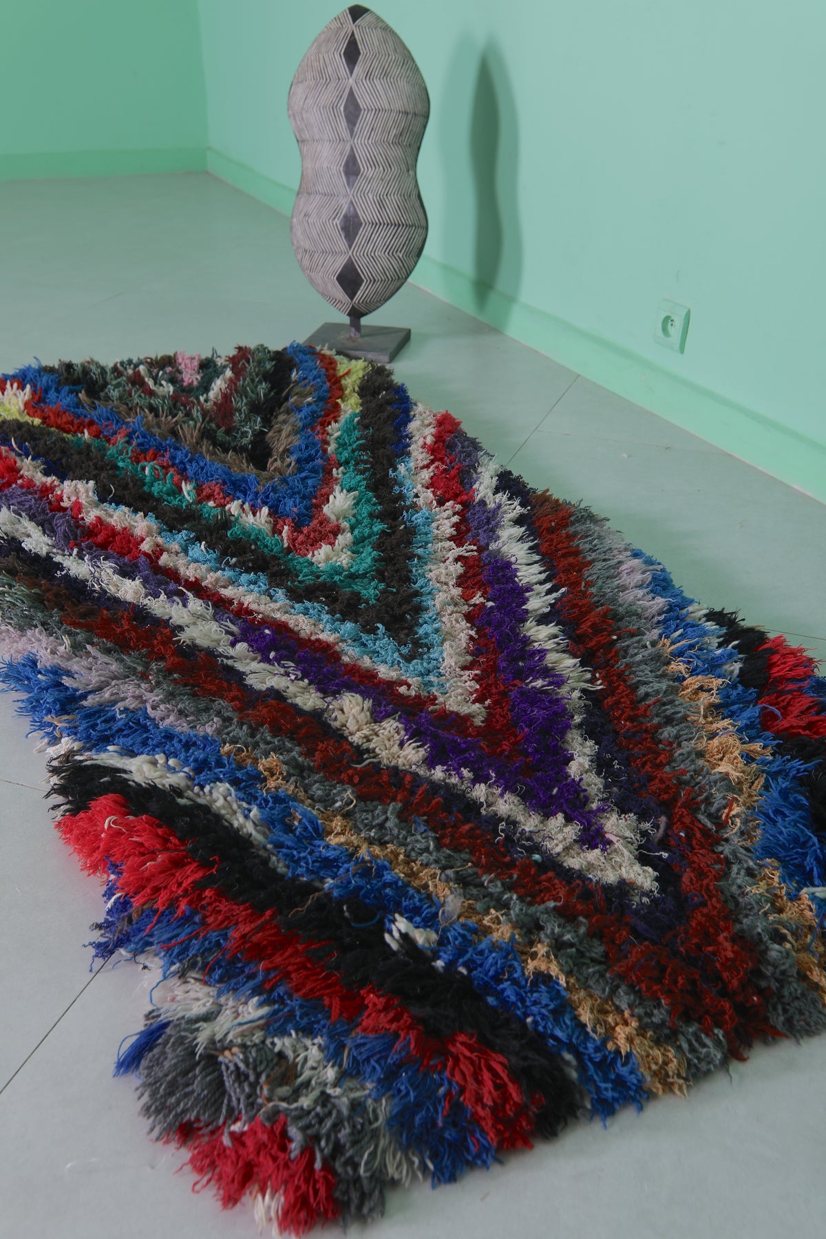 Colorful Moroccan boucherouite rug 2.4 X 5.6 Feet