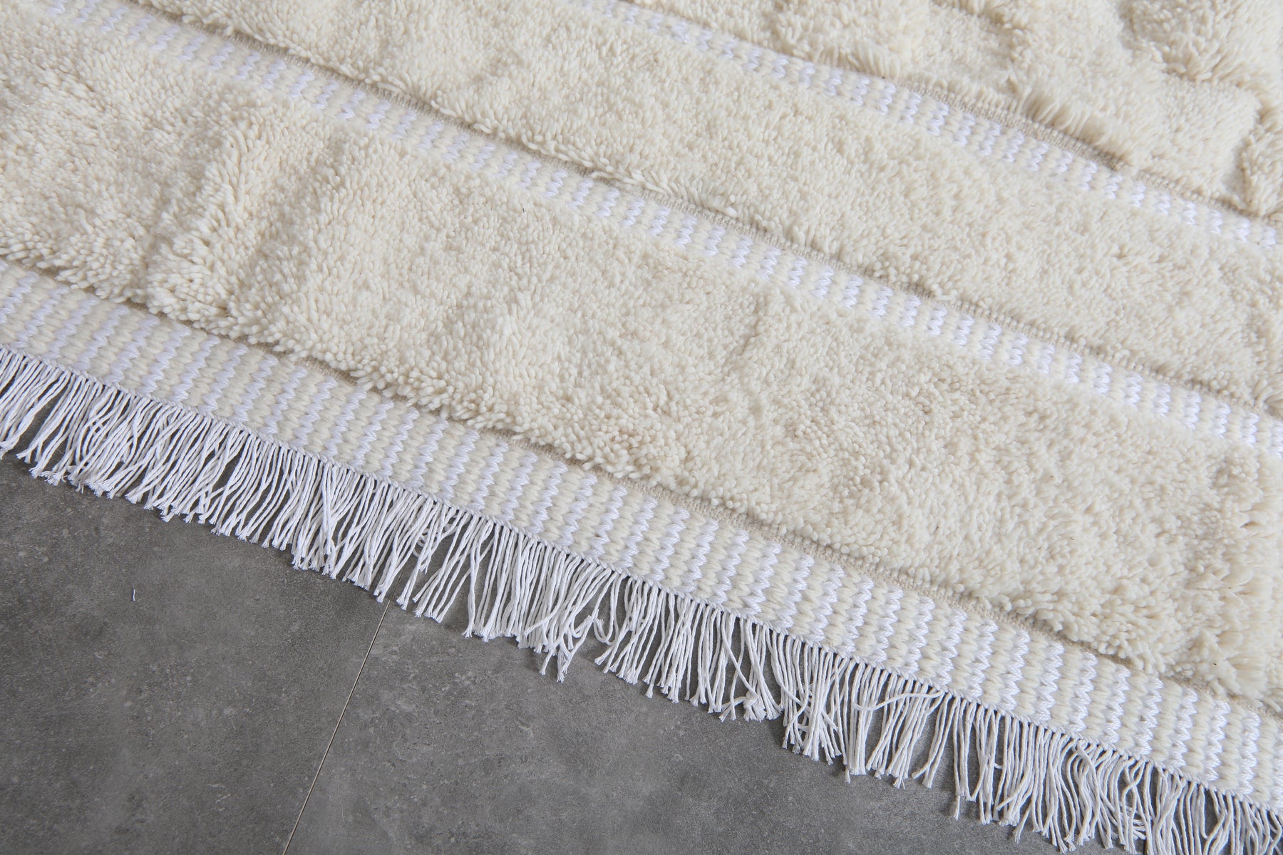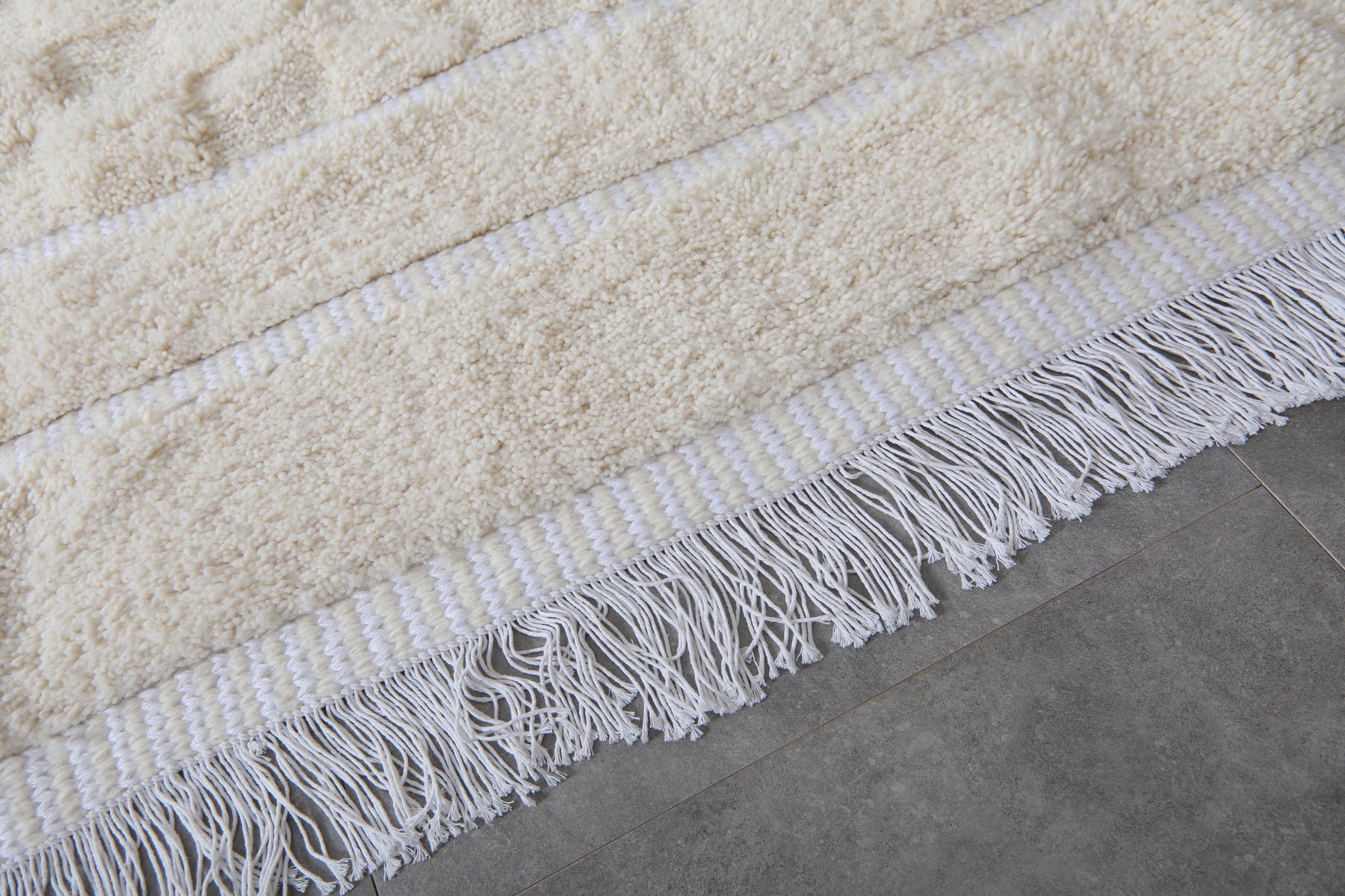 Cream Moroccan wool rug with white stripes - Custom size