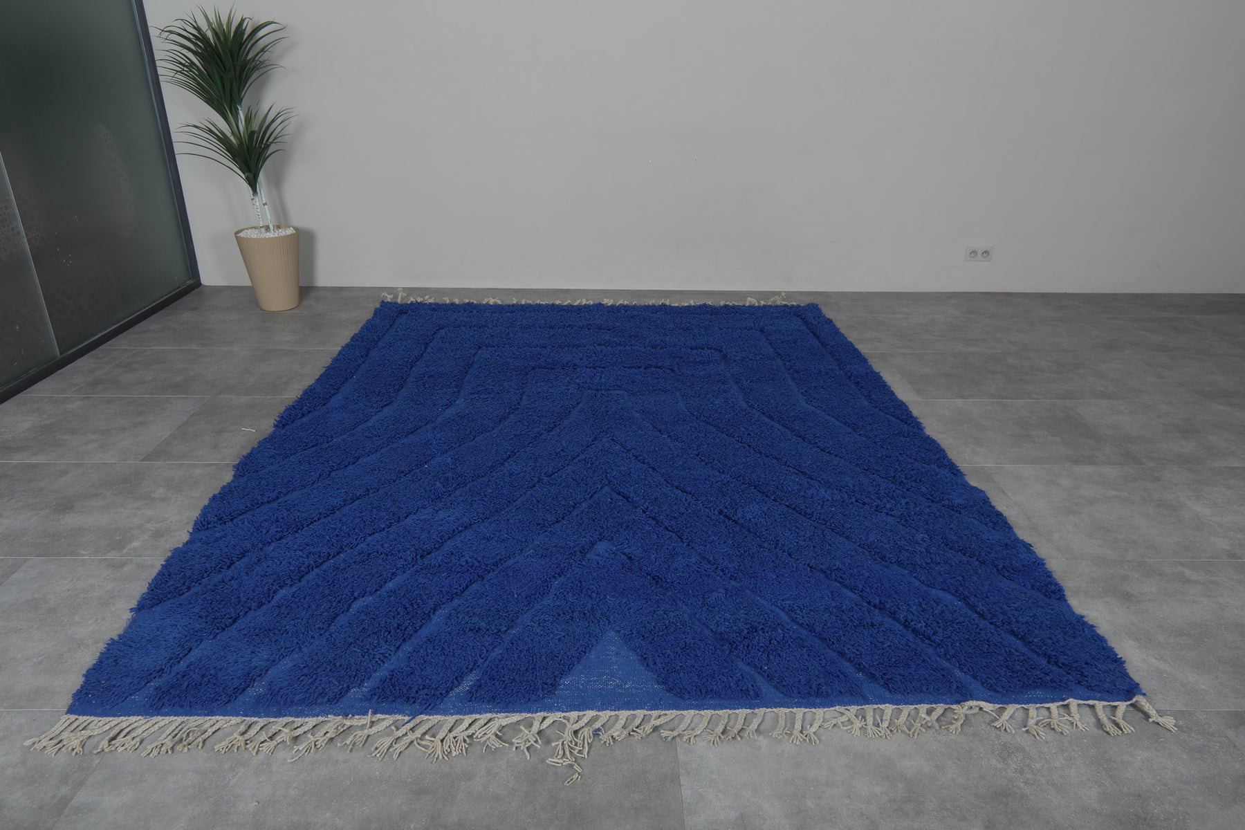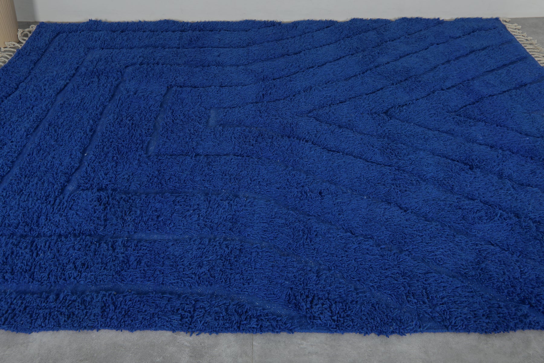 Wool Rug in Deep Royal Blue – Handwoven Abstract Arch Design - Wool Rug