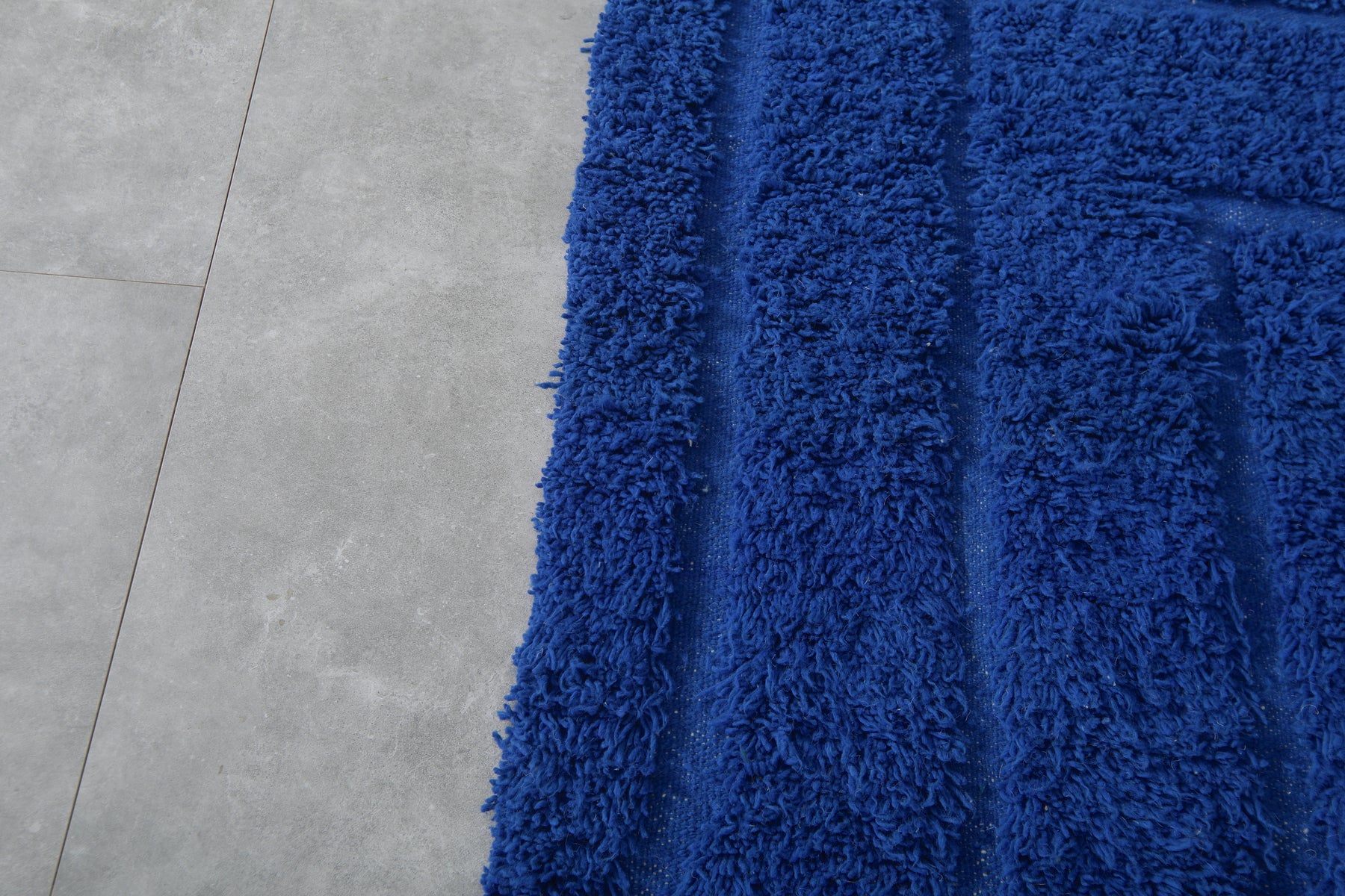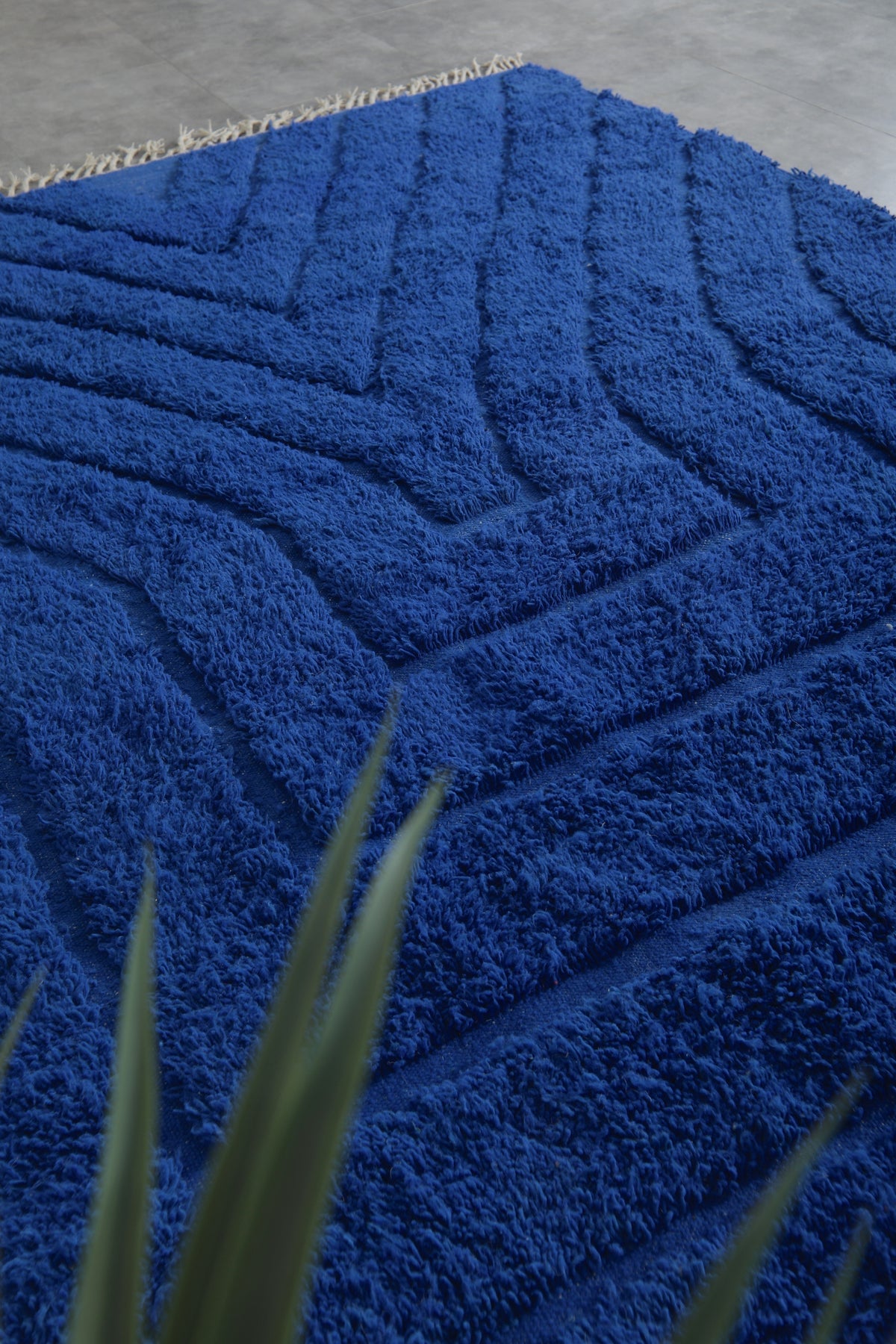 Make a bold statement with this luxurious handwoven wool rug in a stunning deep royal blue tone. The sculpted, concentric arch pattern adds a sense of depth and movement, transforming any room into a modern art-inspired space. Each piece is meticulously hand-knotted by skilled artisans using 100% premium wool for a soft, plush texture and exceptional durability.